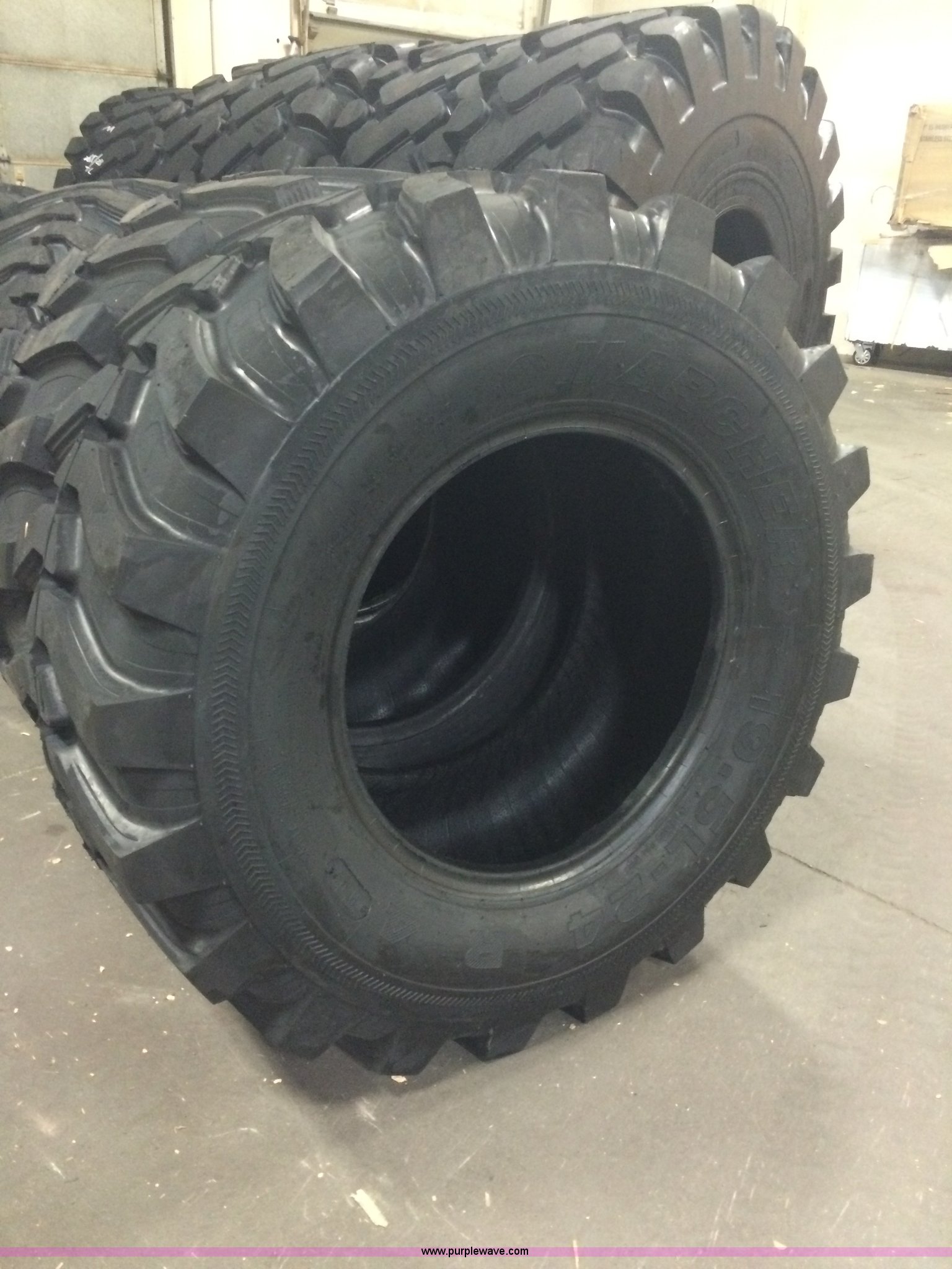 Purple Wave is selling a used Industrial Tires or Tracks in Kansas. This item is a (4) Marcher backhoe tires with the following: (2) 19.5L-24 R4 SLR4 tires, 12 ply, Tubeless, (2) 12.5x80-18 tires, 12 ply, Purchaser may swap out the 12.5x80-18 tires for 12x16.5 tires, Unused