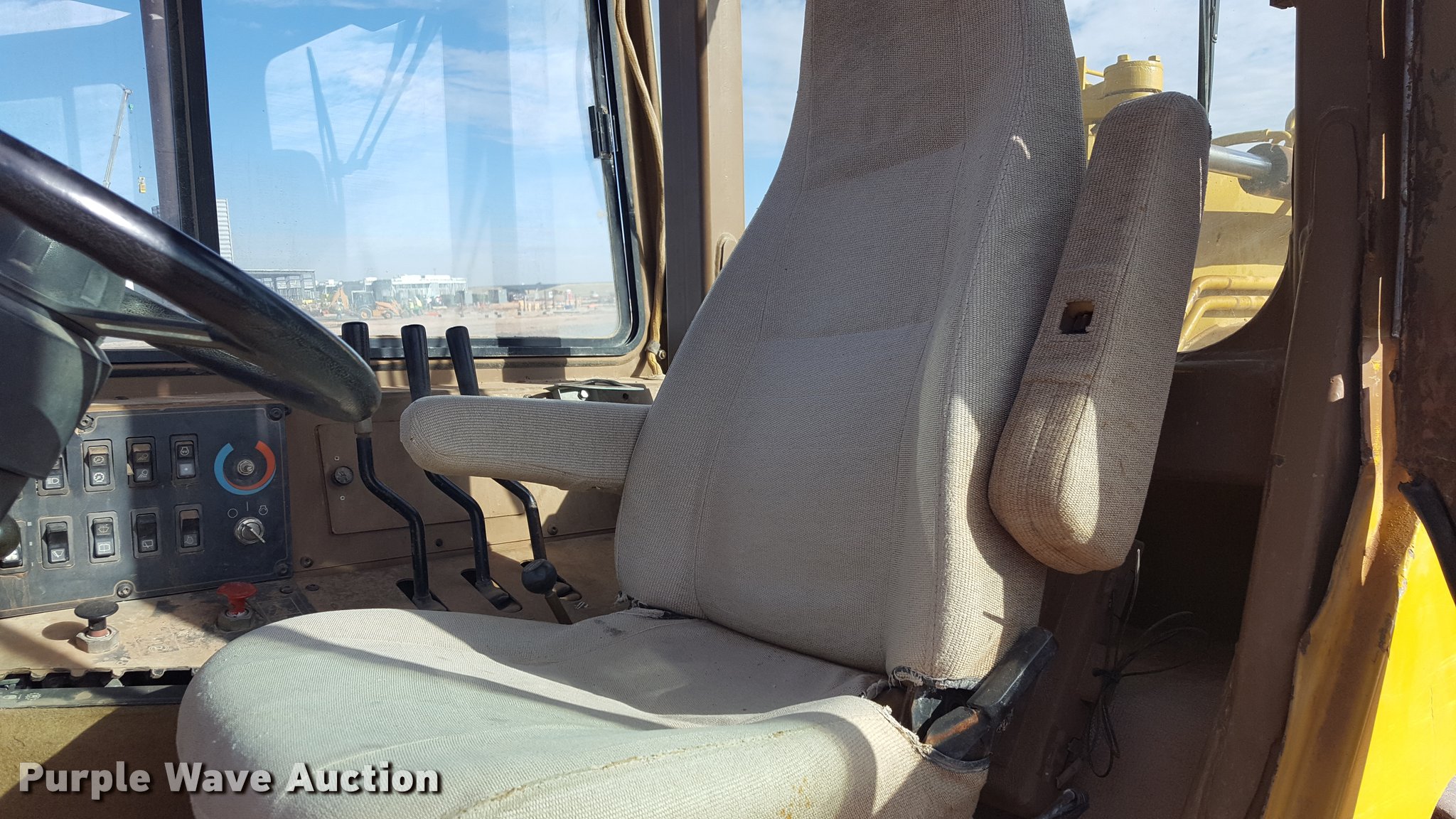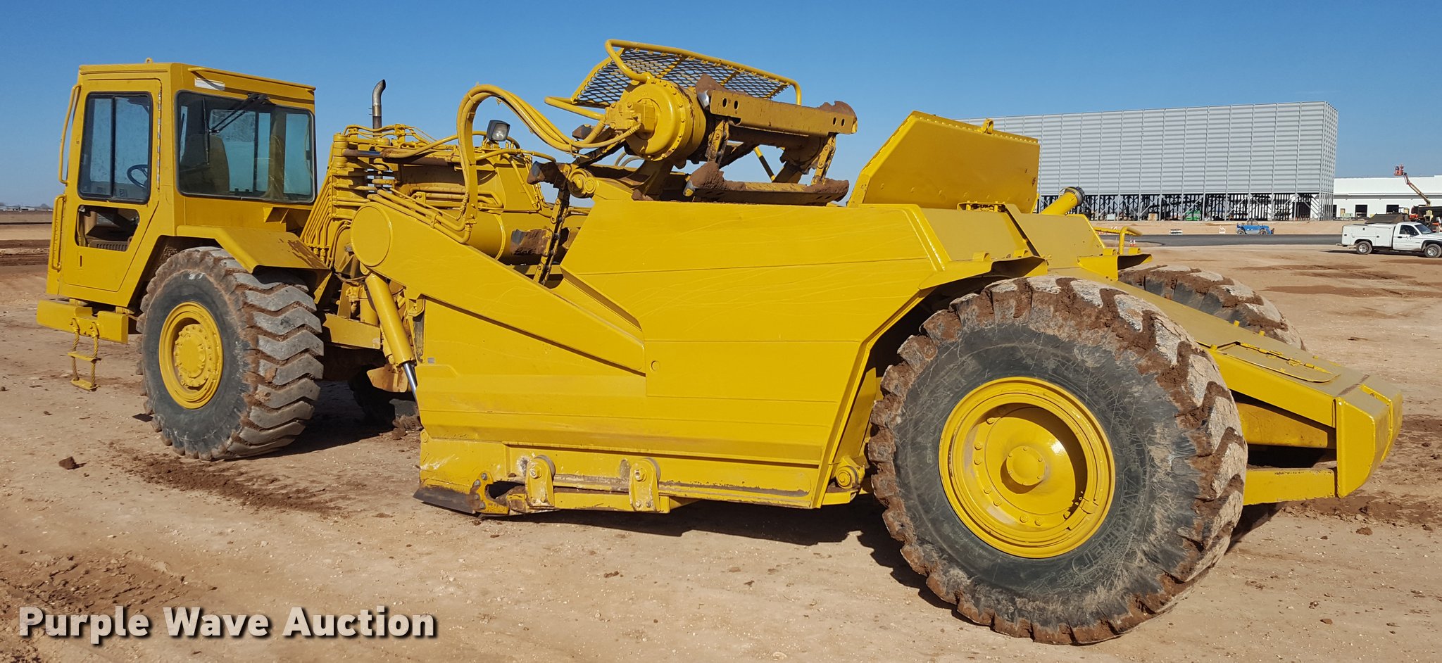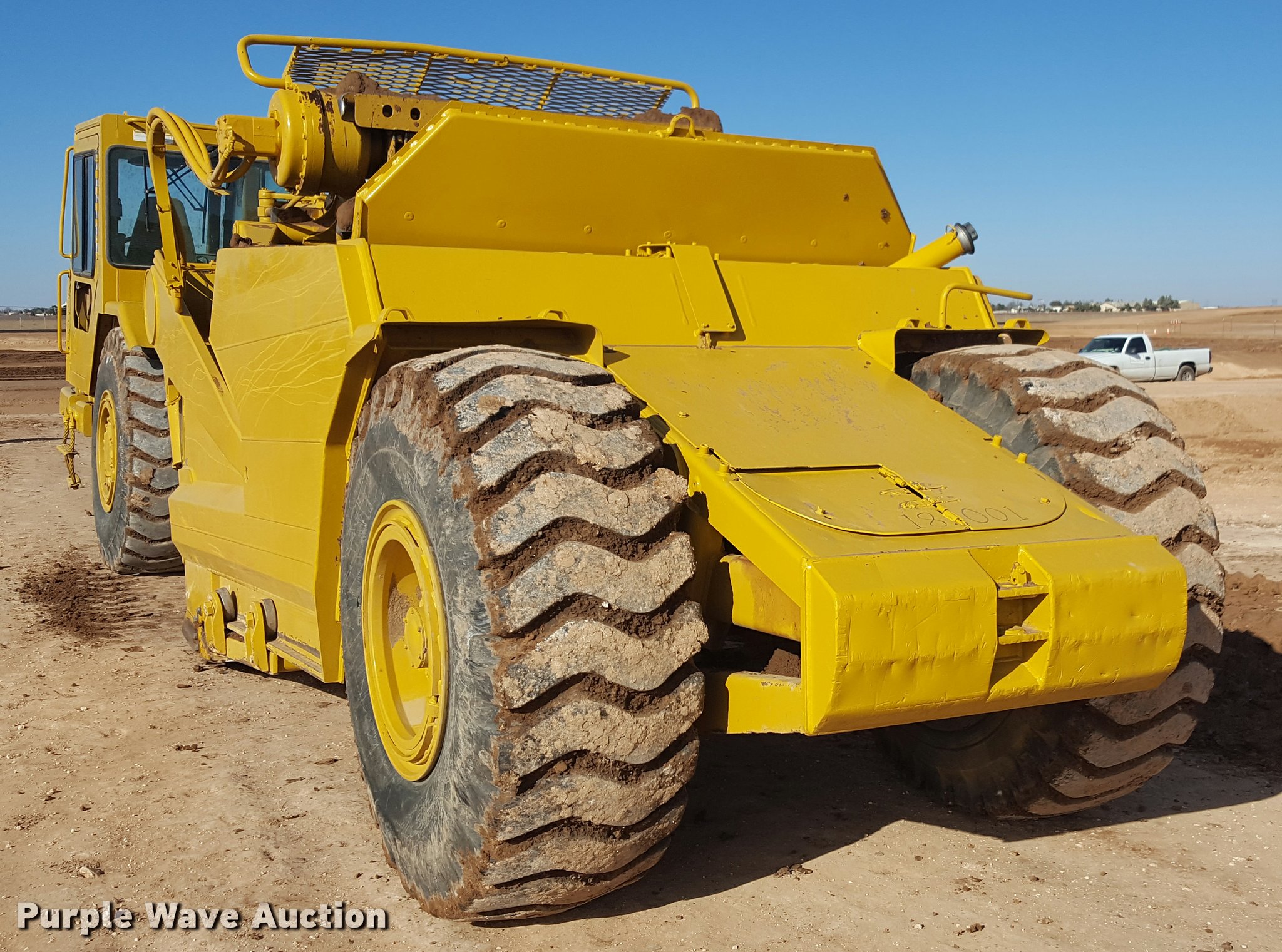 Purple Wave is selling a used Elevating Scraper in Texas. This item is a 2001 Caterpillar 613C Series II elevating scraper with the following: 6,105 hours on meter, Hours meter replaced at 2,521 hours, 8,626 total hours, Caterpillar 3126 six cylinder diesel engine, 175 HP, Serial 98235762, Manual transmission, 6F-1R gears, Enclosed cab, Heat, Three lever scraper controls, 8.9 cu. yd. capacity, Elevator reverse, Hydraulic lift, 23.5-25 tires, Serial 8LJ02196