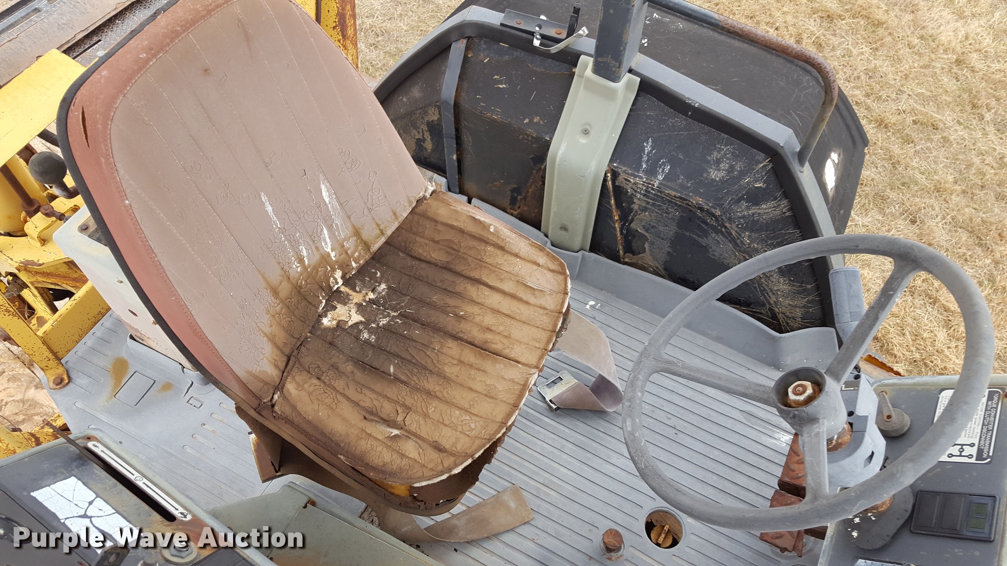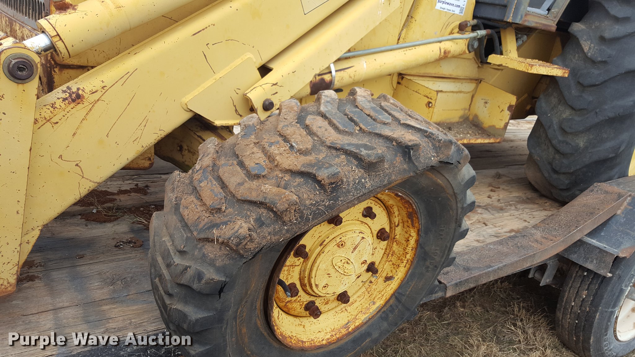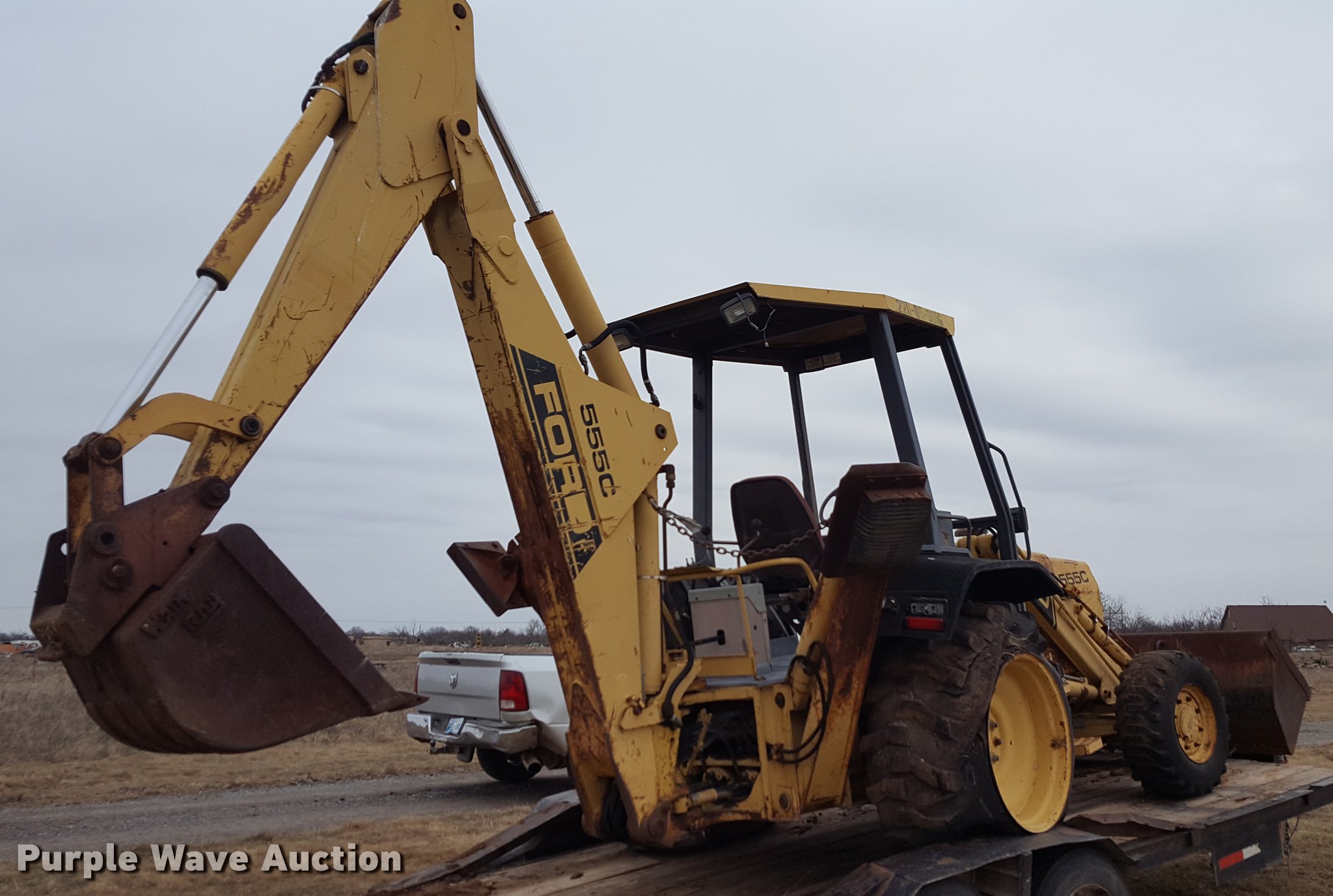 Purple Wave is selling a used Tractor Loader Backhoe in Oklahoma. This item is a Ford 555C backhoe with the following: 3,512 hours on meter, Four cylinder diesel engine, Manual transmission, 6F-4R gears, Wobble stick backhoe controls, Rear work lights, 6'W loader bucket, Weld-on cutting edge, 18"W backhoe bucket, Bolt-on cutting edge, (4) teeth, Auxiliary hydraulics, Engine needs replaced, Parts missing, Trailer not included, Serial A402450
