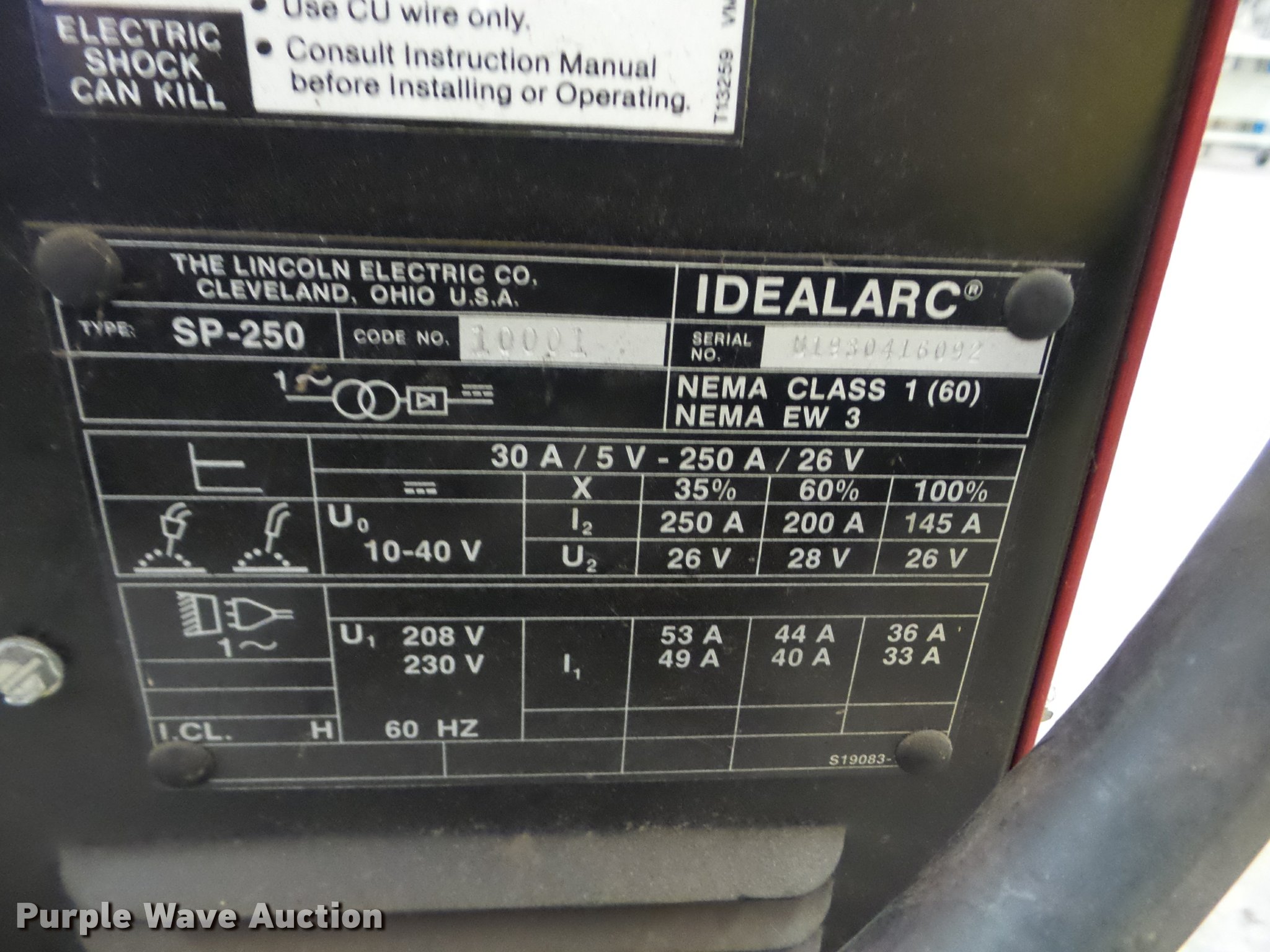 Lincoln Idealarc SP250 mig welder. 220V, Serial U1930416092. USD 387. 20704 US Hwy 75. Buffalo, KS 66717