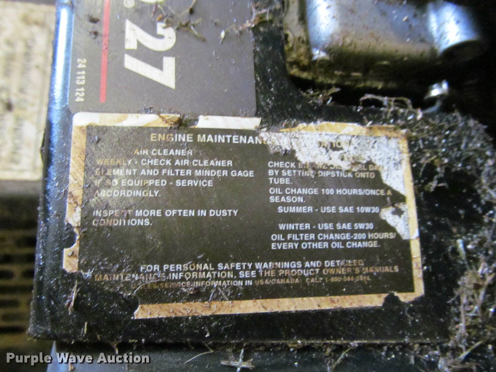 Purple Wave is selling a used Lawn Mower in Kansas. This item is a Grasshopper 727K2 ZTR lawn mower with the following: 1,715 hours on meter, 52" cut, Kohler Command Pro CH740S 725cc gas engine, 23 HP, Serial 3502605121, Headlights, Bagging system, 20x10.00-10 front tires, 13x6.5-6 rear tires, Engine leaks oil, Electrical issues, battery does not charge, Serial 5517748