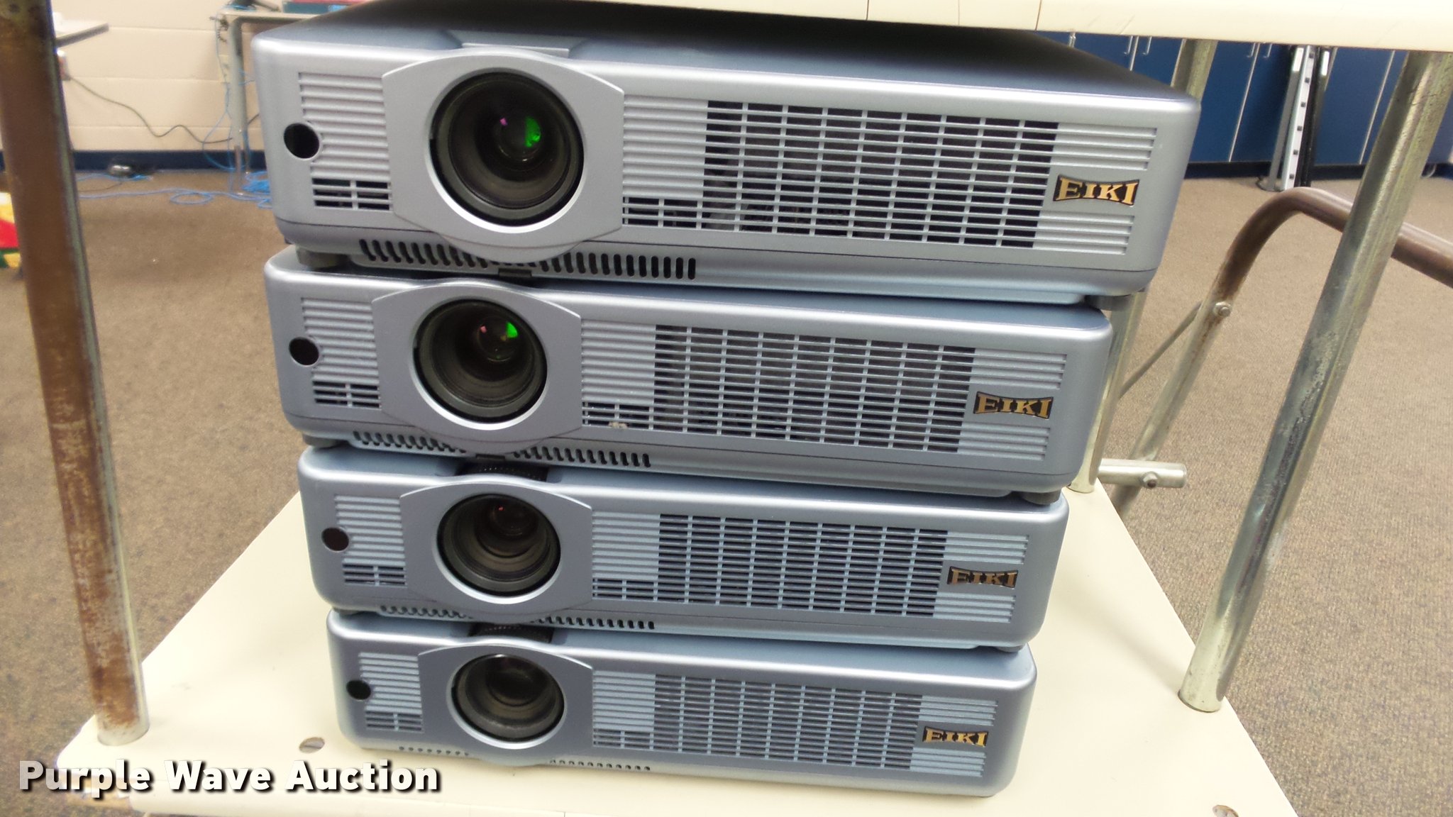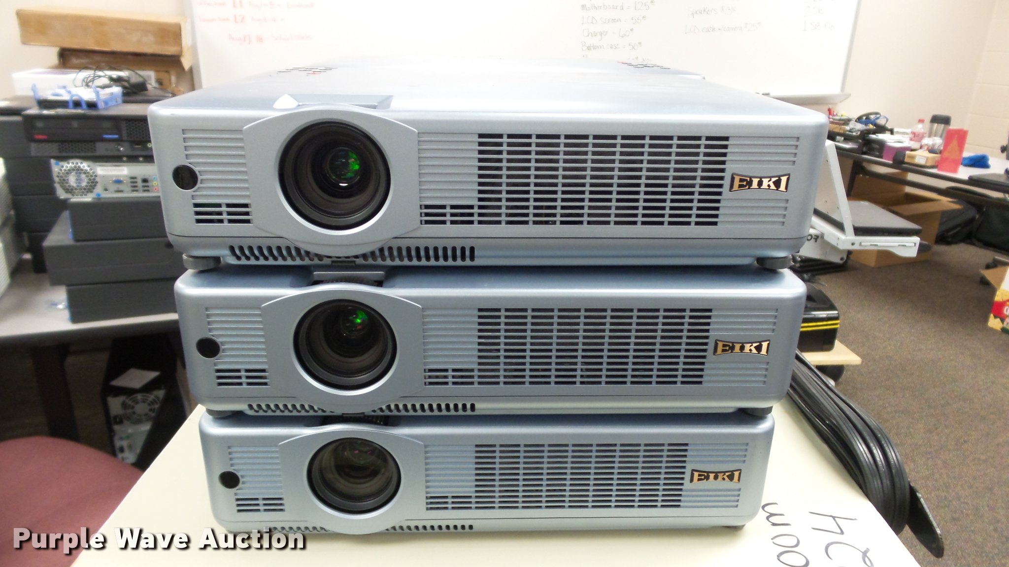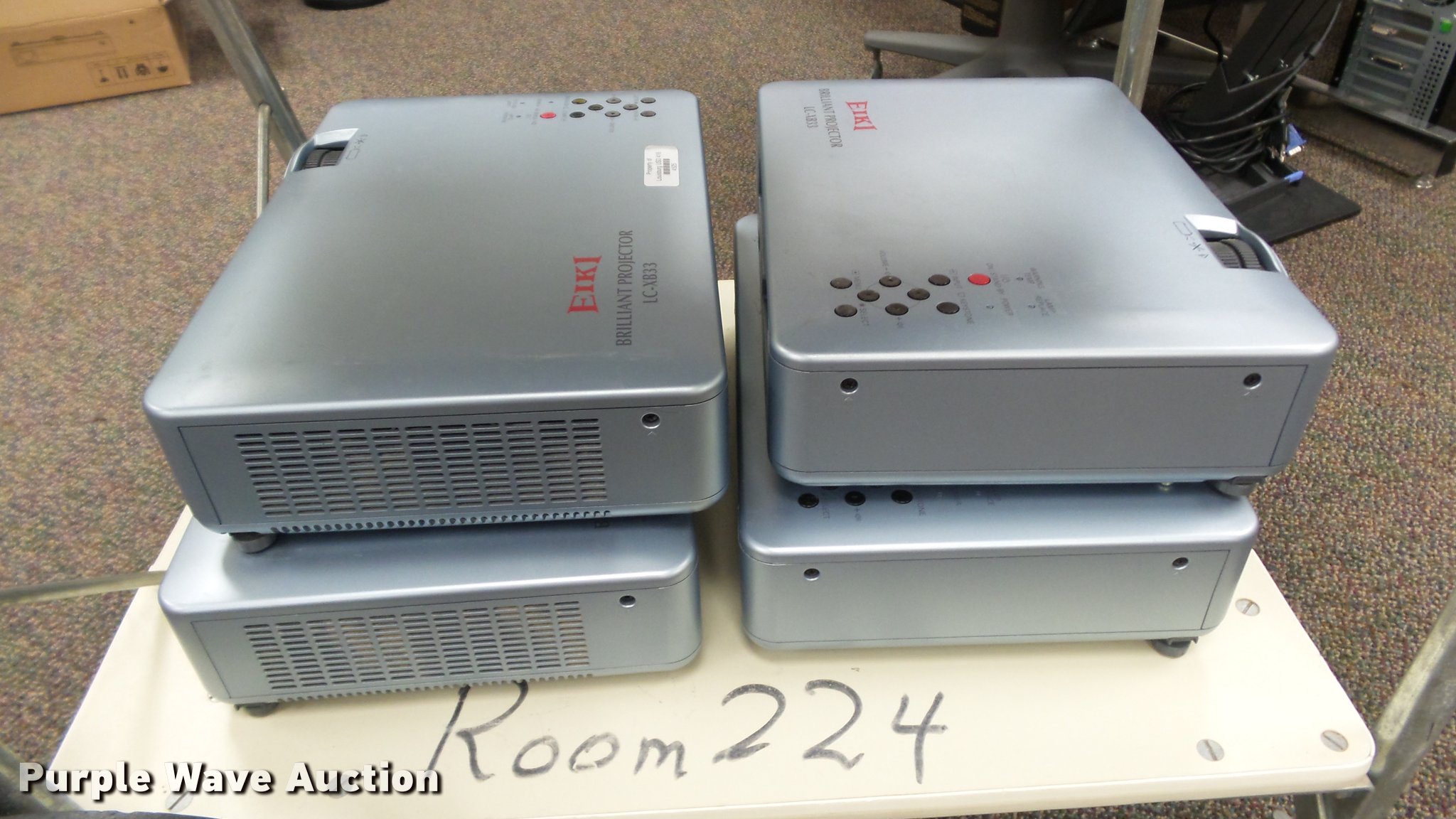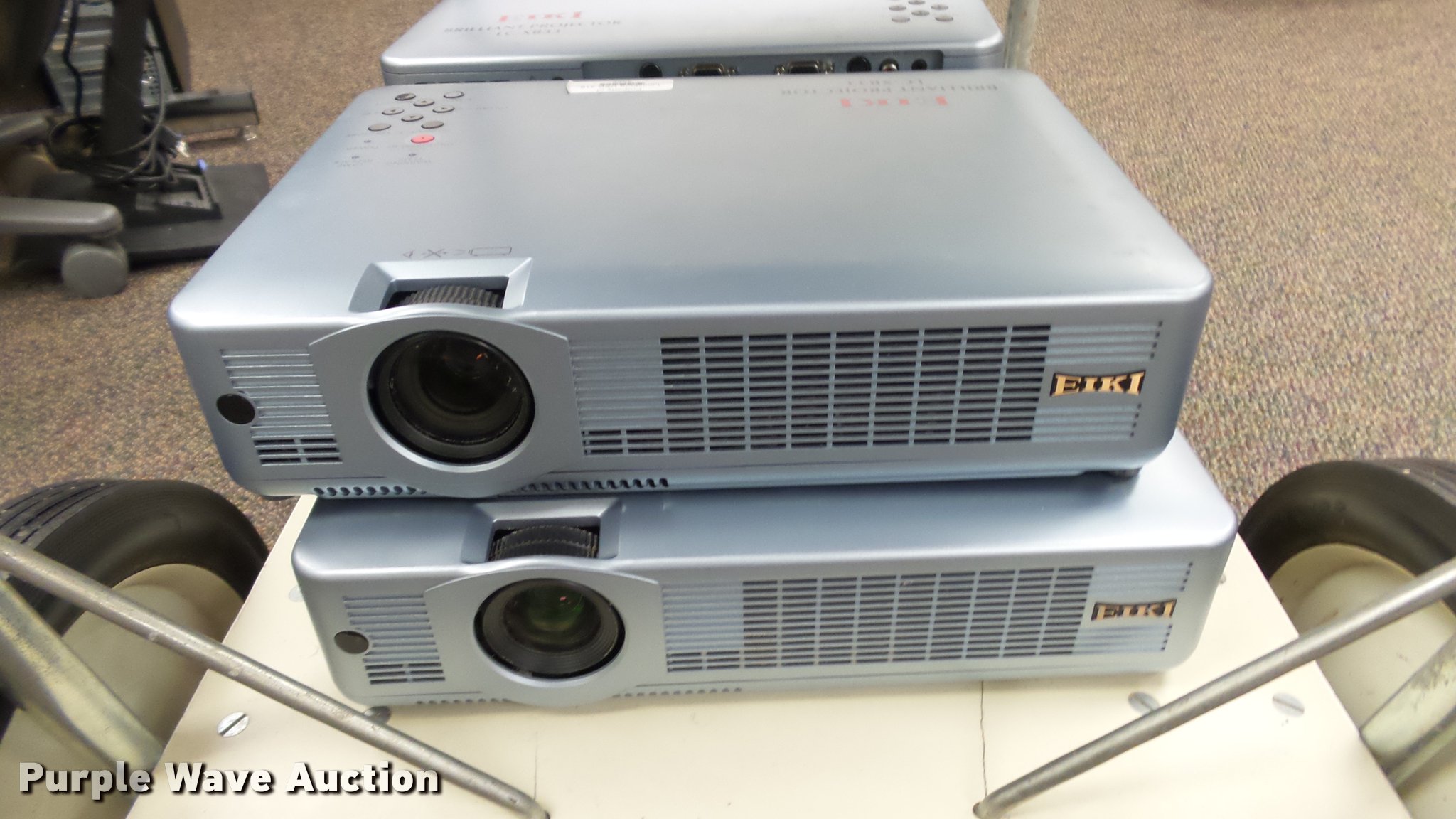 Purple Wave is selling a used Electronics in Kansas. This item is a (24) Eiki projectors with the following: (6) model LC-XB28, (18) model LC-XB33, Remotes, Power cords, VGA cables, Carts not included