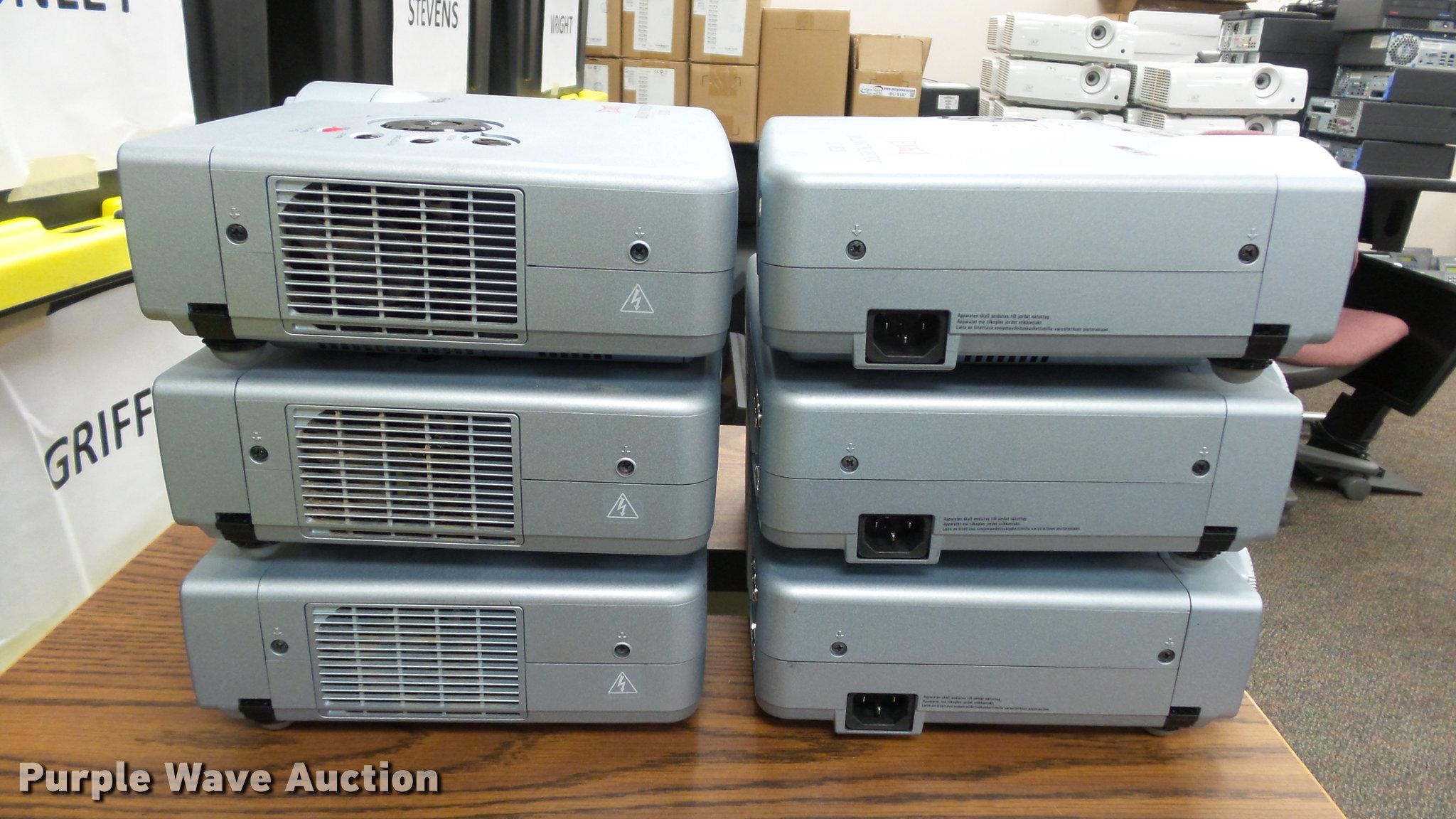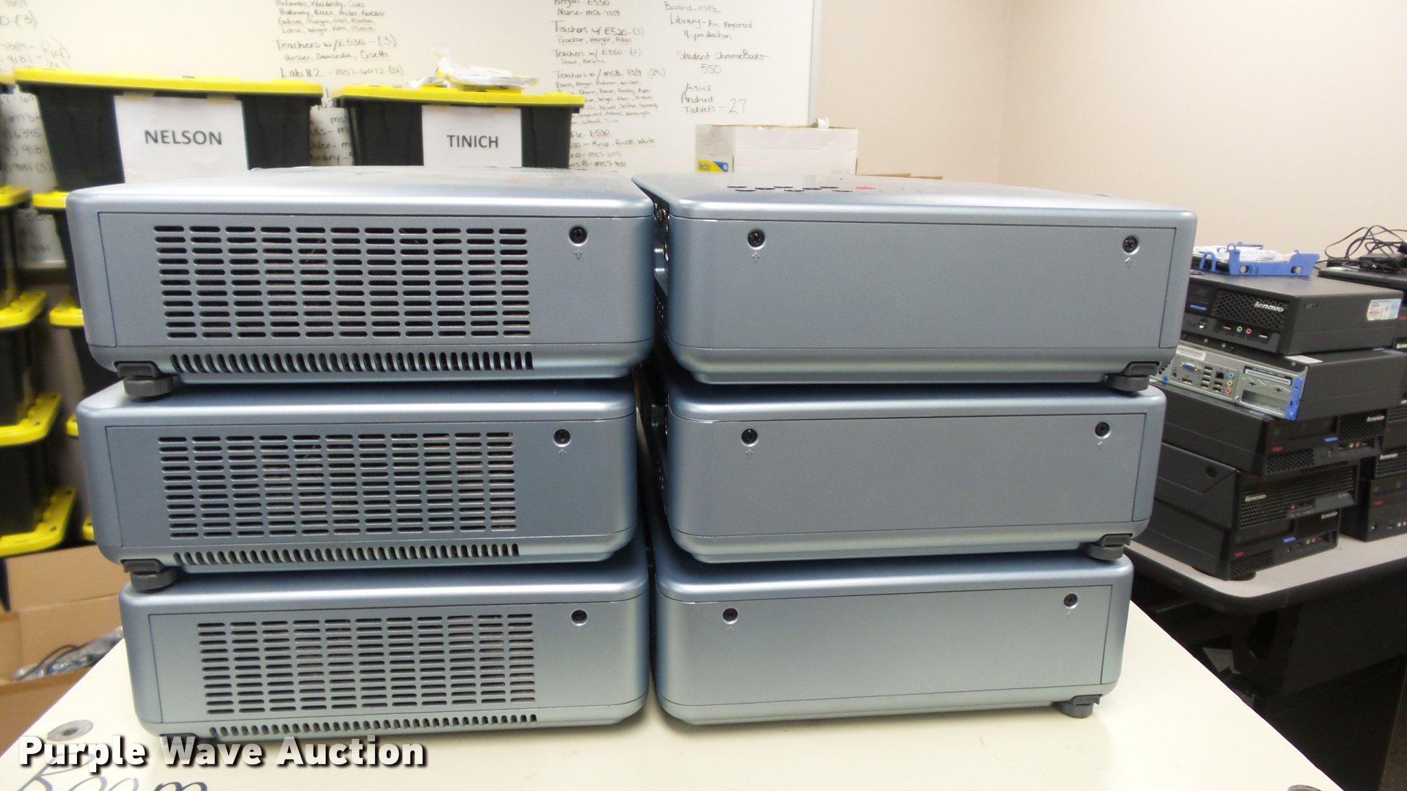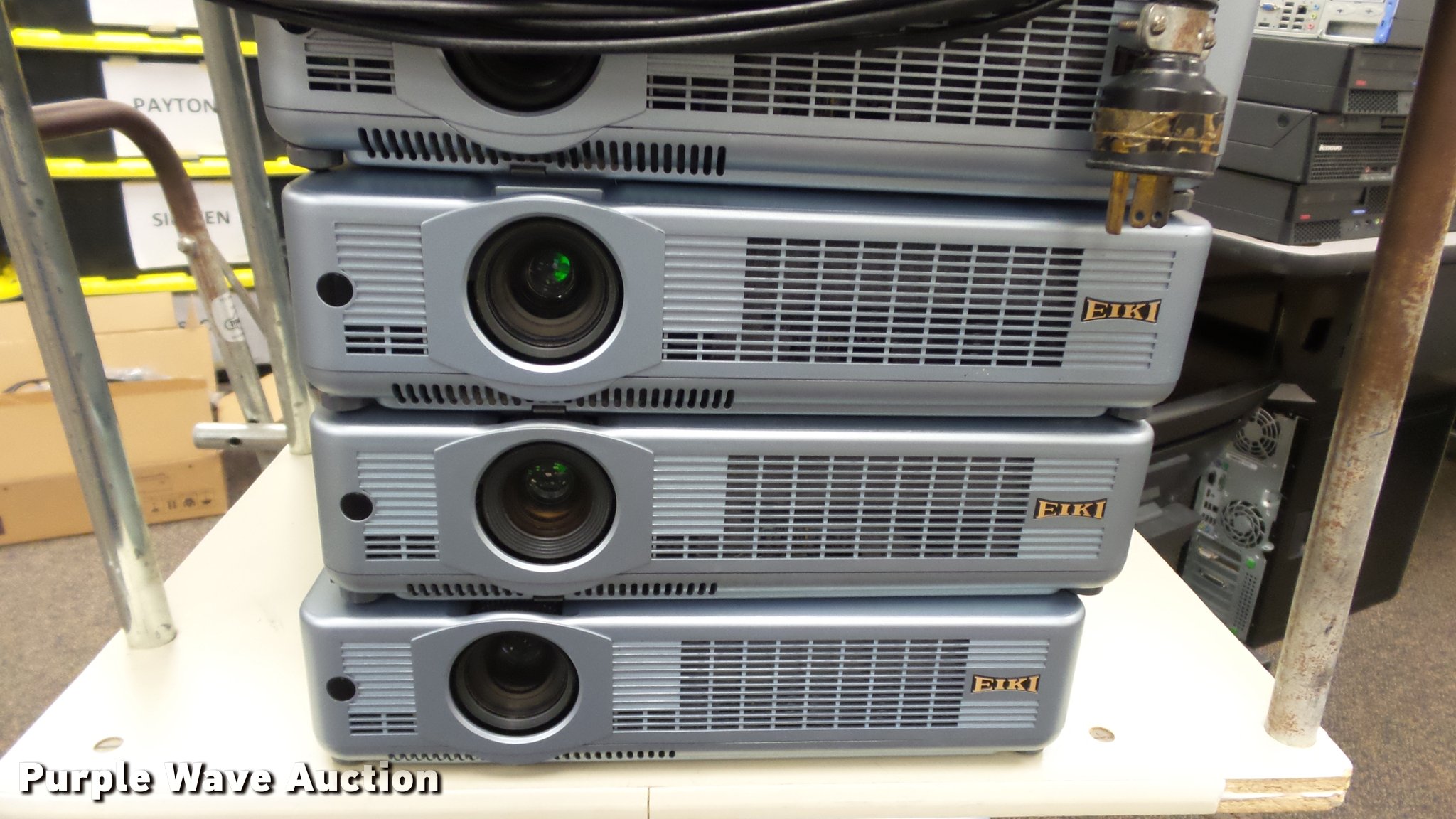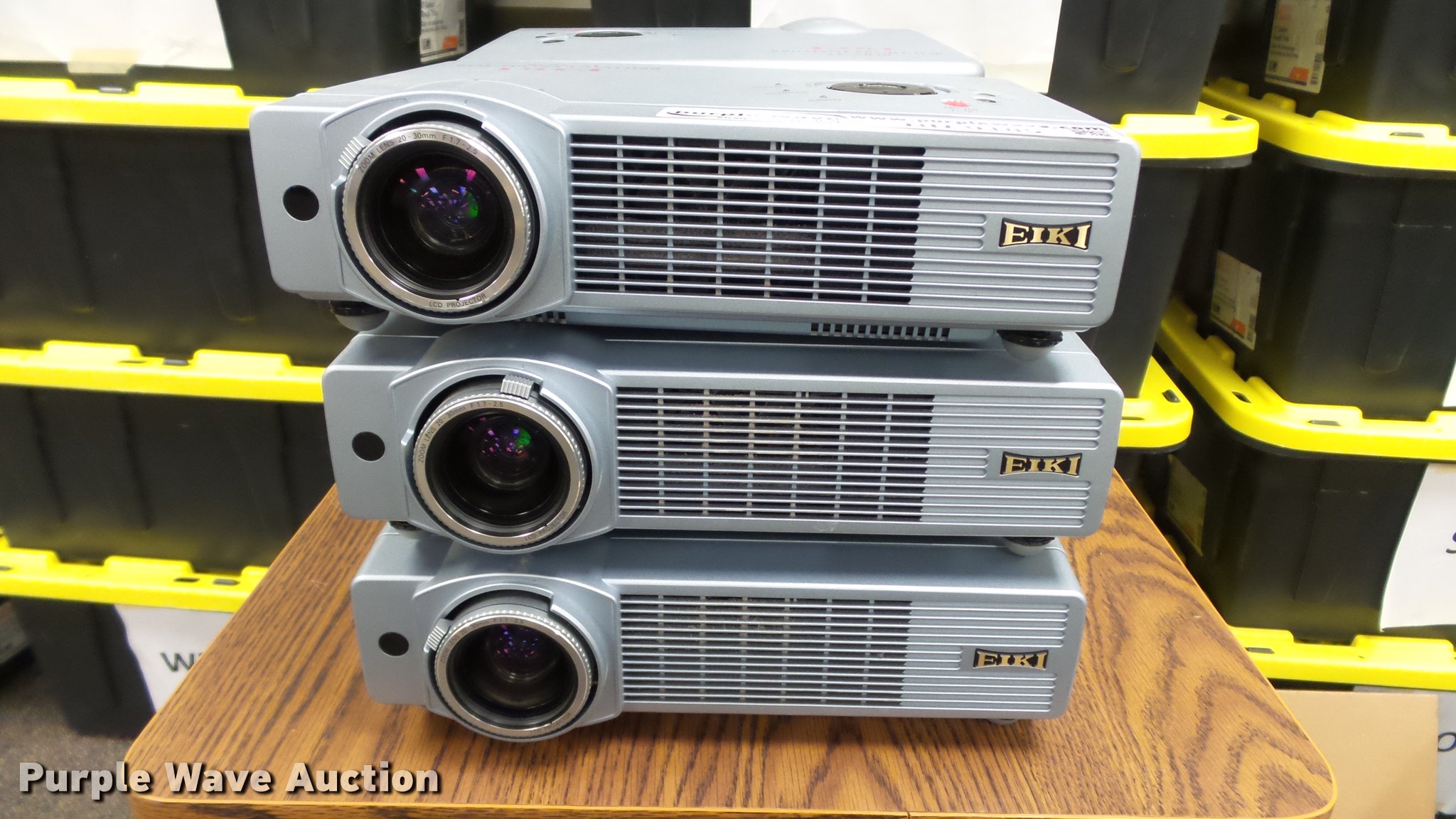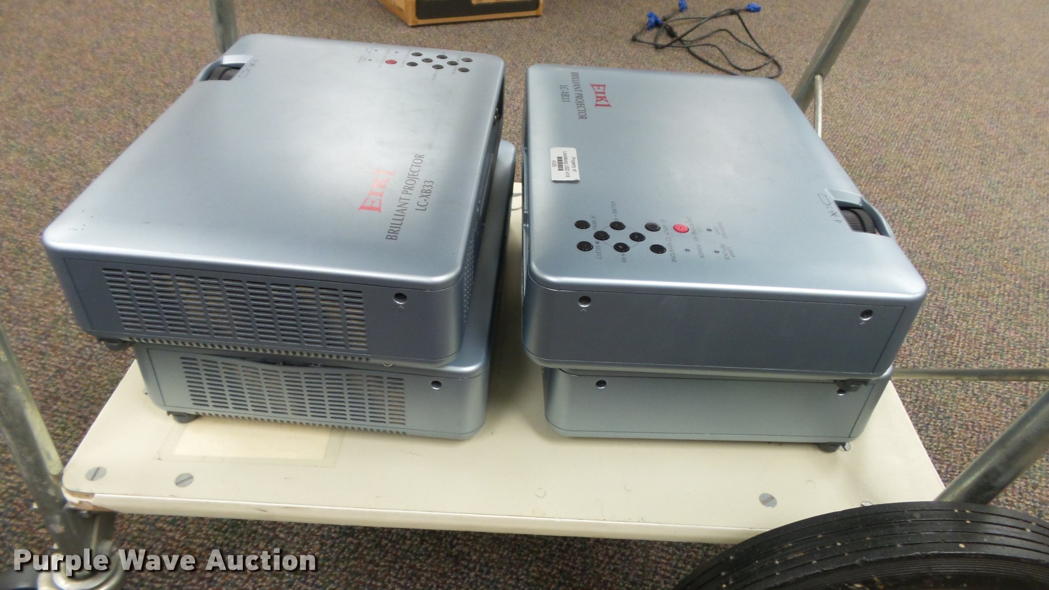 Purple Wave is selling a used Electronics in Kansas. This item is a (24) Eiki projectors with the following: (6) model LC-XB28, (18) model LC-XB33, Remotes, Power cords, VGA cables, Carts not included