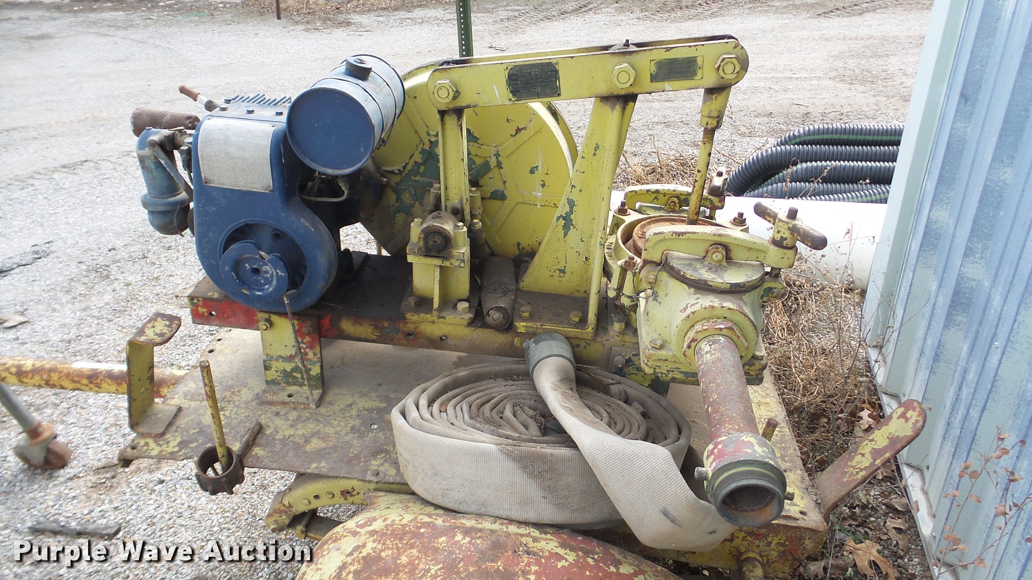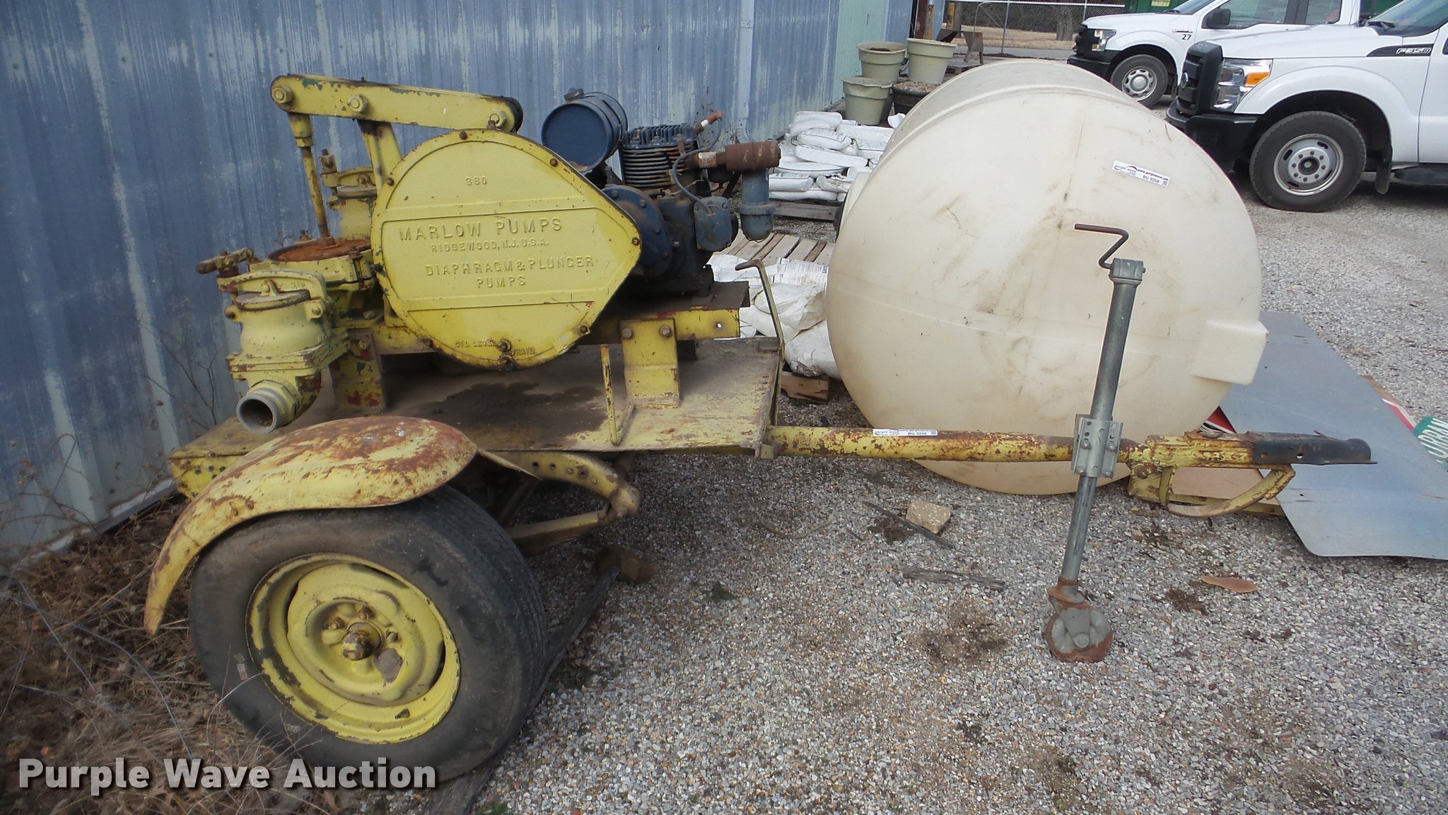 Purple Wave is selling a used Pump in Kansas. This item is a Marlow pump with the following: Gas engine, Hose, Diaphragm and plunger type pump, Ball hitch