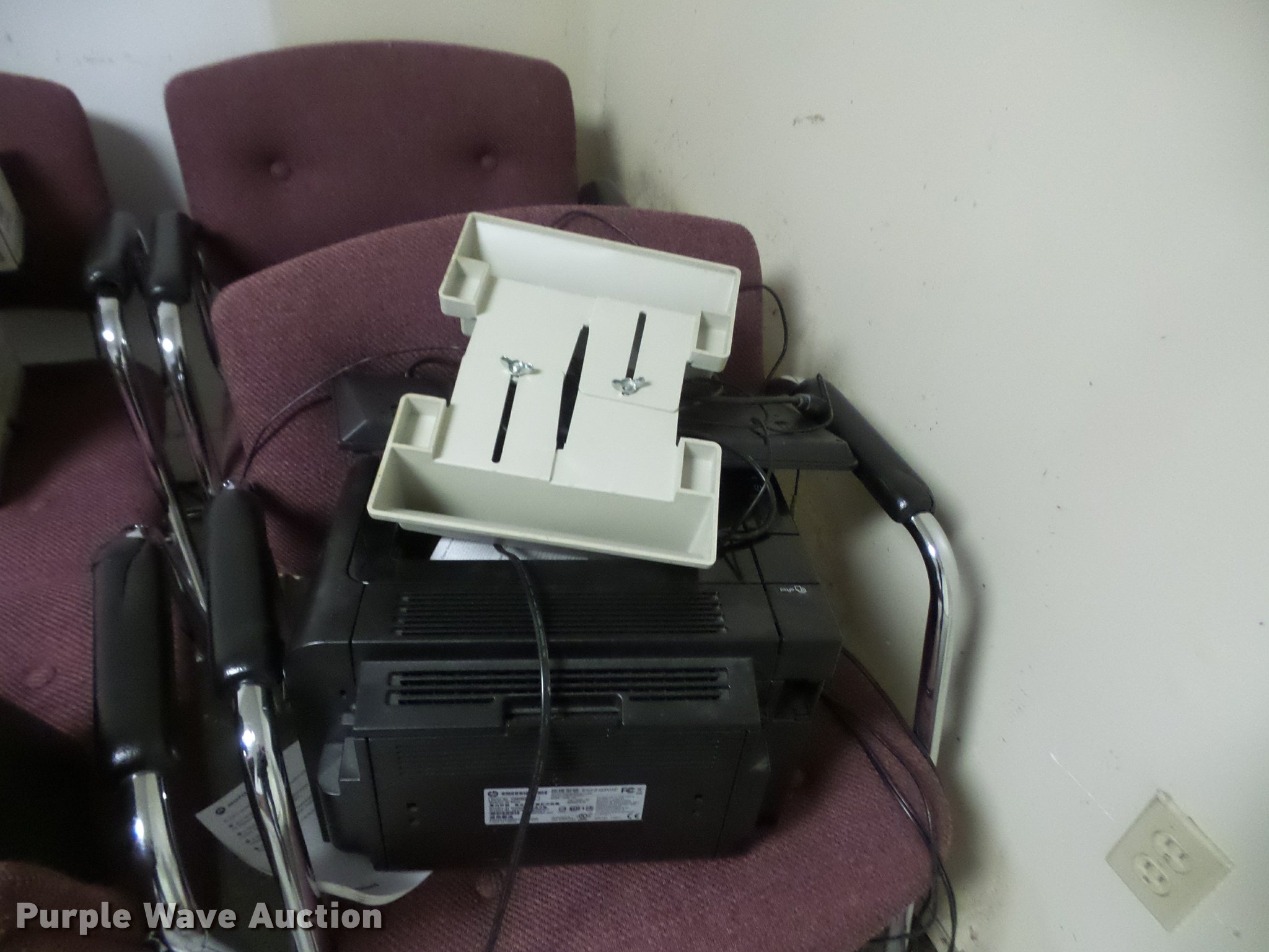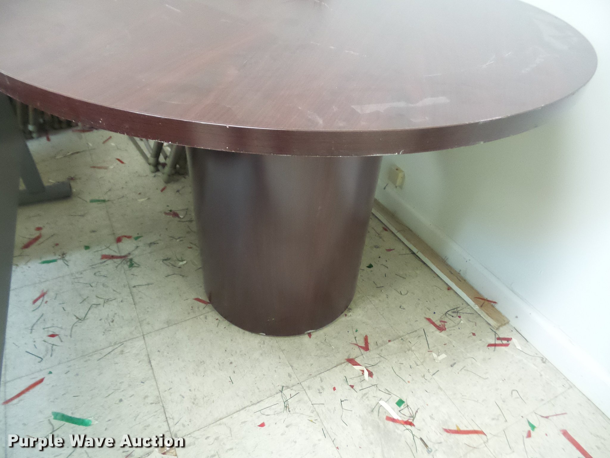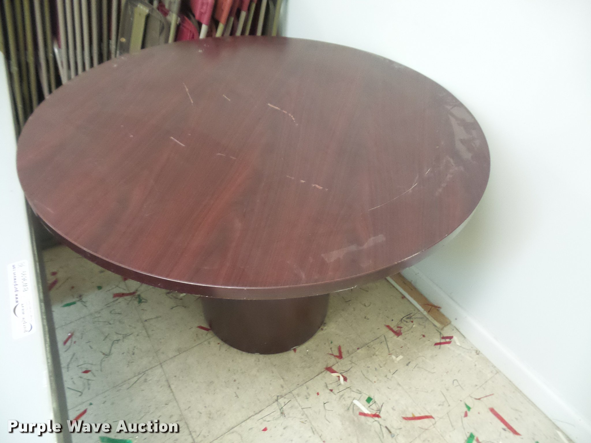 Purple Wave is selling a used Furniture in Kansas. This item is a Furniture with the following: 42" round table, 60" x 30" desk, (9) assorted chairs, 72"L x 18"D cabinets, Television, Printer, Paper shredder, 60" x 30" desk, Legs have been removed