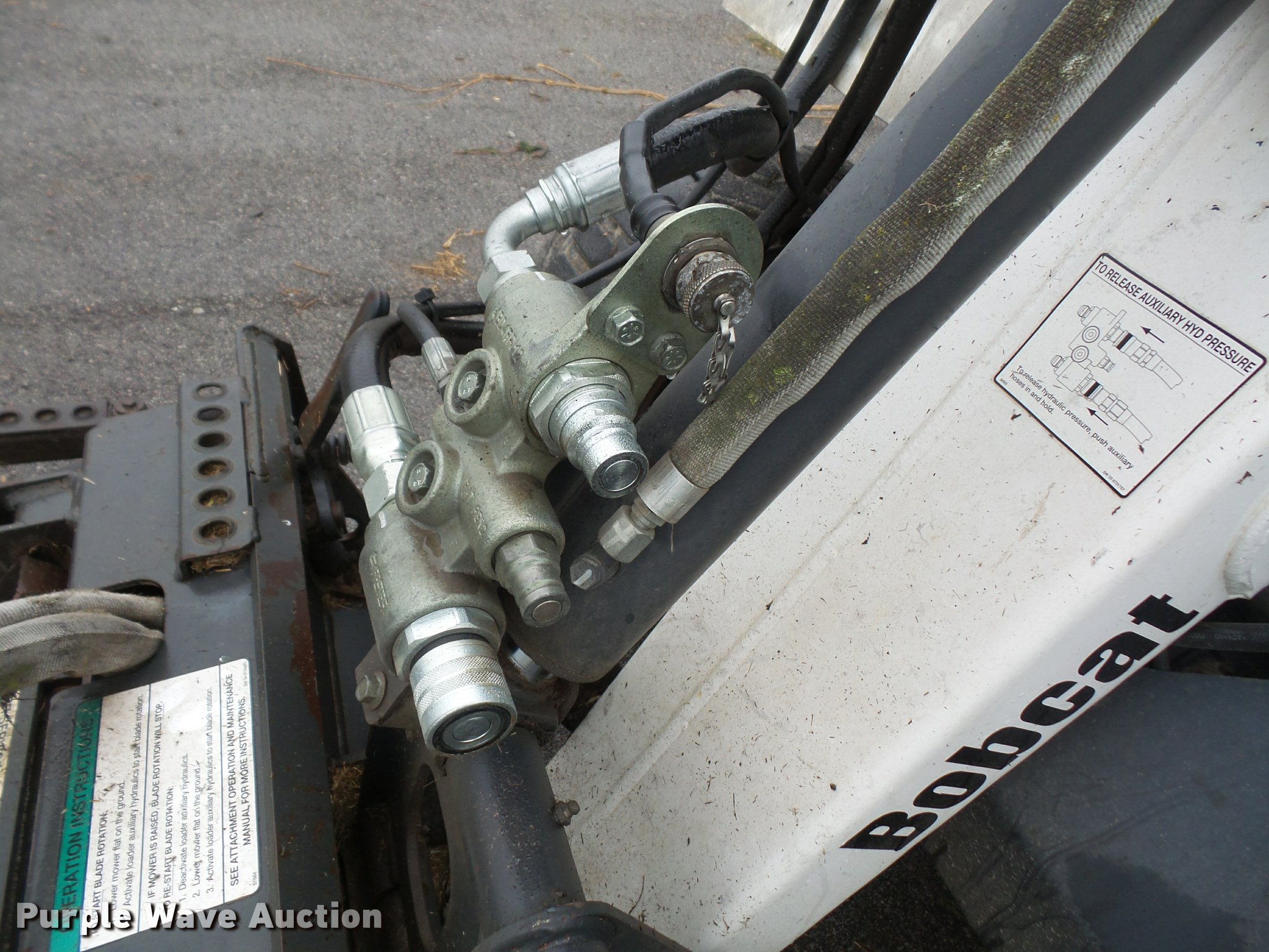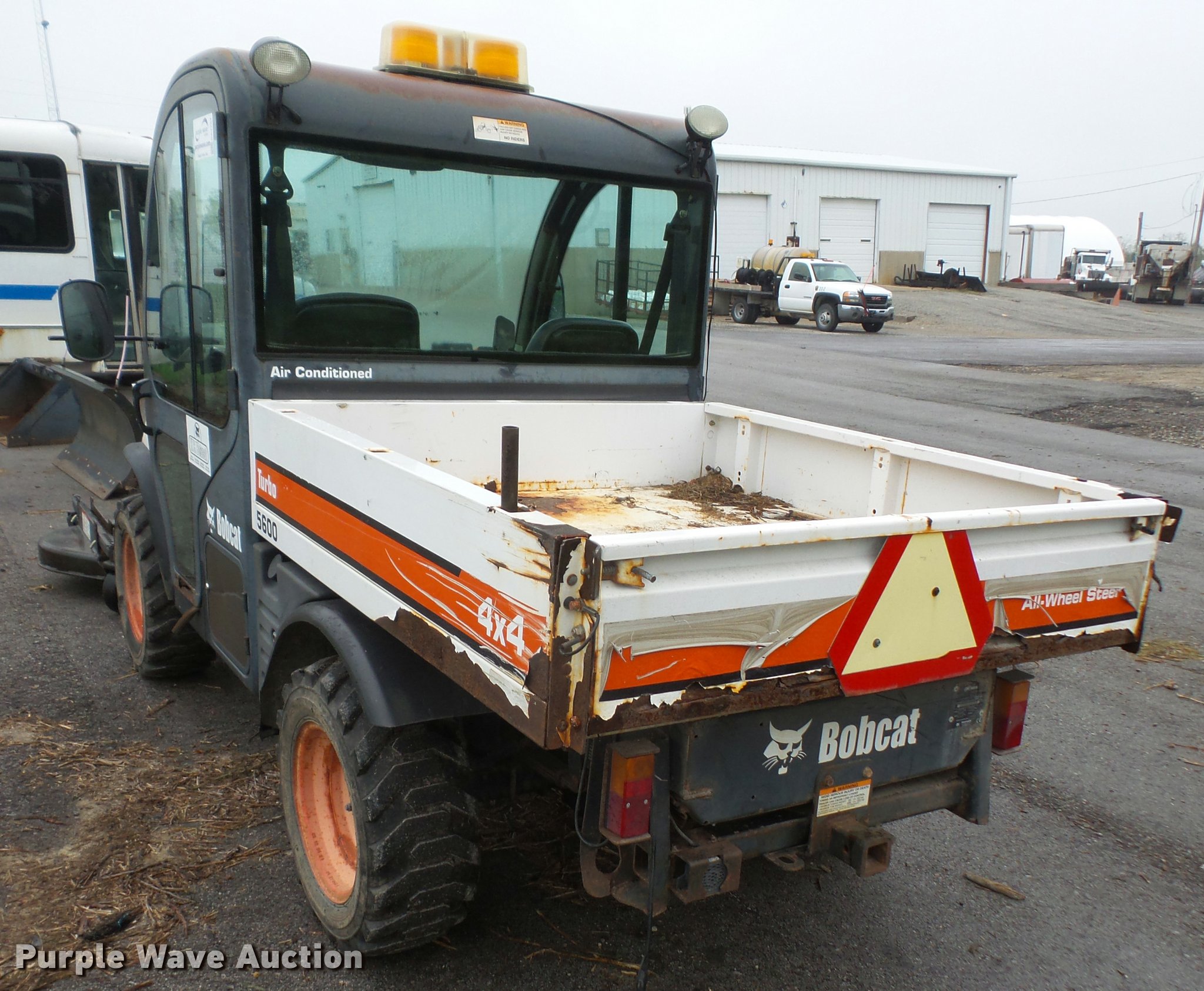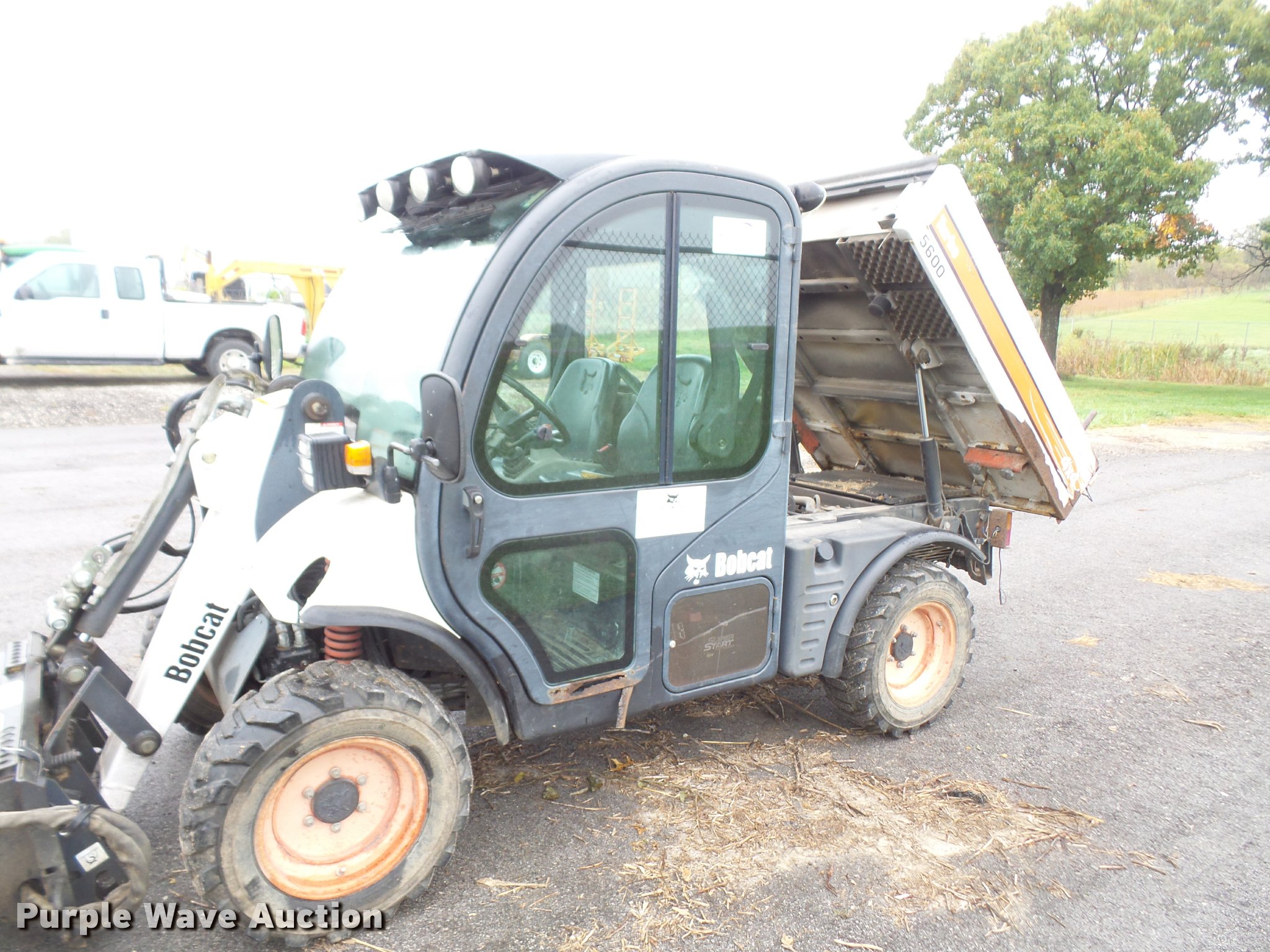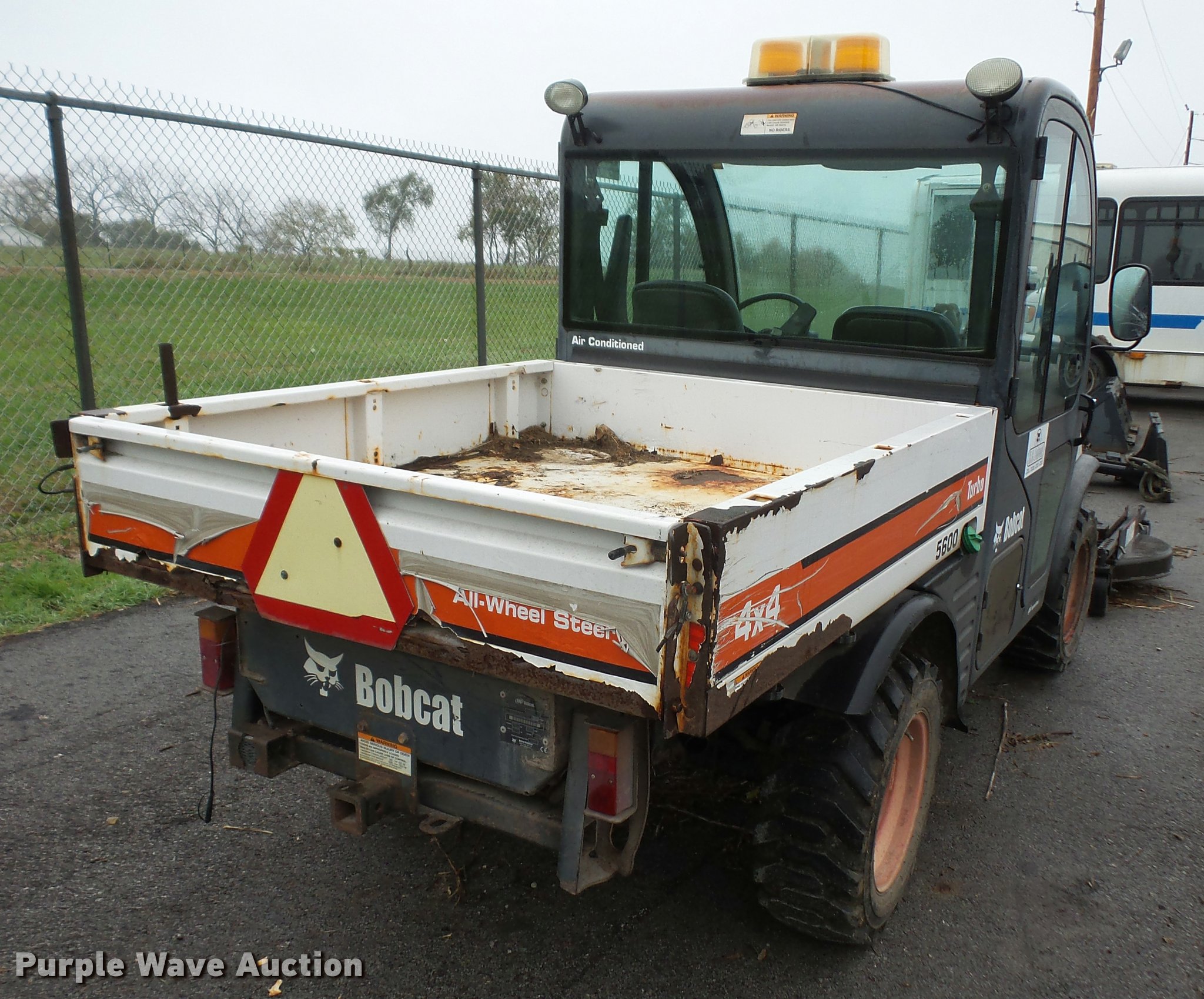 Purple Wave is selling a used Utility Vehicle in Kansas. This item is a 2005 Bobcat Toolcat 5600 utility work machine with the following: 1,667 hours on meter, Kubota 2.0L four cylinder turbo diesel engine, 59 HP, Hydrostatic transmission, Four wheel drive, Four wheel steering, Enclosed cab, AC and heat, Work lights, 64"L x 57"W hydraulic dump bed, 60"W bucket, 72"W mower attachment, Serial 230400734, Receiver hitch, 27x10.50-15 tires