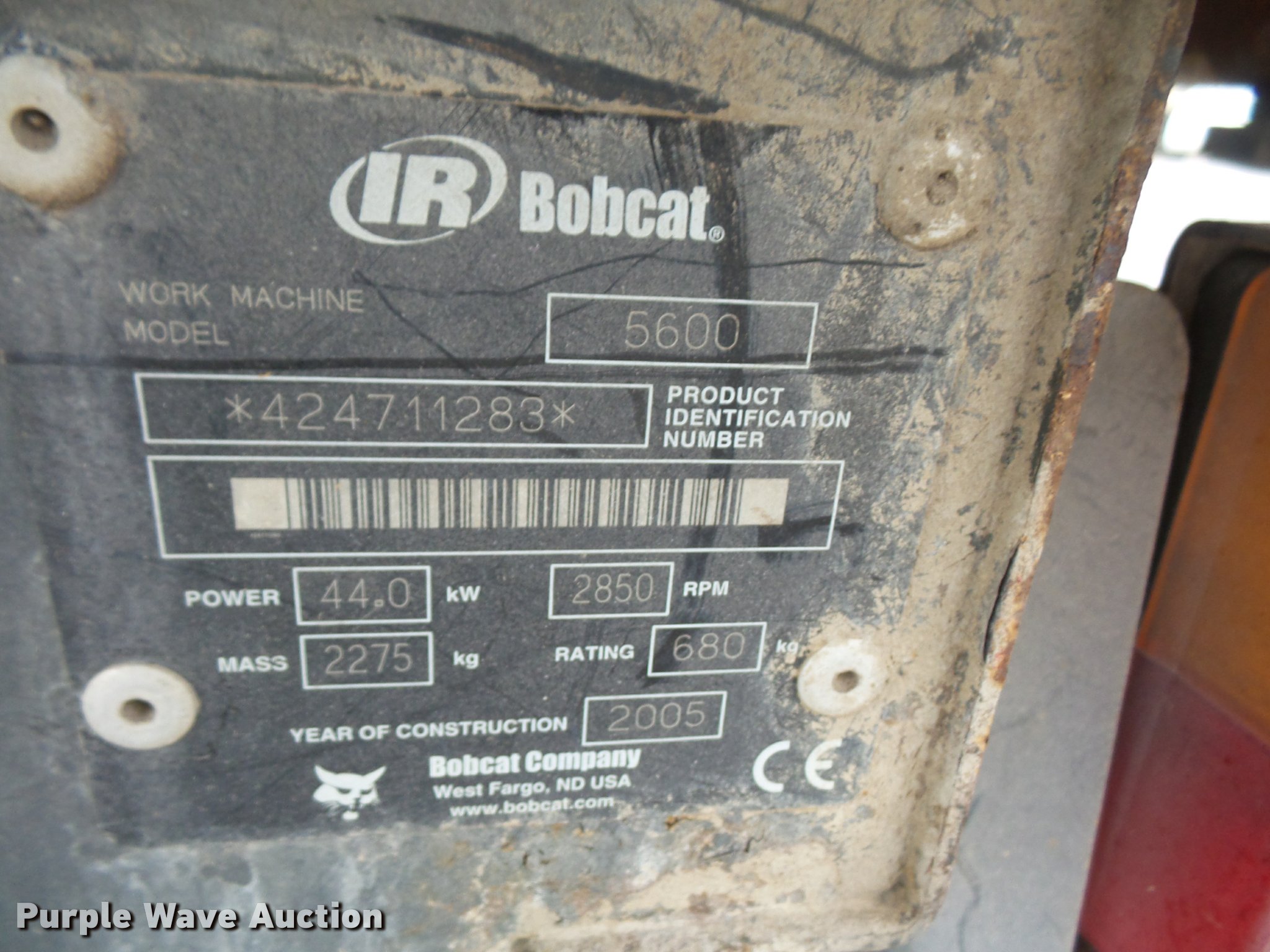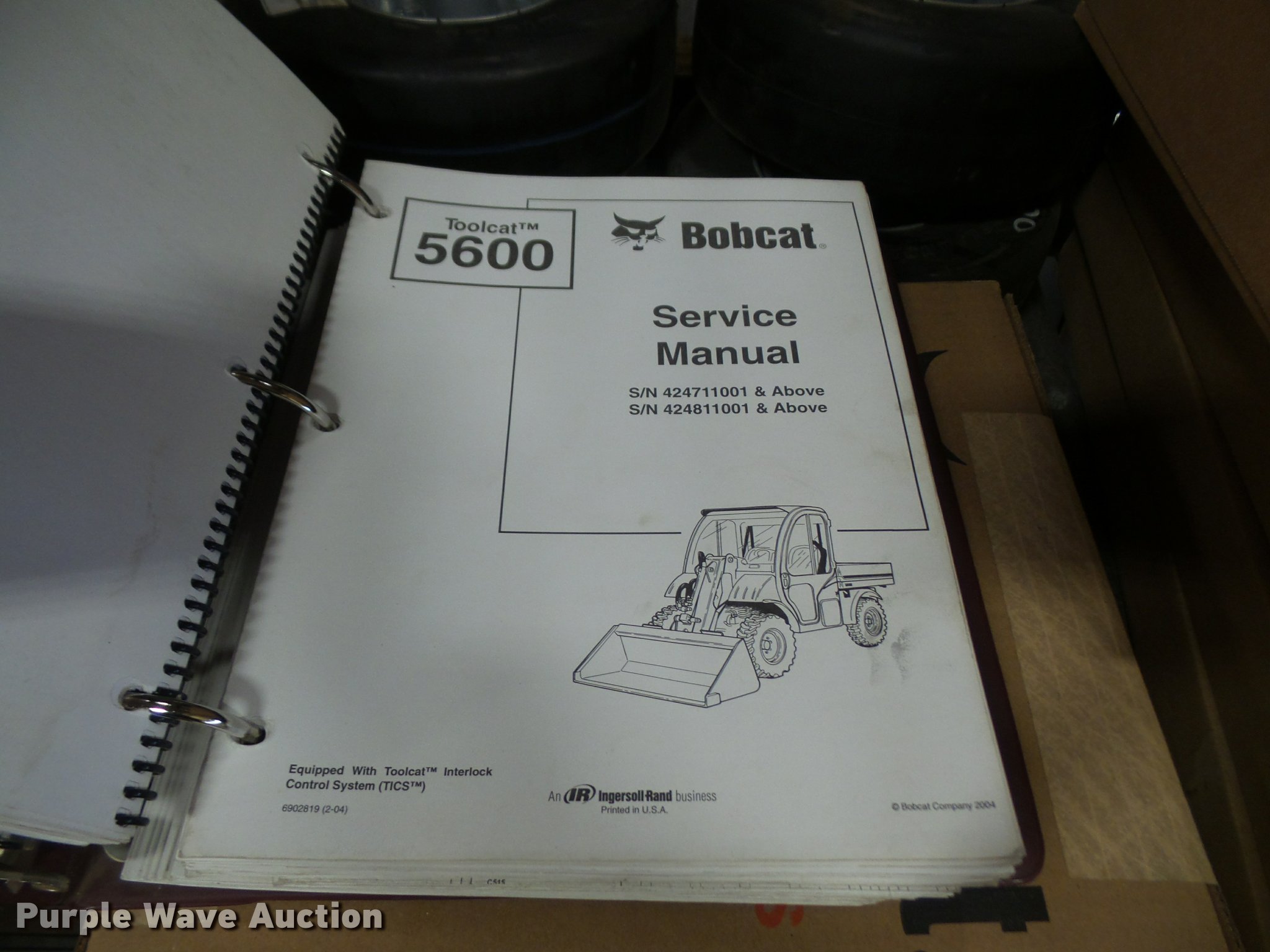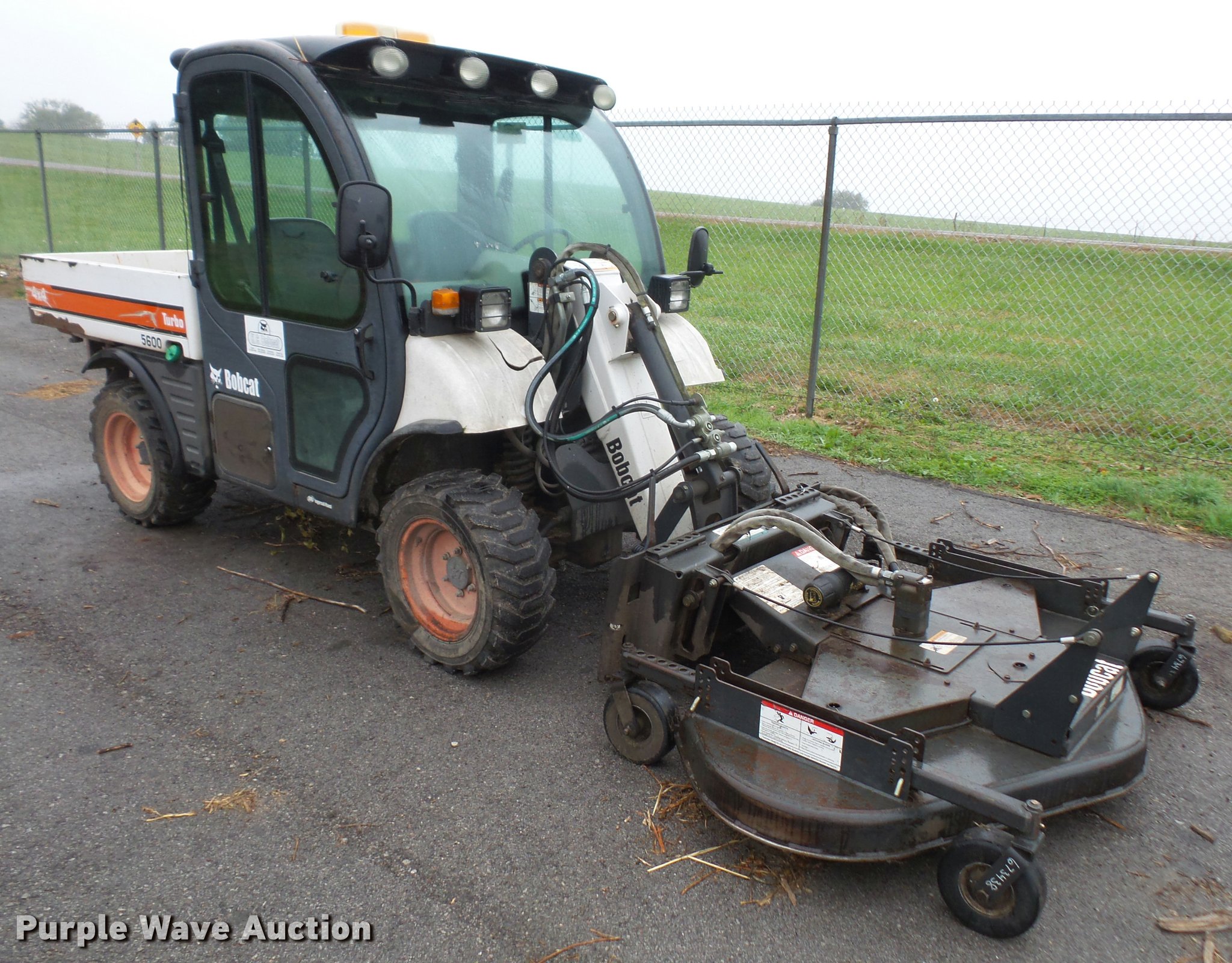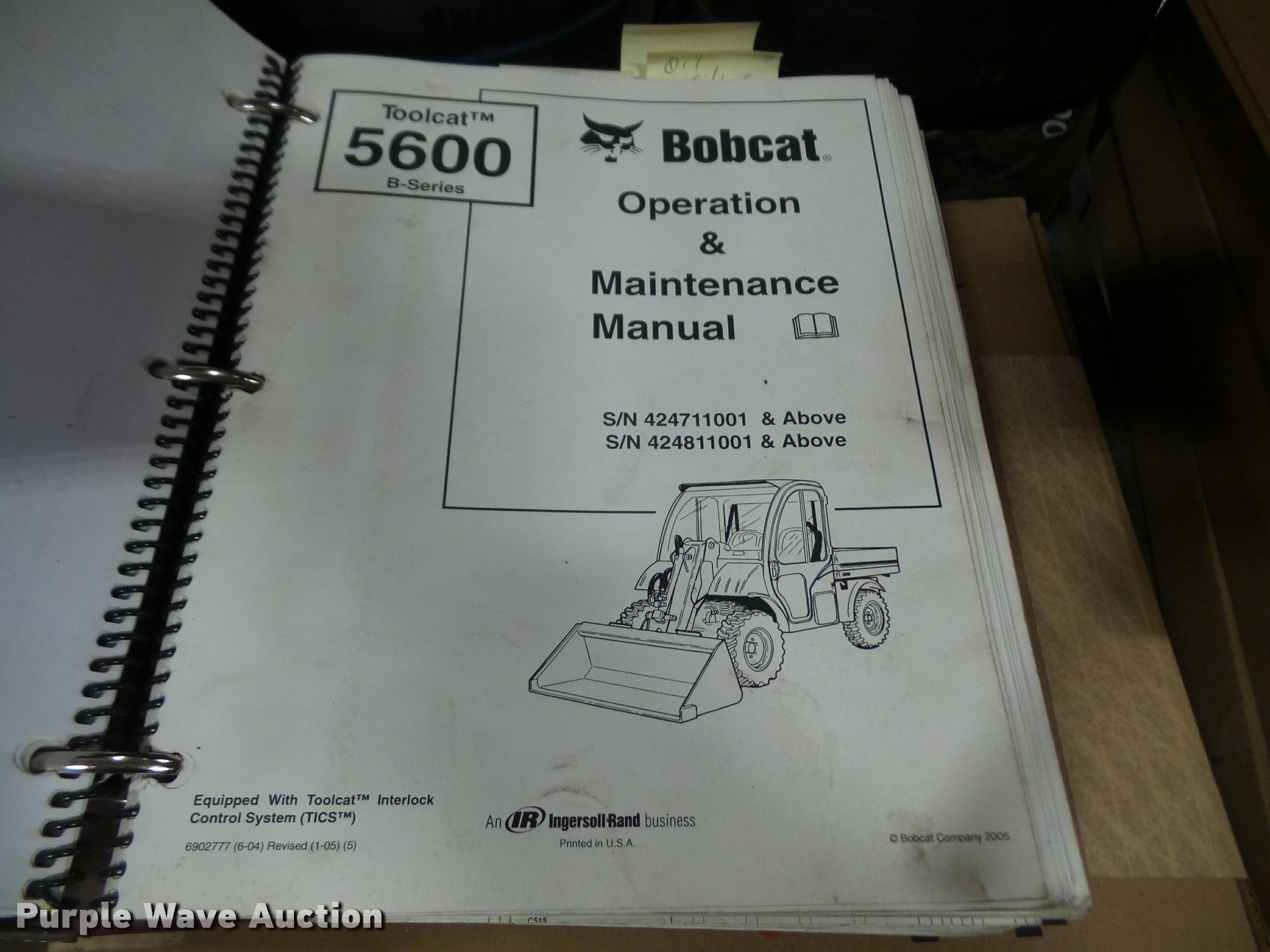 2005 Bobcat Toolcat 5600 utility work machine. 1,667 hours on meter, Kubota 2.0L four cylinder turbo diesel engine 59 HP, Hydrostatic transmission, Four wheel drive, Four wheel steering, Enclosed cab AC and heat, Work lights, 64"L x 57"W hydraulic dump bed, 60"W bucket, 72"W mower attachment Serial 230400734, Receiver hitch, 27x10.50-15 tires. Kansas title. 424711283. Leavenworth County. 23690 187th St. Leavenworth, KS 66048