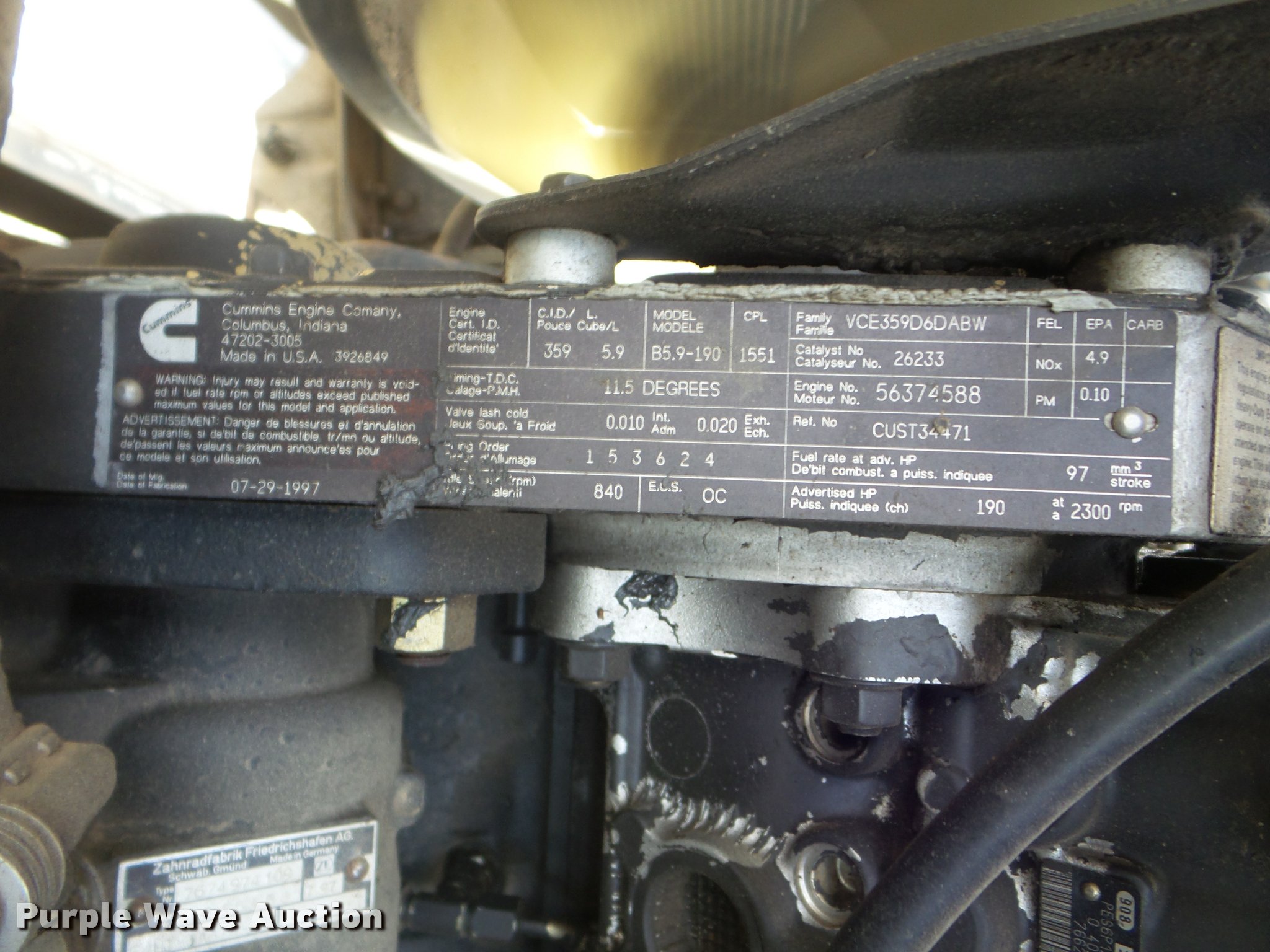 Purple Wave is selling a used Bus in Kansas. This item is a 1998 Ford B800 school bus with the following: 185,924 miles on odometer, Cummins ISB 5.9L L6 turbo diesel engine, Automatic transmission, Single axle, Heat, AM/FM/cassette, Heated mirrors, Suspension seat, Ceiling and rear emergency egress, Lighted stop sign, Block heater, Front tow hooks, Spring suspension, Hydraulic brakes, 255" wheelbase, 10R22.5 tires, GVWR 26,500 lbs, Unit# 39