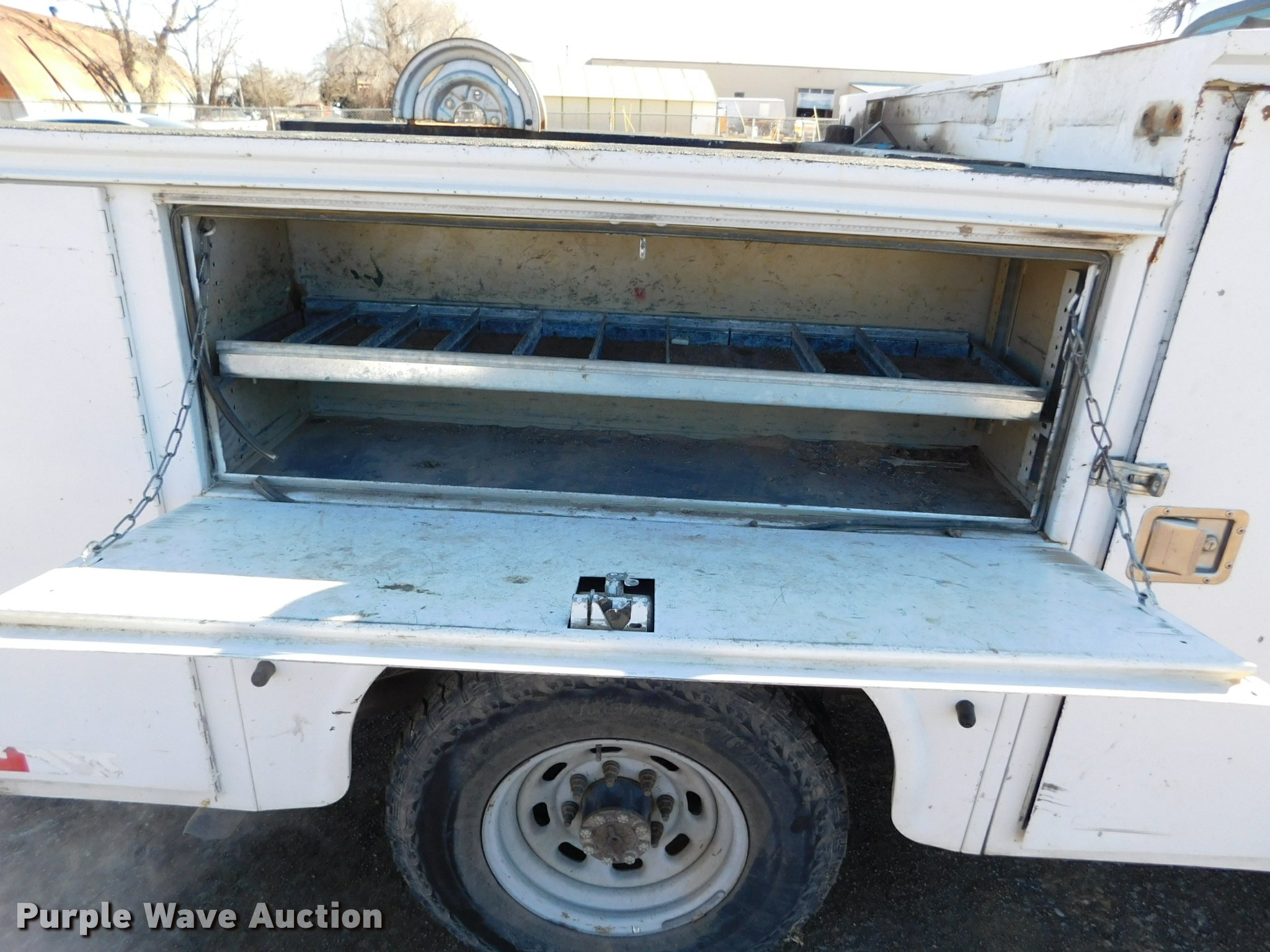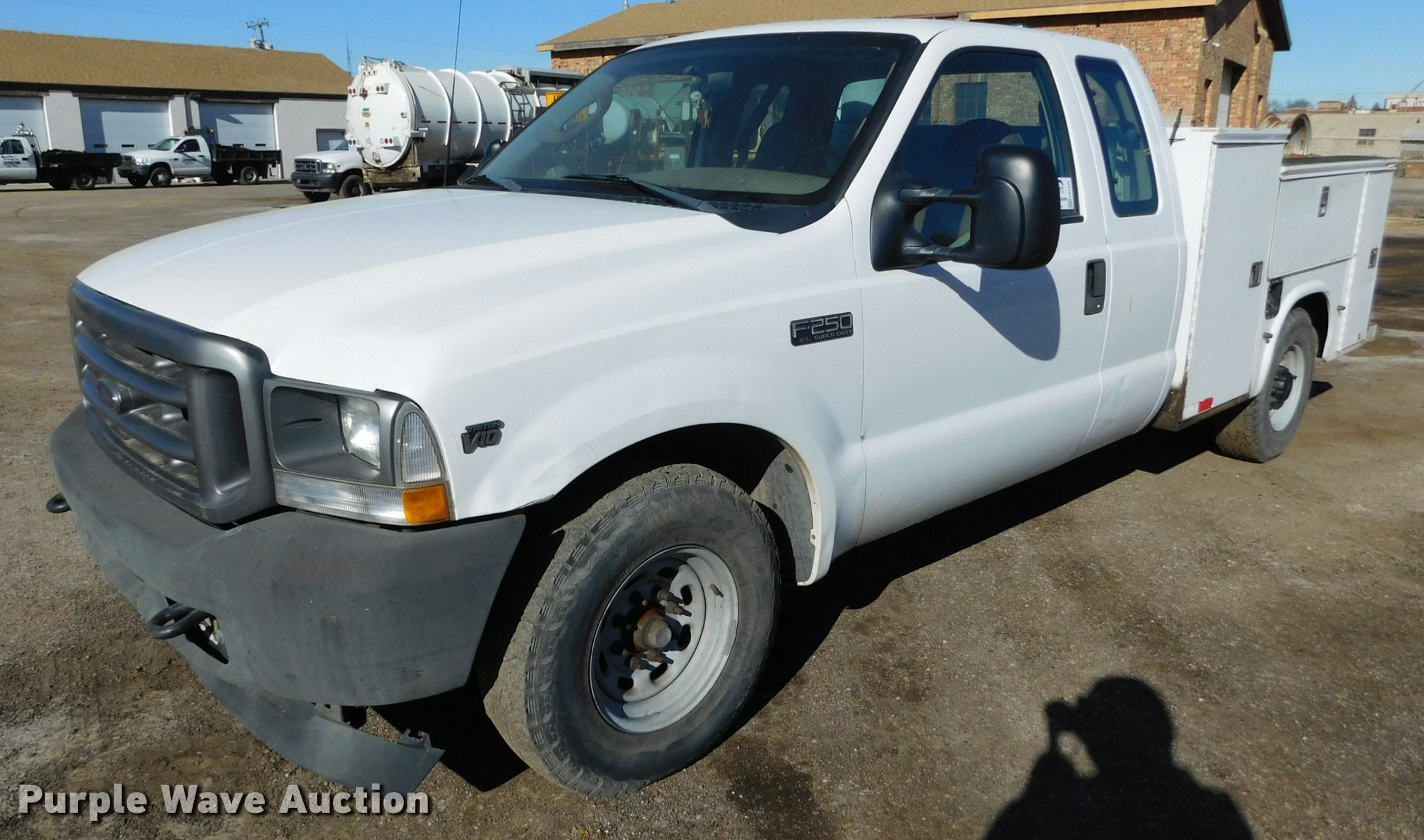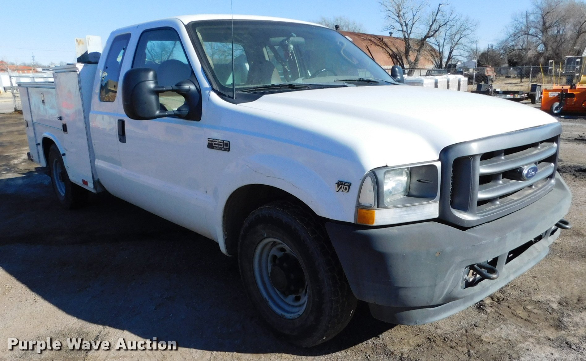 Purple Wave is selling a used 3/4 or 1 Ton Pickup or Van in Kansas. This item is a 2003 Ford F250 XL SuperCab utility truck with the following: 113,983 miles on odometer, 6.8L V10 SOHC 20V gas engine, Automatic transmission, AC and heat, Tilt, Cruise, AM/FM, Manual windows and locks, Vinyl interior, Knapheide utility bed, 9'L x 80"W, Serial 0320161, Front tow hooks, LT235/85R16 tires, Batteries weak