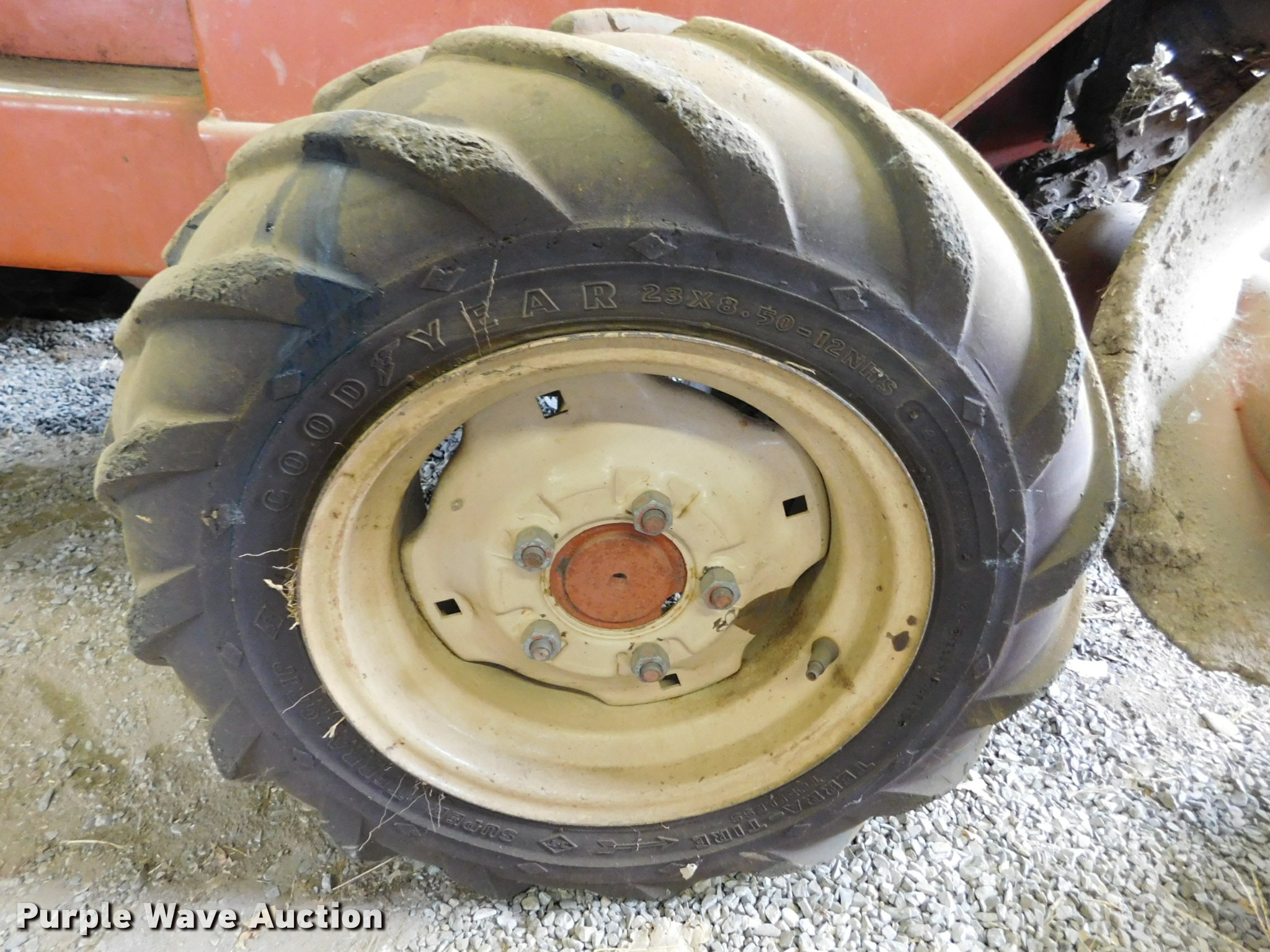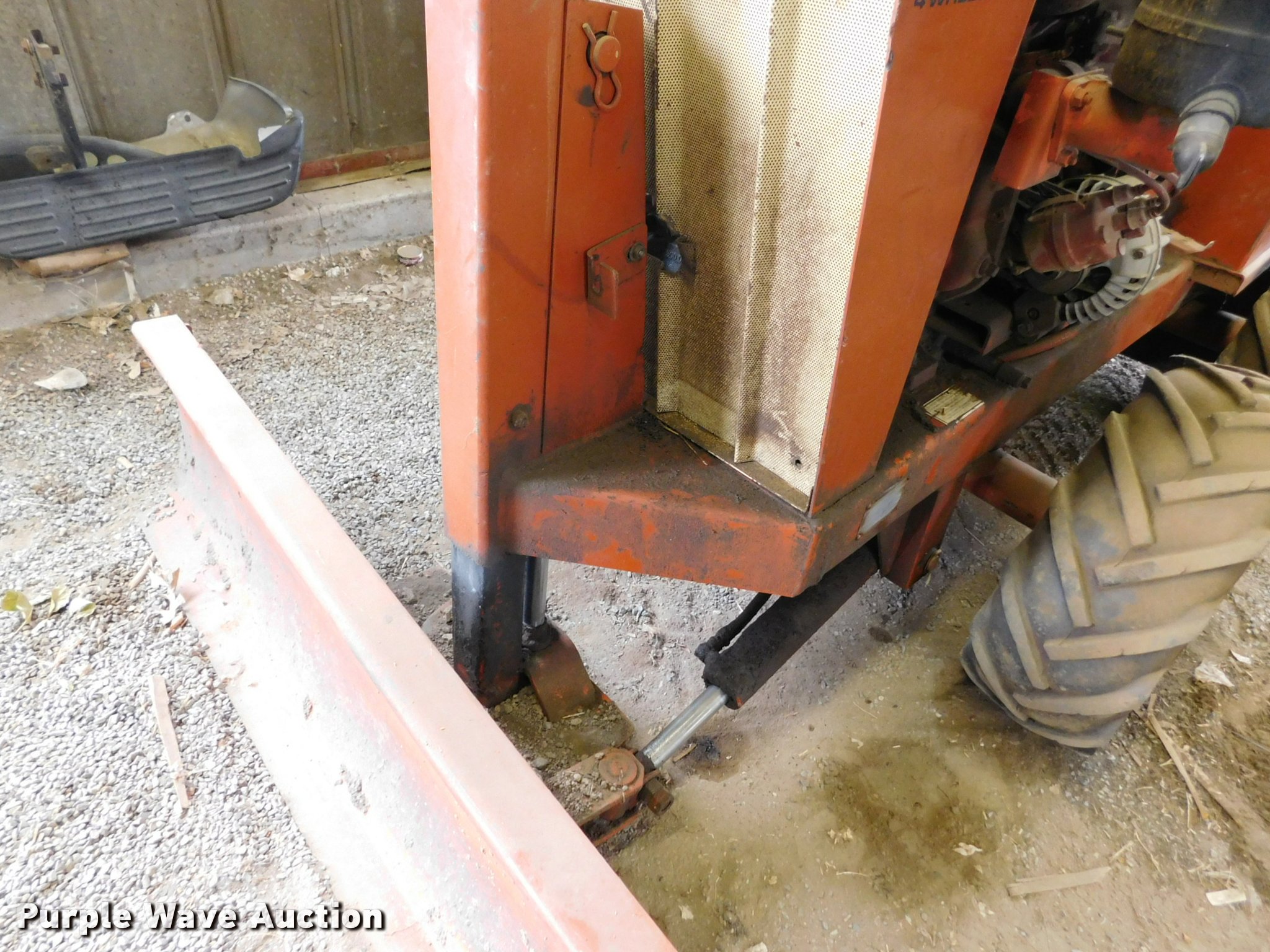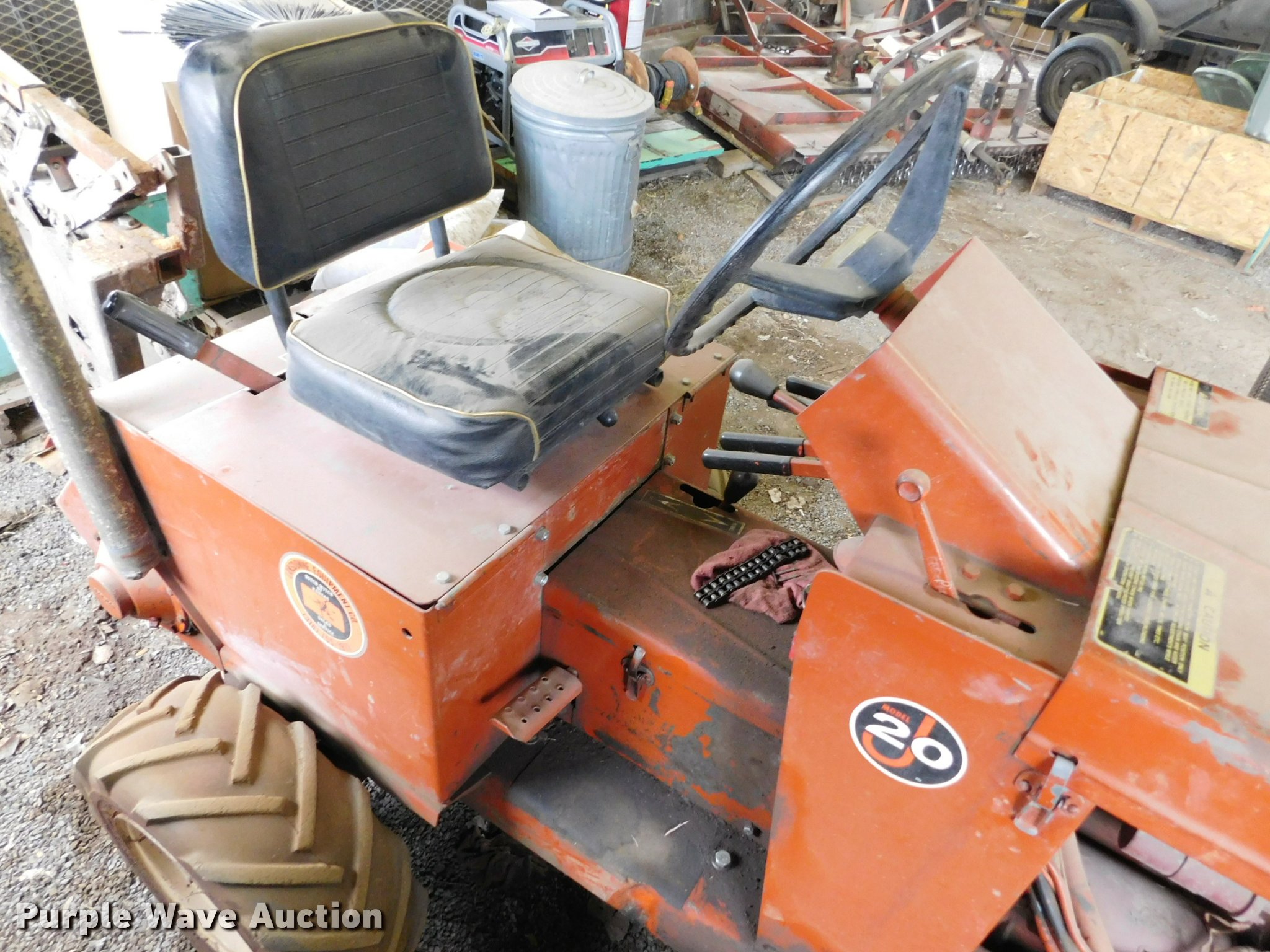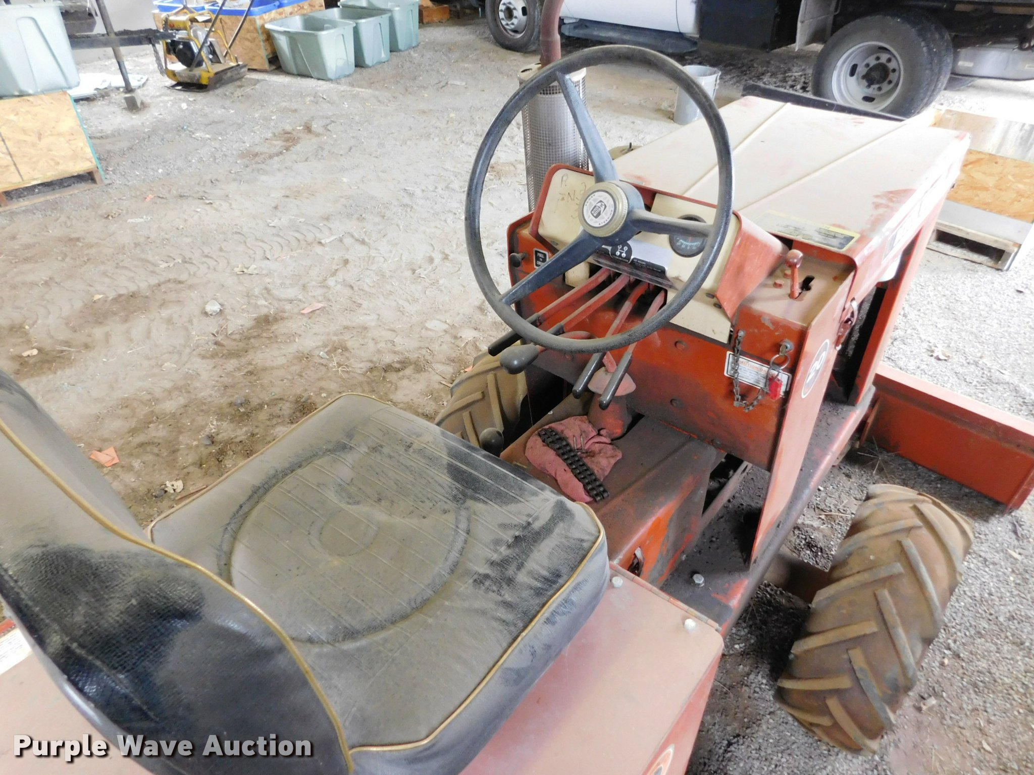 Purple Wave is selling a used Trencher or Rock Saw in Kansas. This item is a Ditch Witch J20D trencher with the following: Wisconsin TJD1 two cylinder gas engine, Serial 93010375, 3F-1R gears, Four wheel drive, Creep control, 57"W six-way backfill blade, Trencher, 4" cutting width, 3' digging depth, Crumber shoe, Goodyear 23x8.50-12 tires, Spare parts and teeth, Broken front axle, Non-operational unit, Serial 237495, Unit# 108