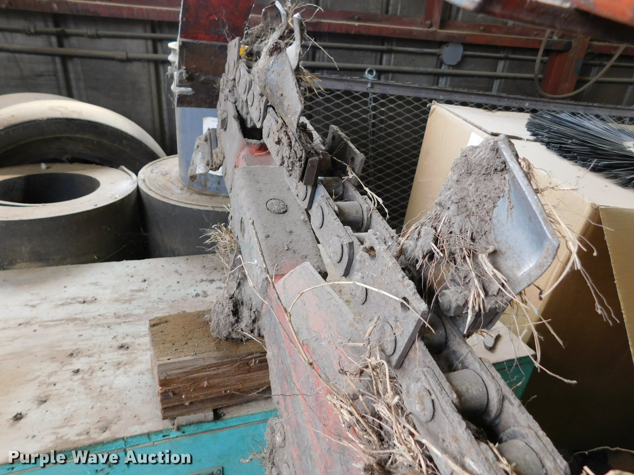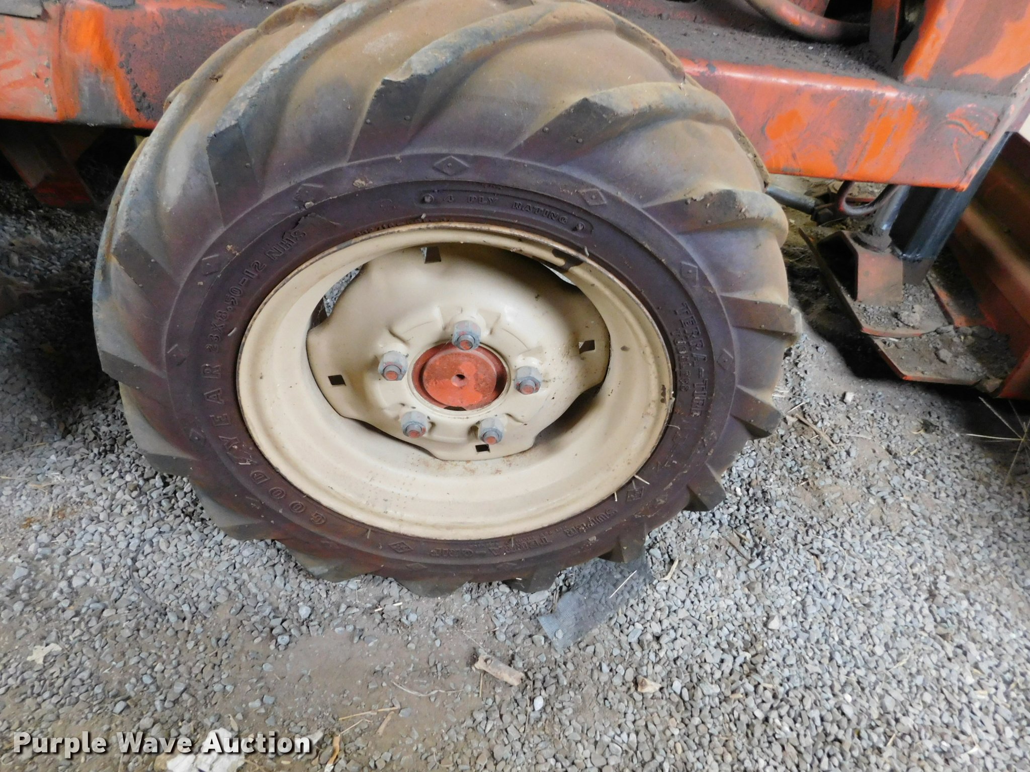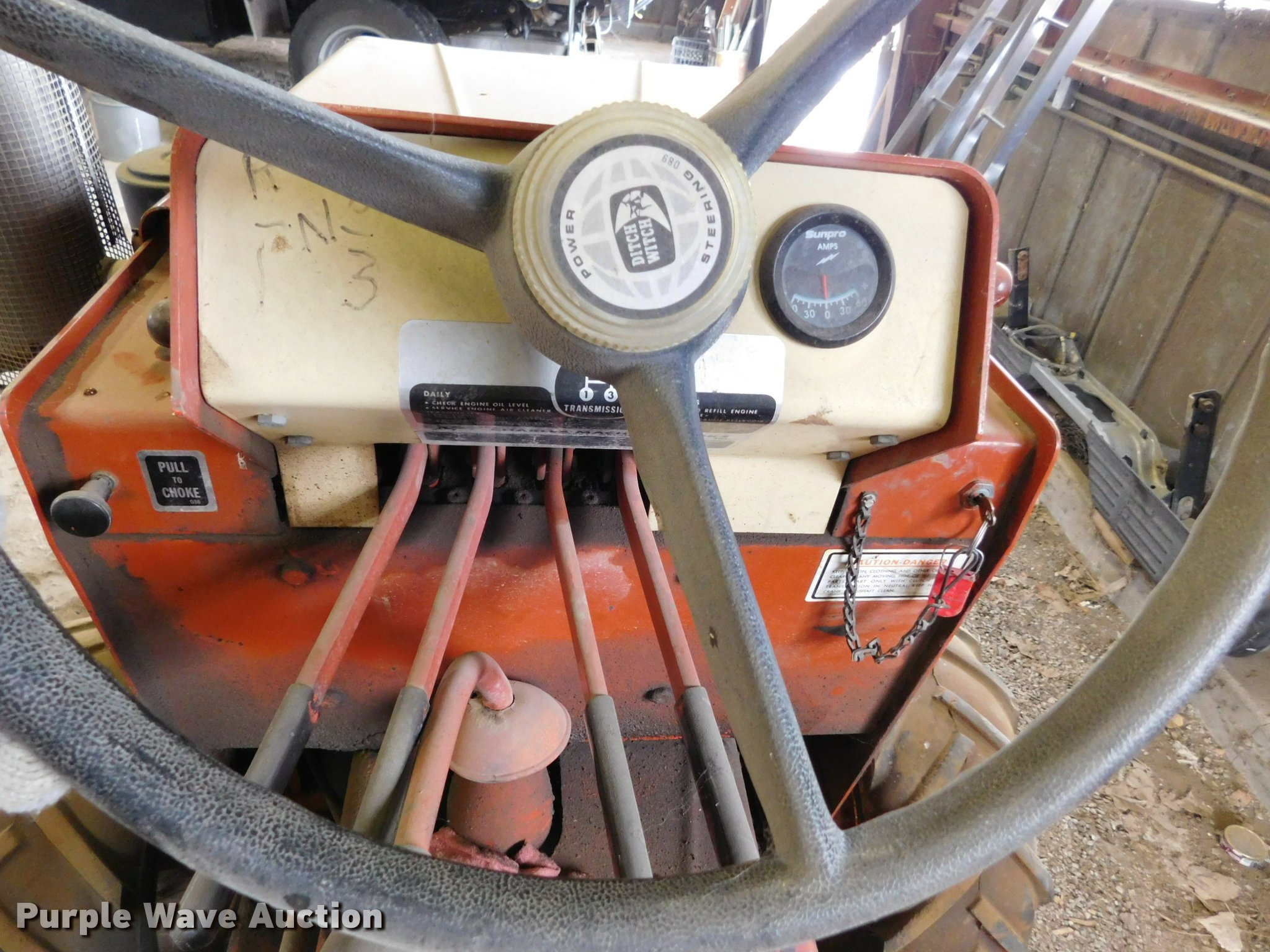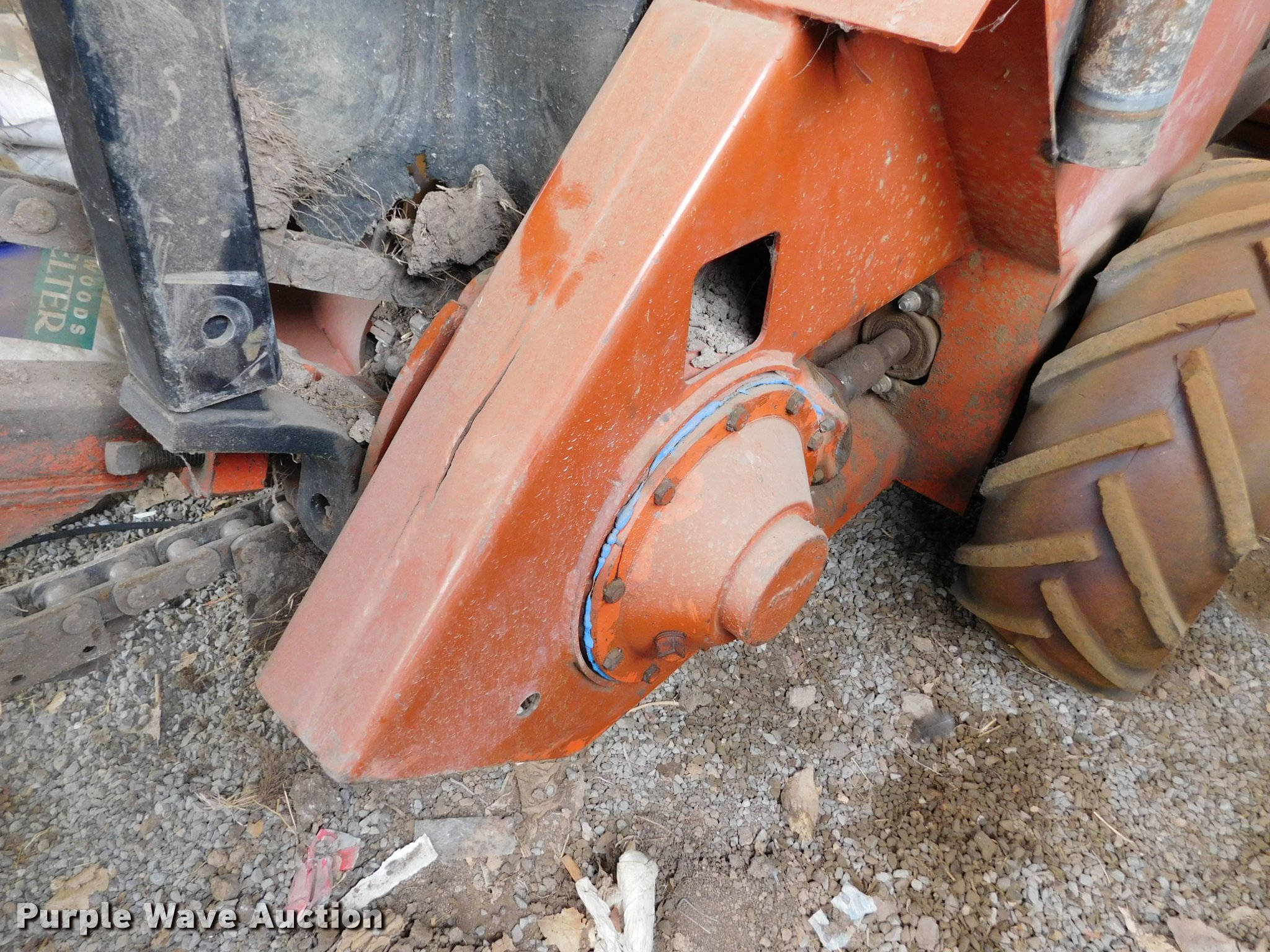 Purple Wave is selling a used Trencher or Rock Saw in Kansas. This item is a Ditch Witch J20D trencher with the following: Wisconsin TJD1 two cylinder gas engine, Serial 93010375, 3F-1R gears, Four wheel drive, Creep control, 57"W six-way backfill blade, Trencher, 4" cutting width, 3' digging depth, Crumber shoe, Goodyear 23x8.50-12 tires, Spare parts and teeth, Broken front axle, Non-operational unit, Serial 237495, Unit# 108