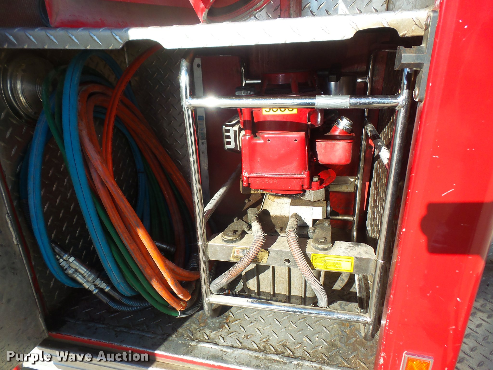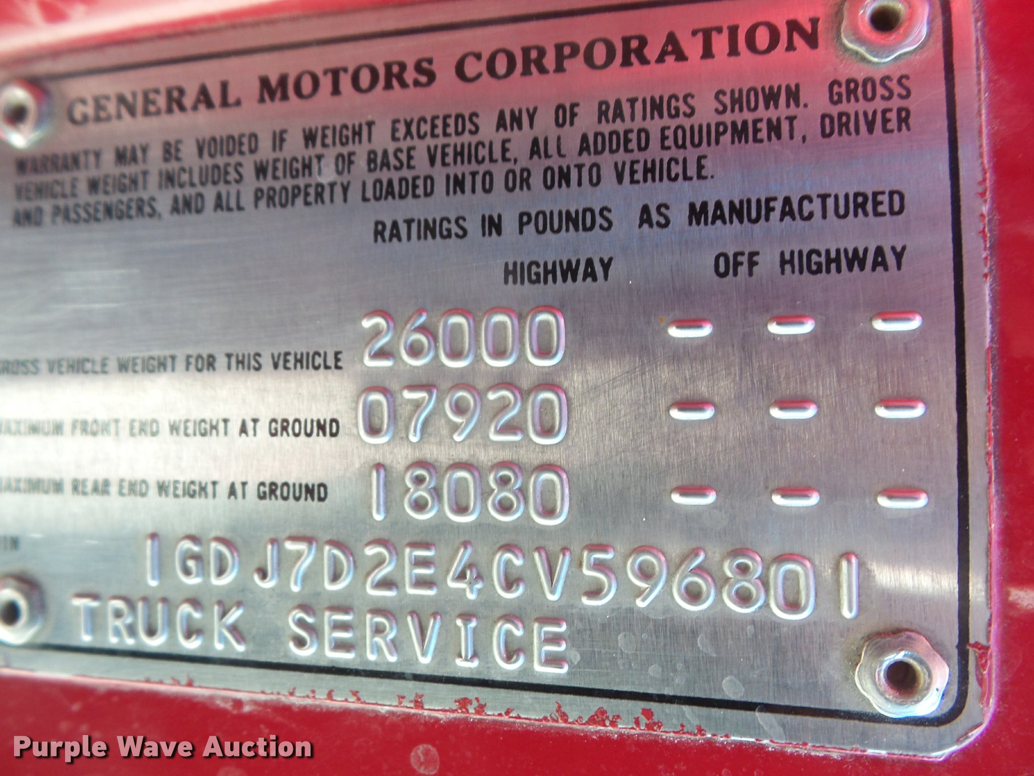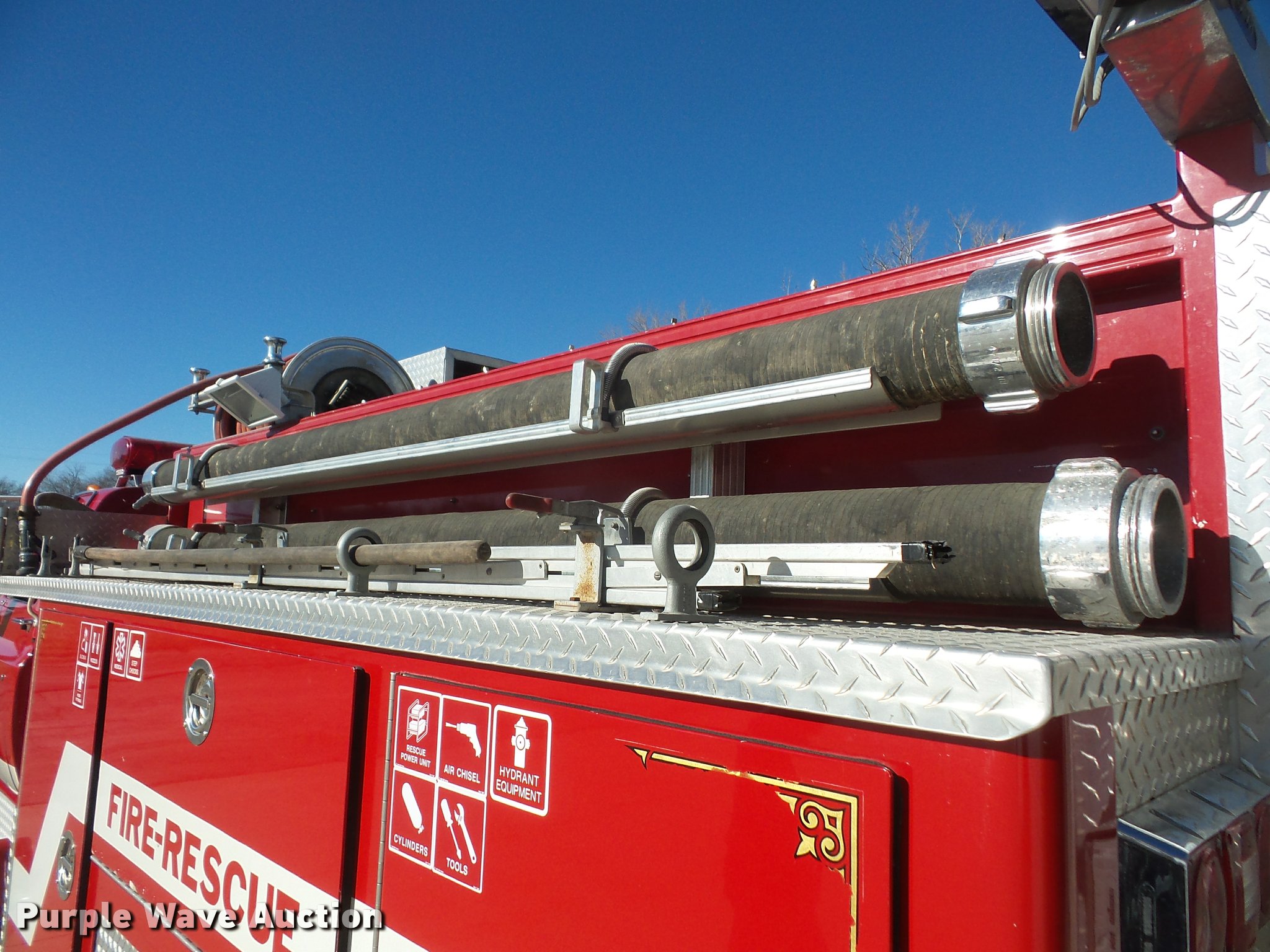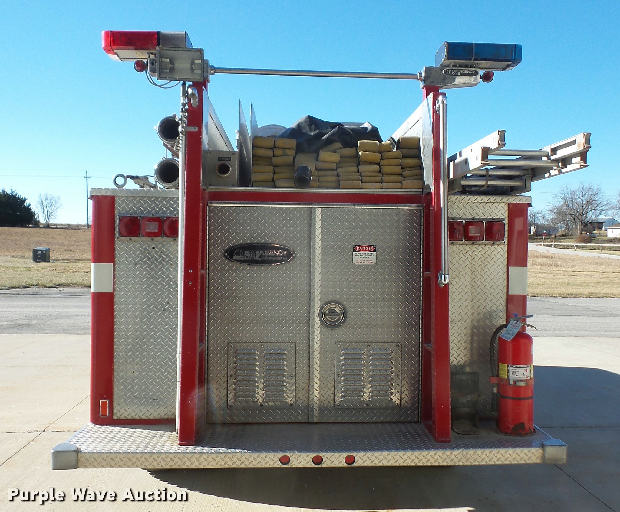Purple Wave is selling a used Fire Truck or Emergency Vehicle in Kansas. This item is a 1982 GMC 7000 pumper fire truck with the following: 33,738 miles on odometer, 429 C.I.D. V8 gas engine, Allison automatic transmission, Four wheel drive, Single axle, Heat, Light bar, Hurst extraction unit, Emergency One tank bed, 15'L, 750 gallon capacity, 24' ladder, 14' ladder, Roof hook and extension, 750 gpm pump, 11 HP gas engine, Hose reel and hose, Attic ladder, Pipe pole, 5,000 watt generator, Single fuel tank, 9.00-20 tires, Hose and nozzles not included, Radio not included