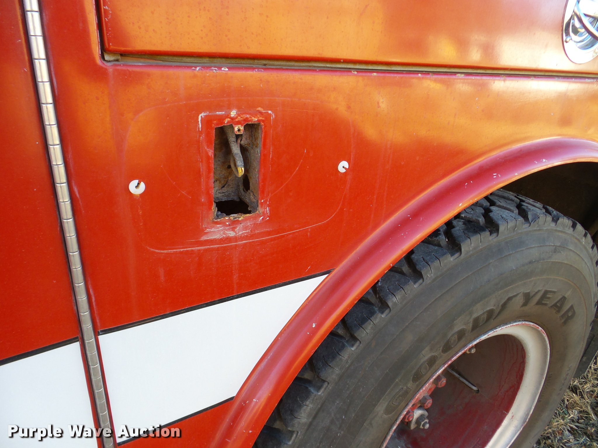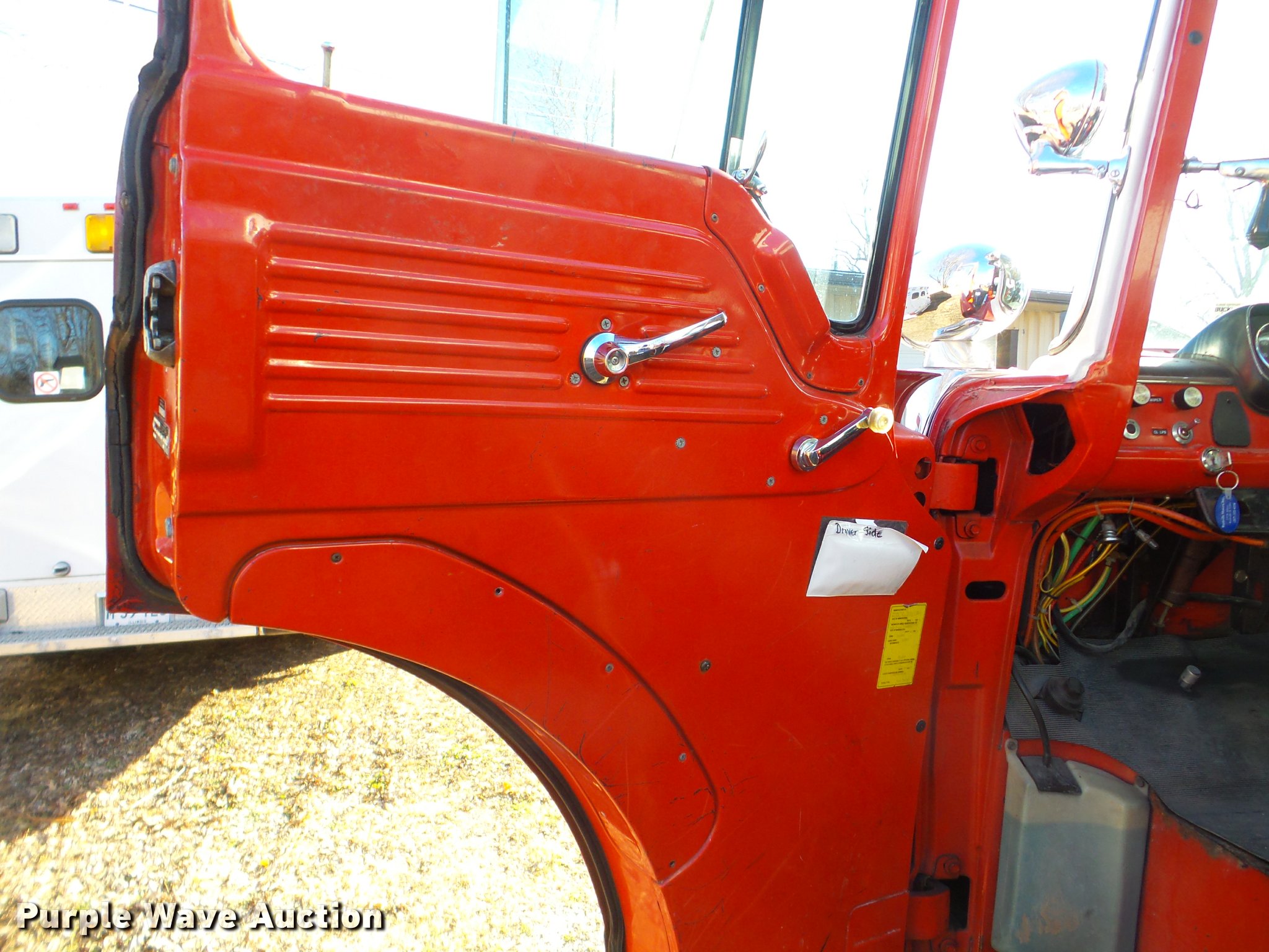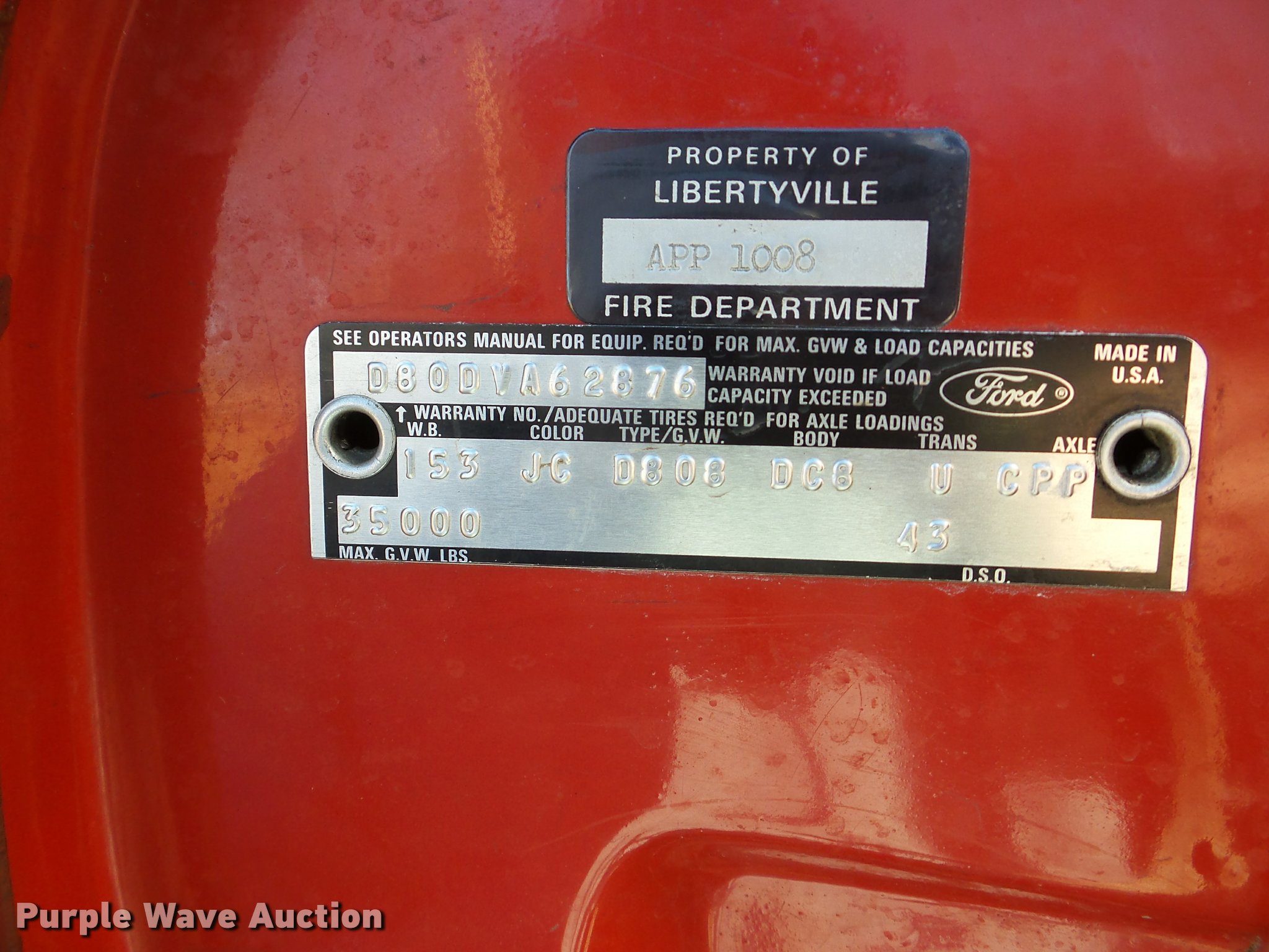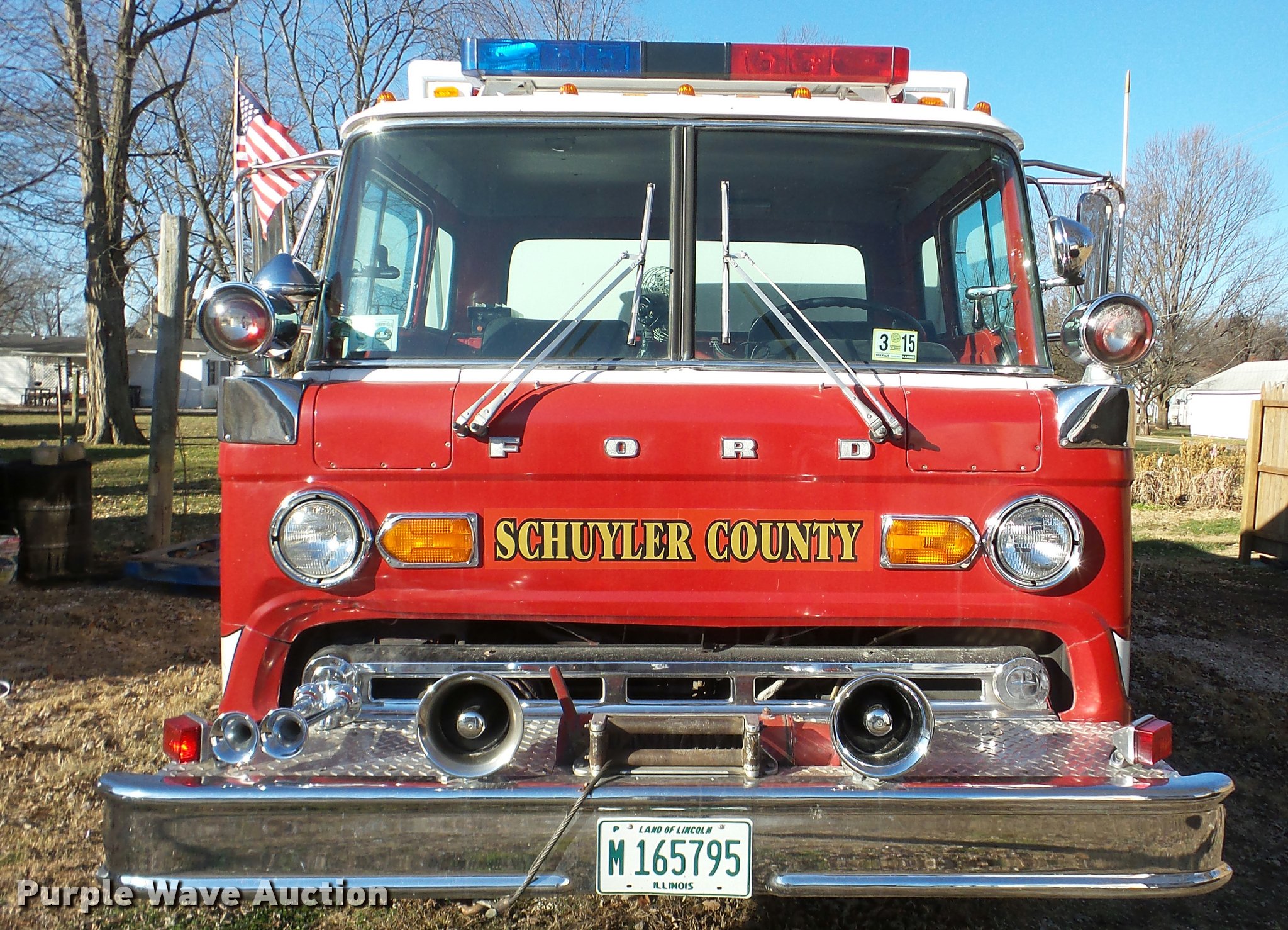 Purple Wave is selling a used Fire Truck or Emergency Vehicle in Illinois. This item is a 1976 Ford 8000 fire truck with the following: 19,229 miles on odometer, Caterpillar V636 six cylinder diesel engine, Five speed manual transmission, Single axle, Heat, Six person capacity, Welch body, 17'L, Electric cord reel, (4) work lights, Emergency lights and sirens, (2) Onan generators, Two cylinder diesel engine, 334 and 529 hours on meters, Ramsey winch, 24,0000 lbs capacity, 11.00-20 tires, GVWR 35,000 lbs, Alternator issue, Possible voltage regulator malfunction, Low battery