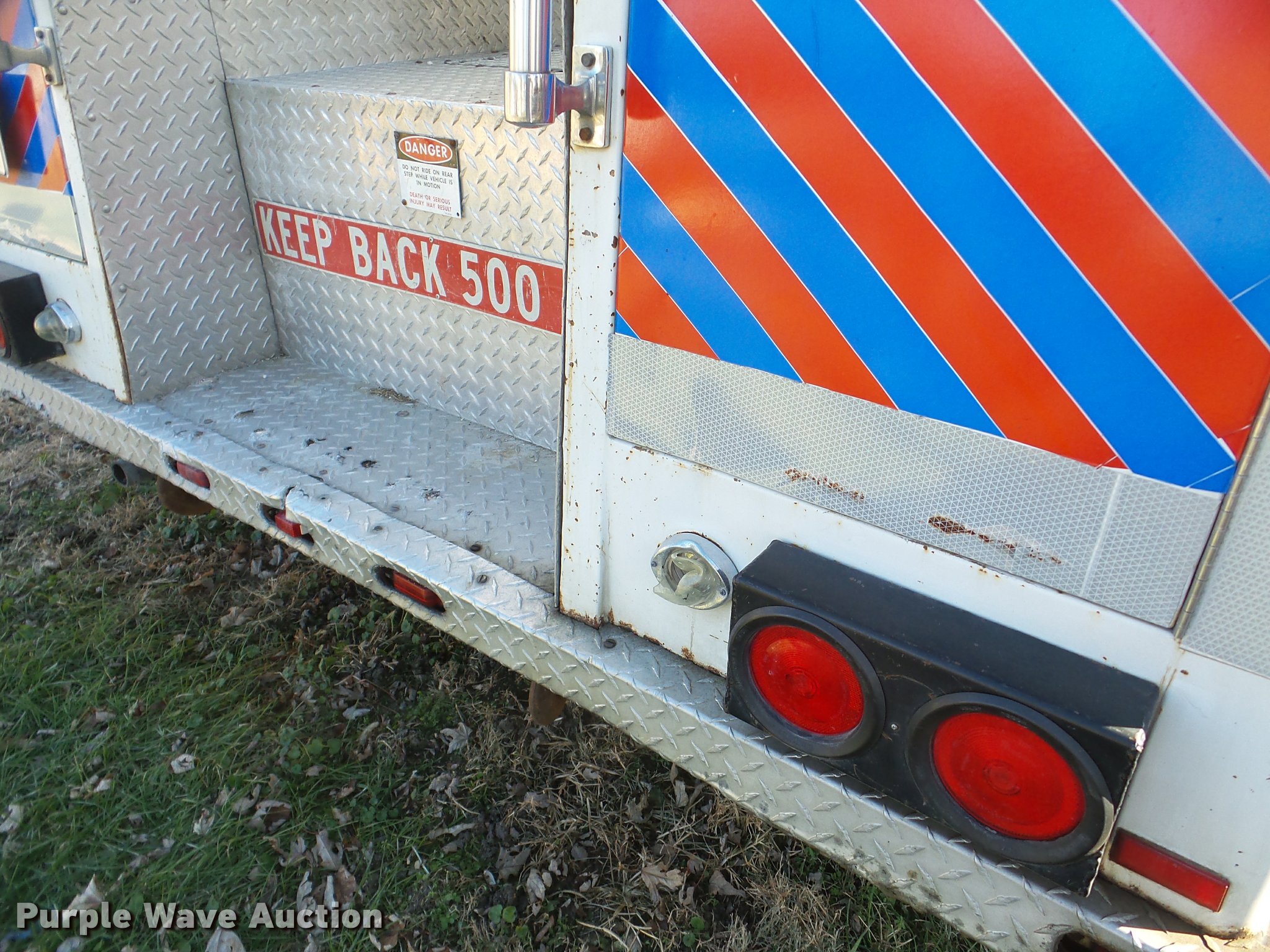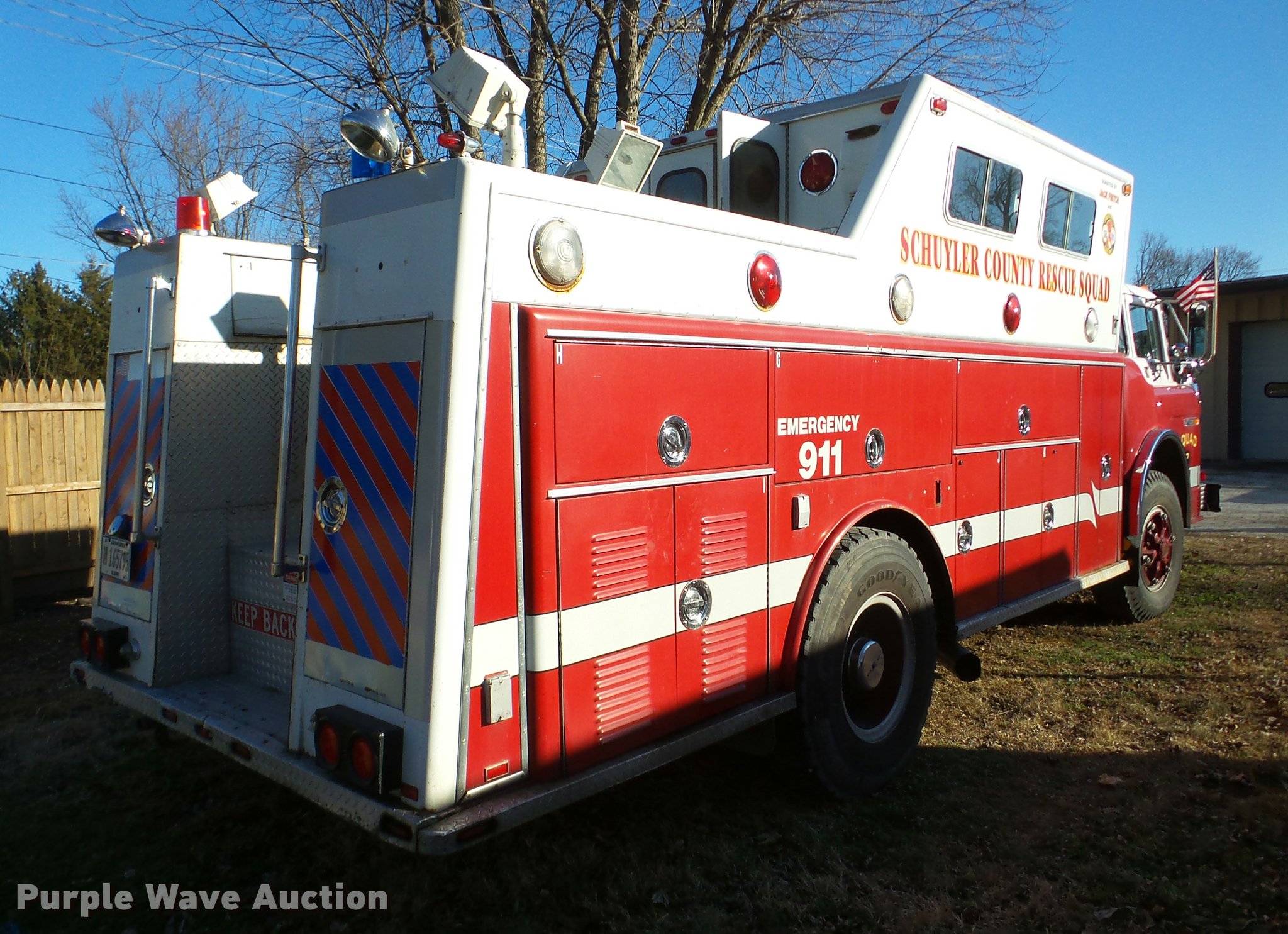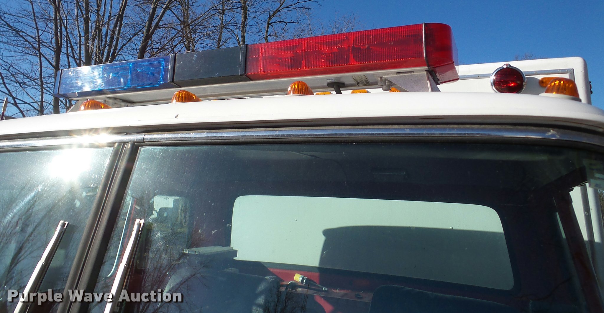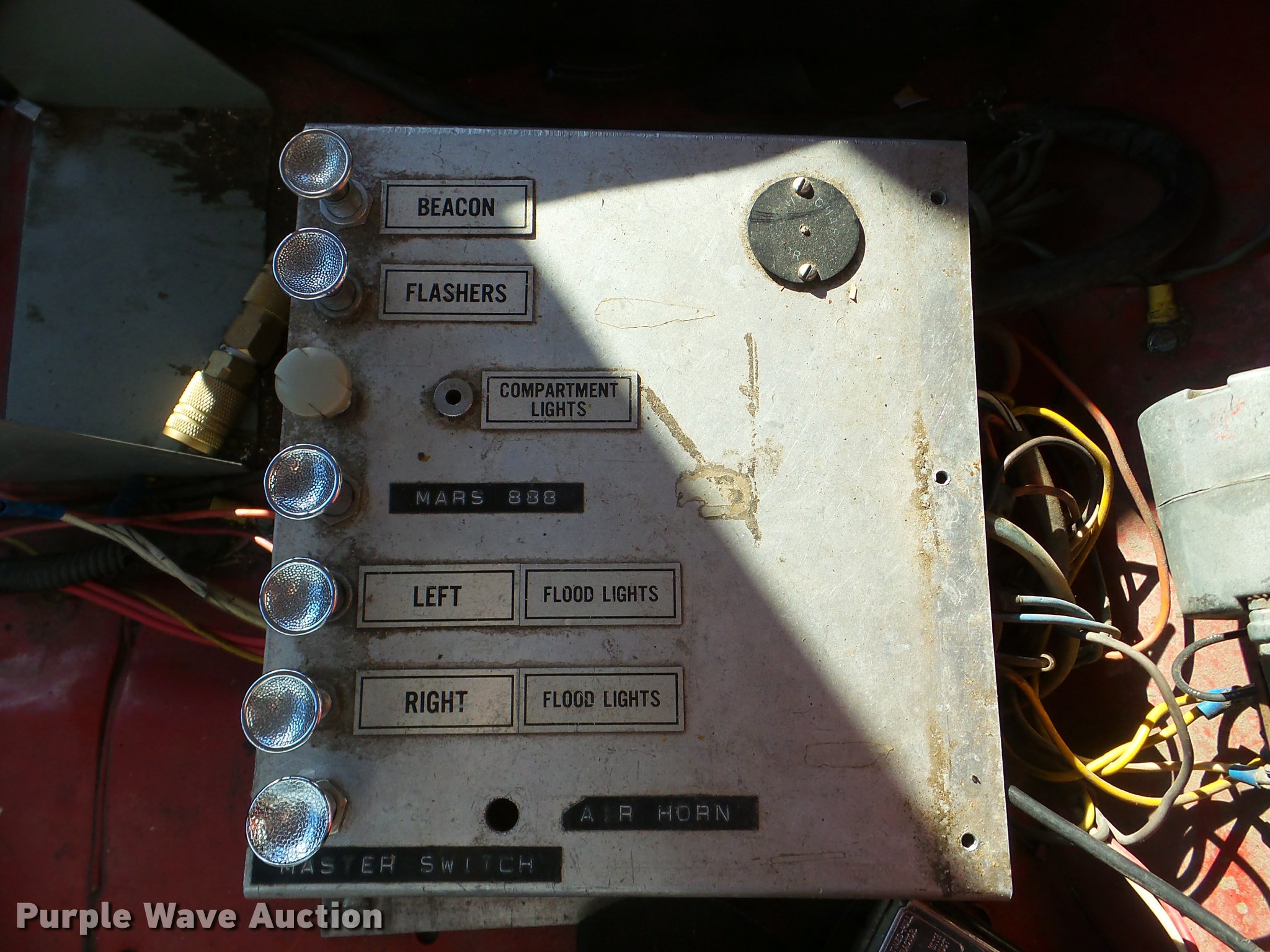 Purple Wave is selling a used Fire Truck or Emergency Vehicle in Illinois. This item is a 1976 Ford 8000 fire truck with the following: 19,229 miles on odometer, Caterpillar V636 six cylinder diesel engine, Five speed manual transmission, Single axle, Heat, Six person capacity, Welch body, 17'L, Electric cord reel, (4) work lights, Emergency lights and sirens, (2) Onan generators, Two cylinder diesel engine, 334 and 529 hours on meters, Ramsey winch, 24,0000 lbs capacity, 11.00-20 tires, GVWR 35,000 lbs, Alternator issue, Possible voltage regulator malfunction, Low battery
