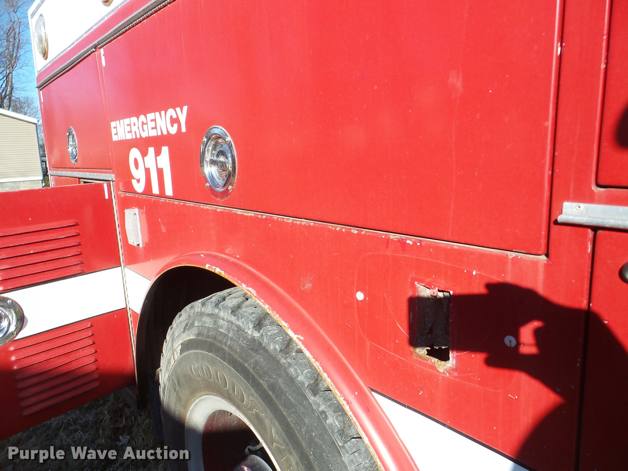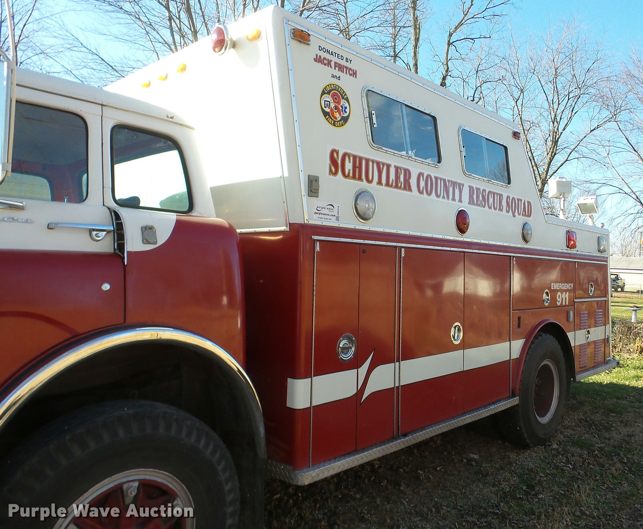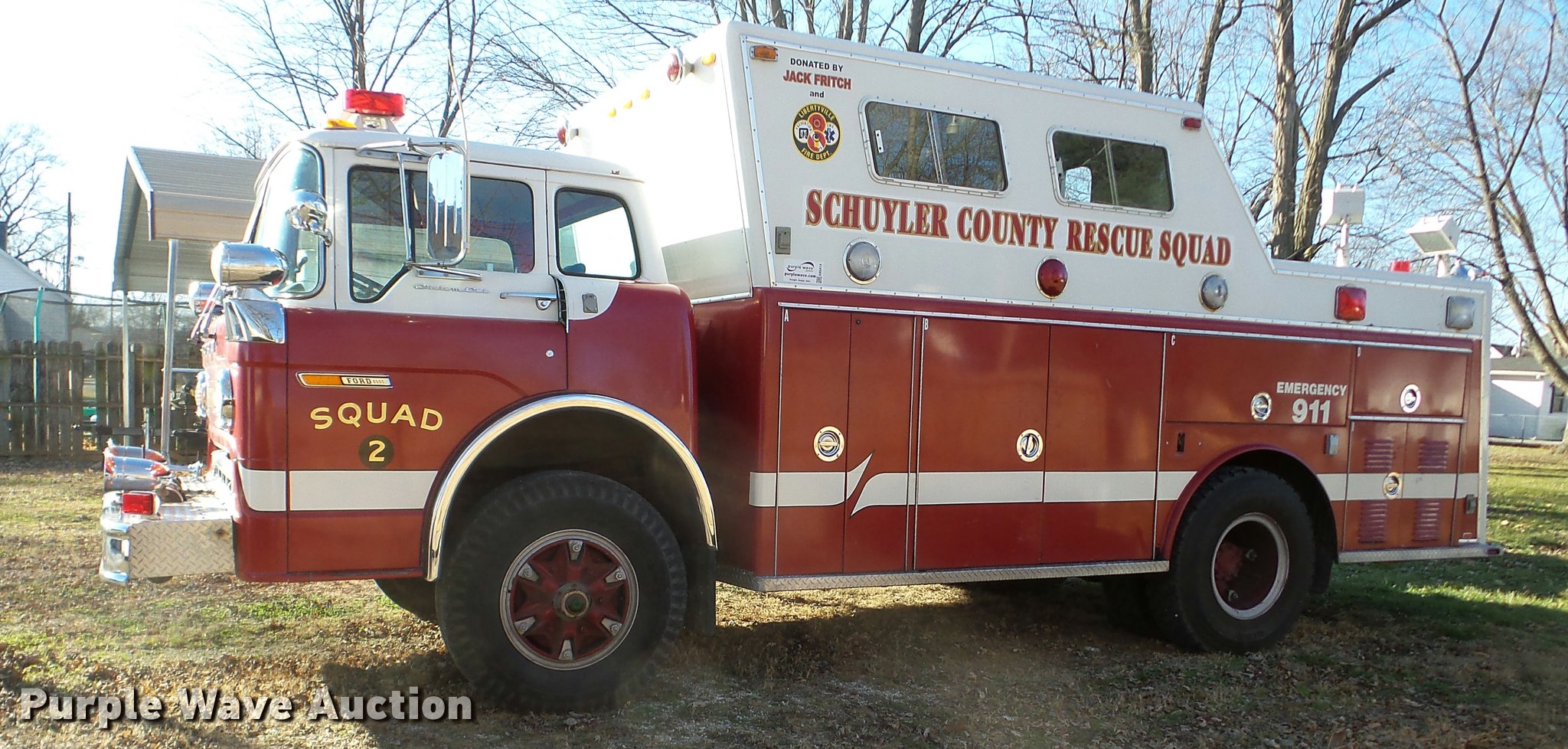 1976 Ford 8000 fire truck. 19,229 miles on odometer, Caterpillar V636 six cylinder diesel engine, Five speed manual transmission, Single axle, Heat, Six person capacity, Welch body 17'L, Electric cord reel, (4) work lights, Emergency lights and sirens, (2) Onan generators Two cylinder diesel engine, 334 and 529 hours on meters, Ramsey winch 24,0000 lbs capacity, 11.00-20 tires, GVWR 35,000 lbs, Alternator issue Possible voltage regulator malfunction, Low battery. Illinois title. D80DYA62876. Schuyler County Ambulance. Rushville, IL 62681