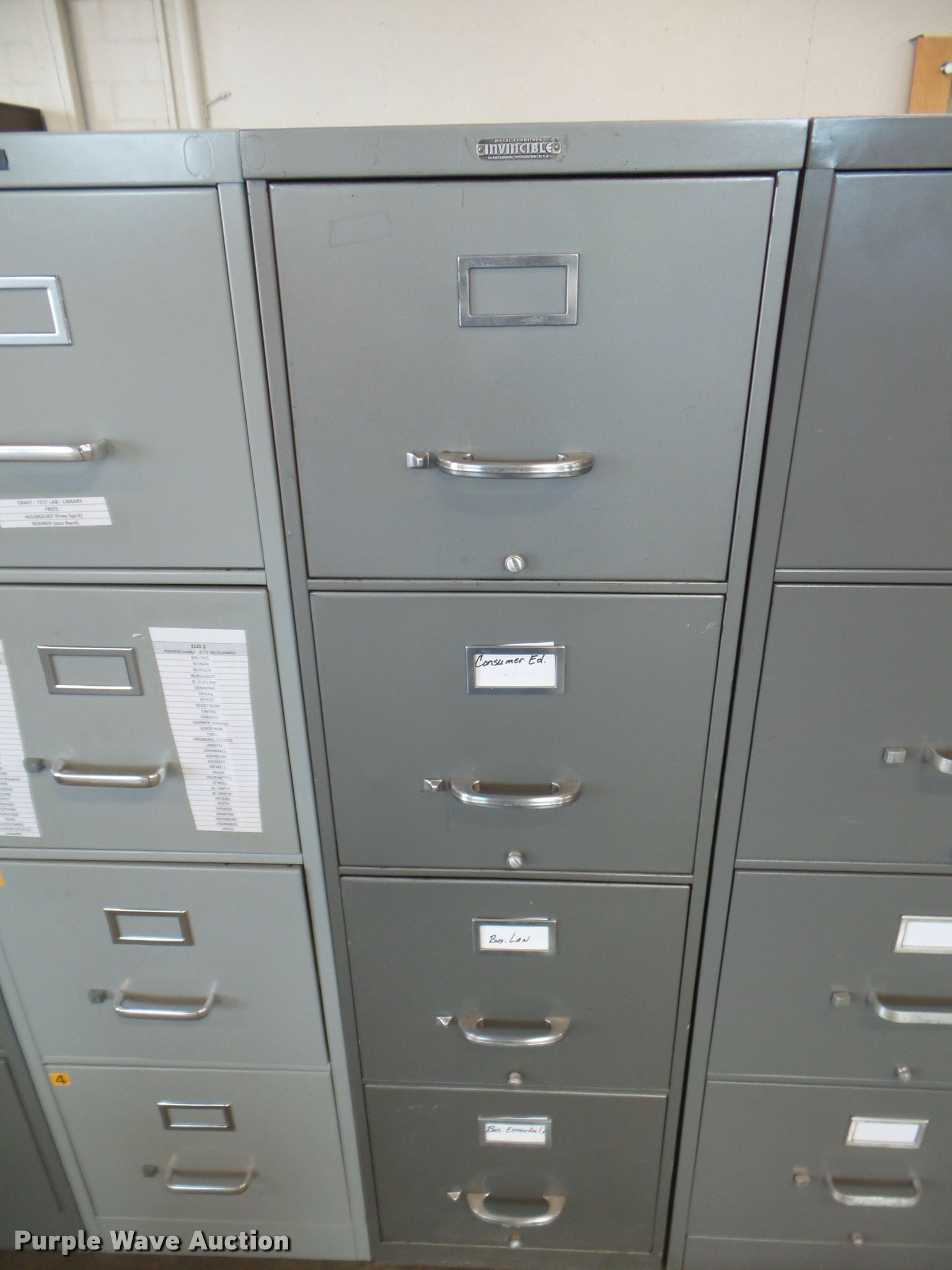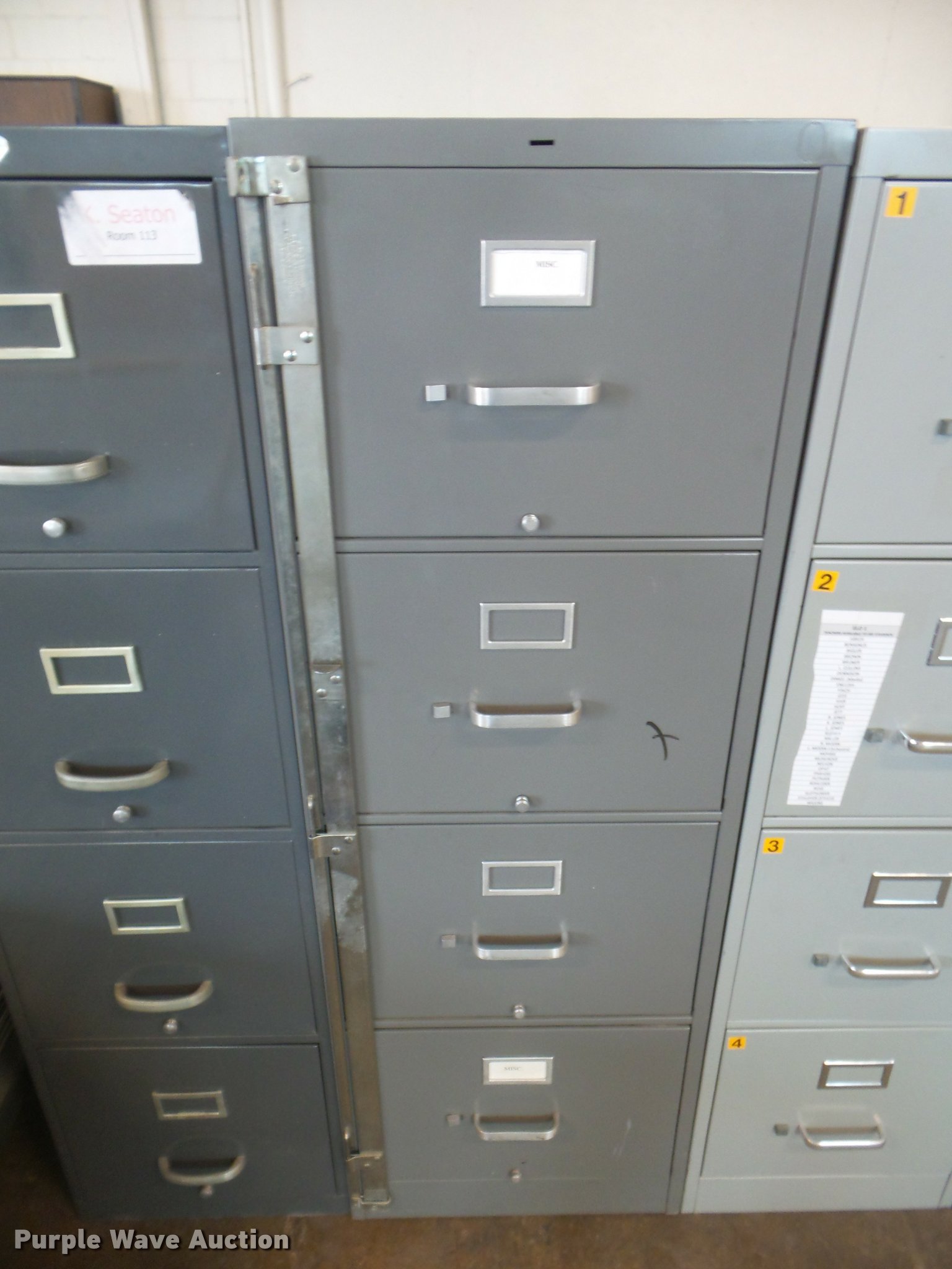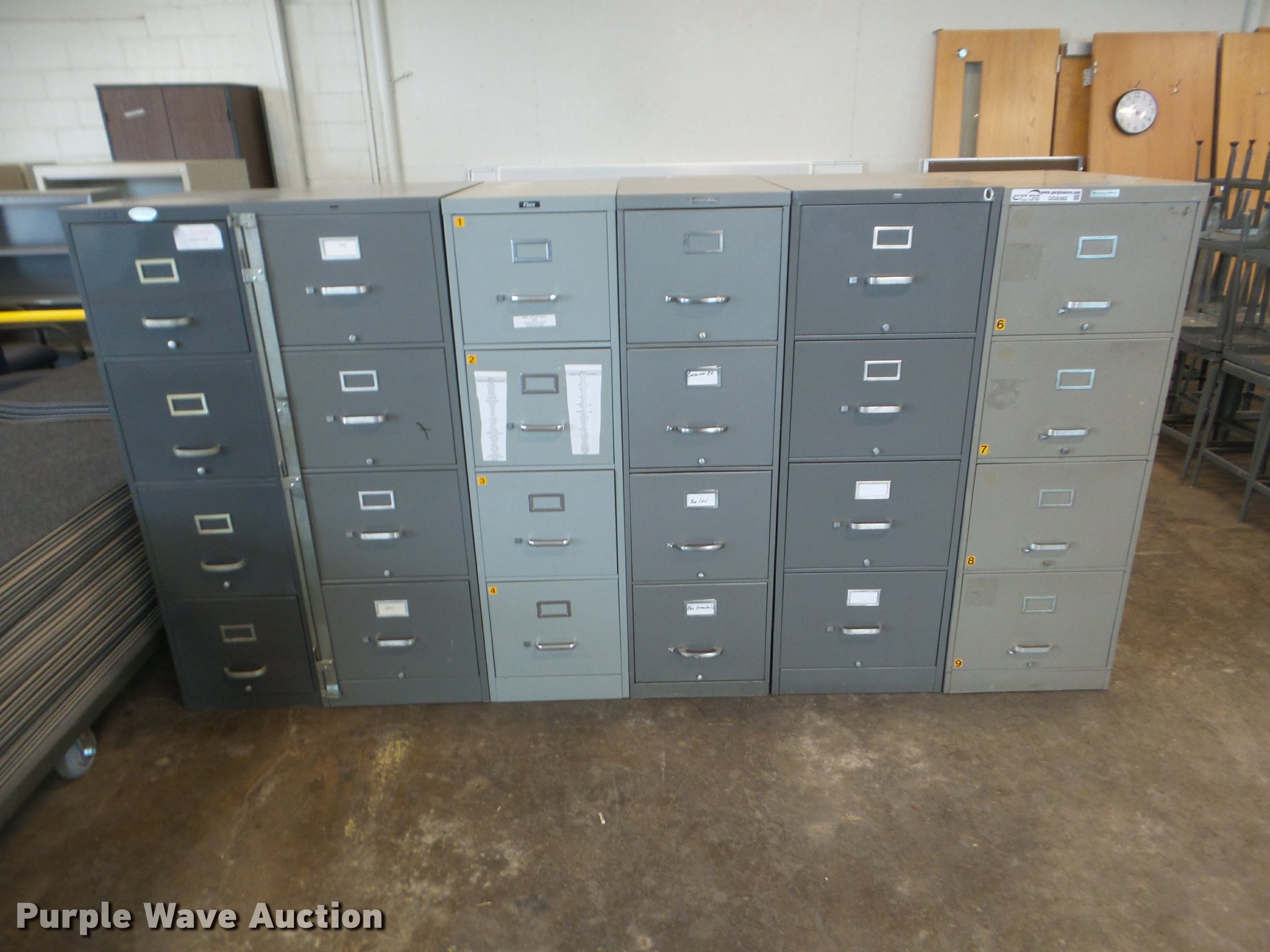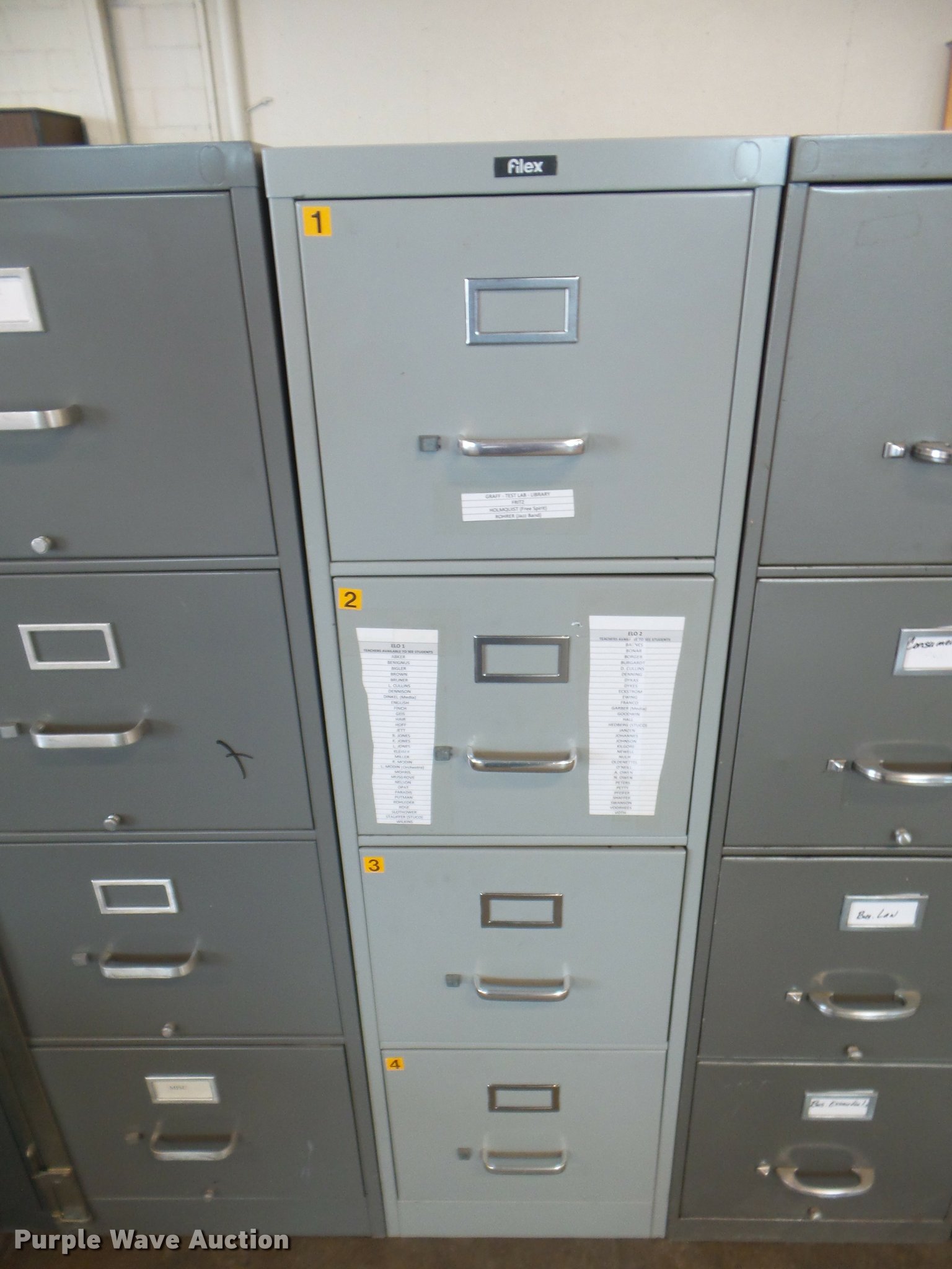 Purple Wave is selling a used Office Supplies and Equip. in Kansas. This item is a (6) four drawer filing cabinets with the following: Various brands