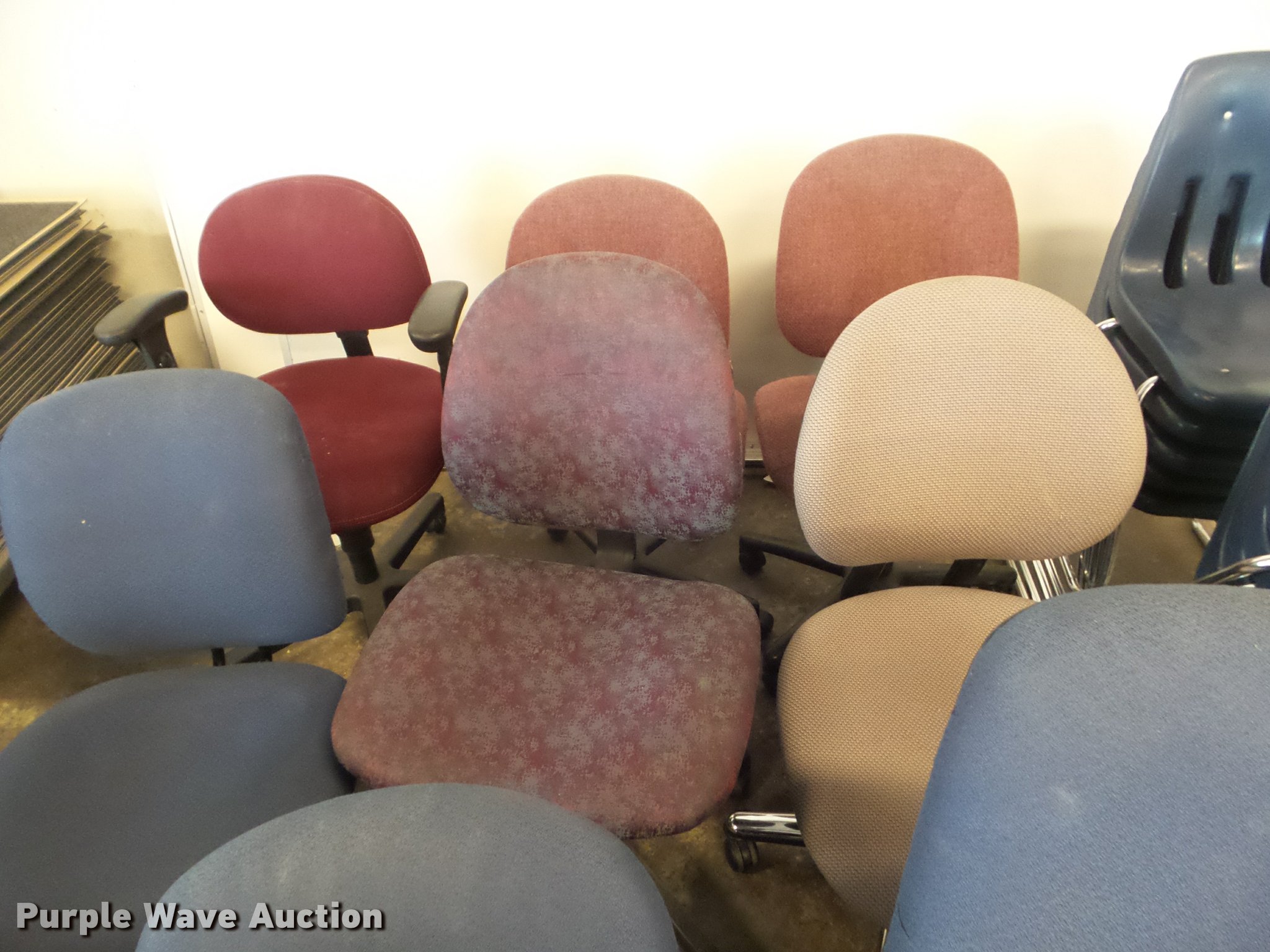 Purple Wave is selling a used Furniture in Kansas. This item is a Furniture with the following: (13) office chairs, Approx. 20 desk chairs