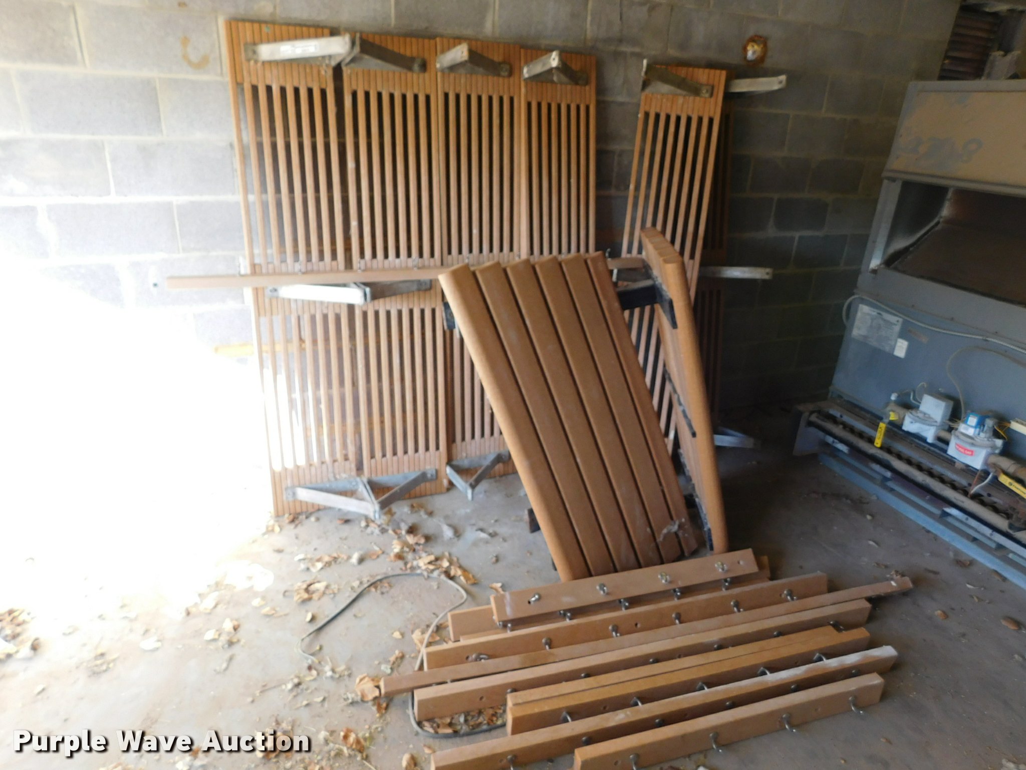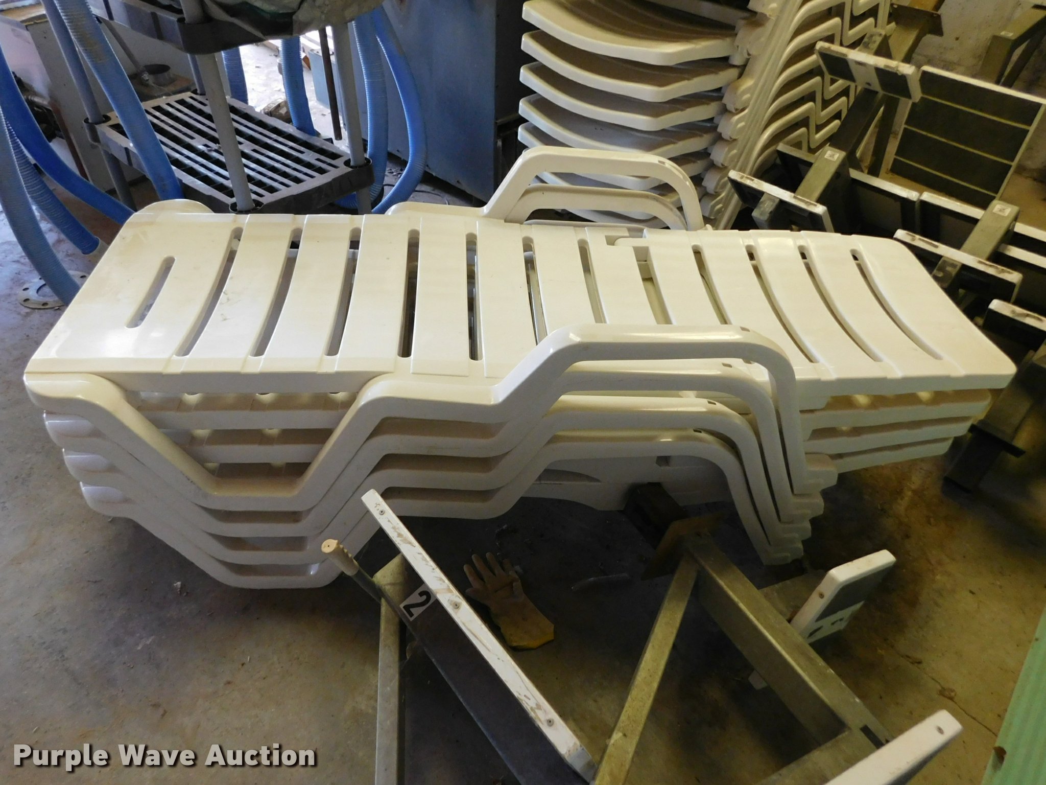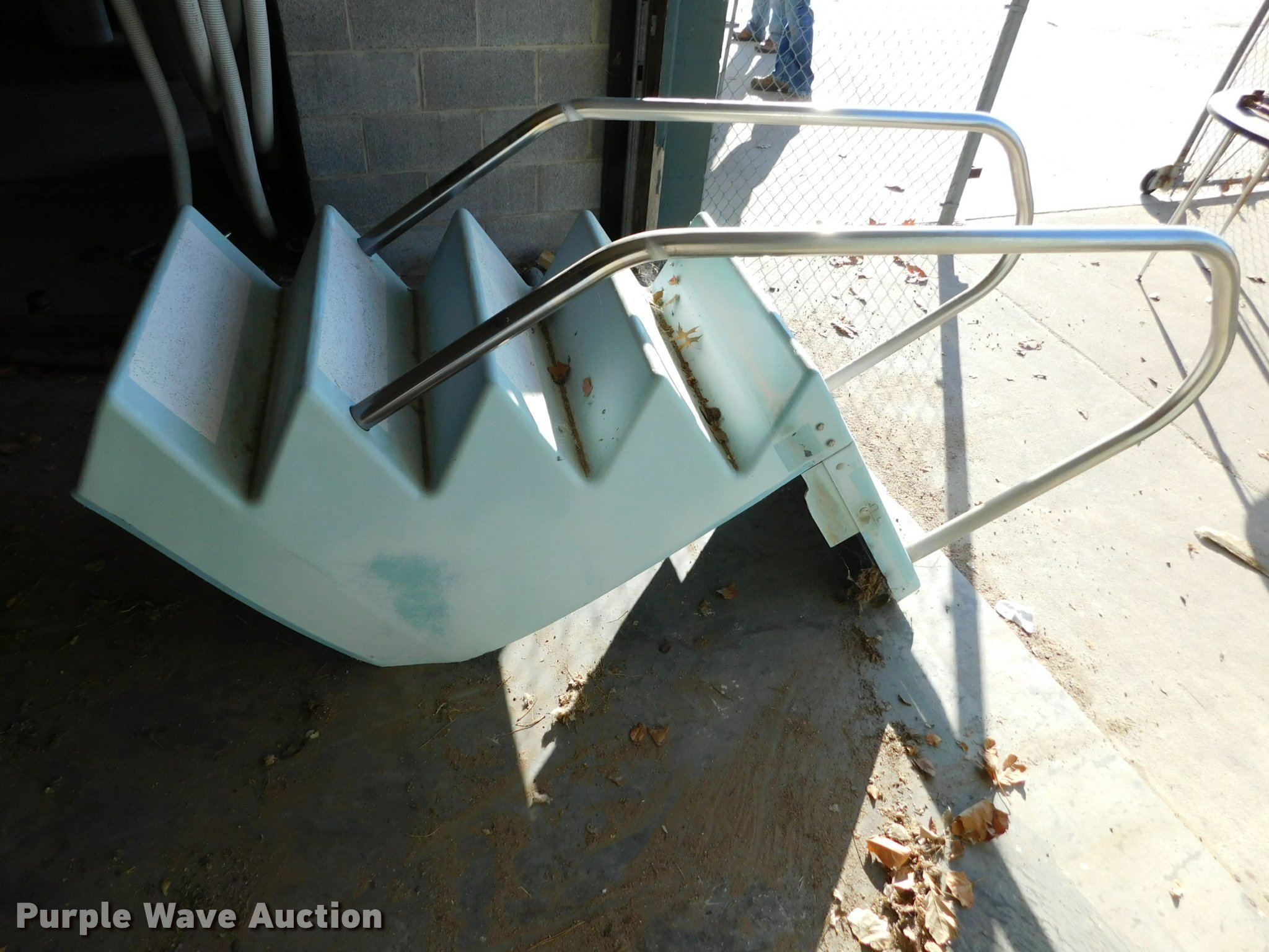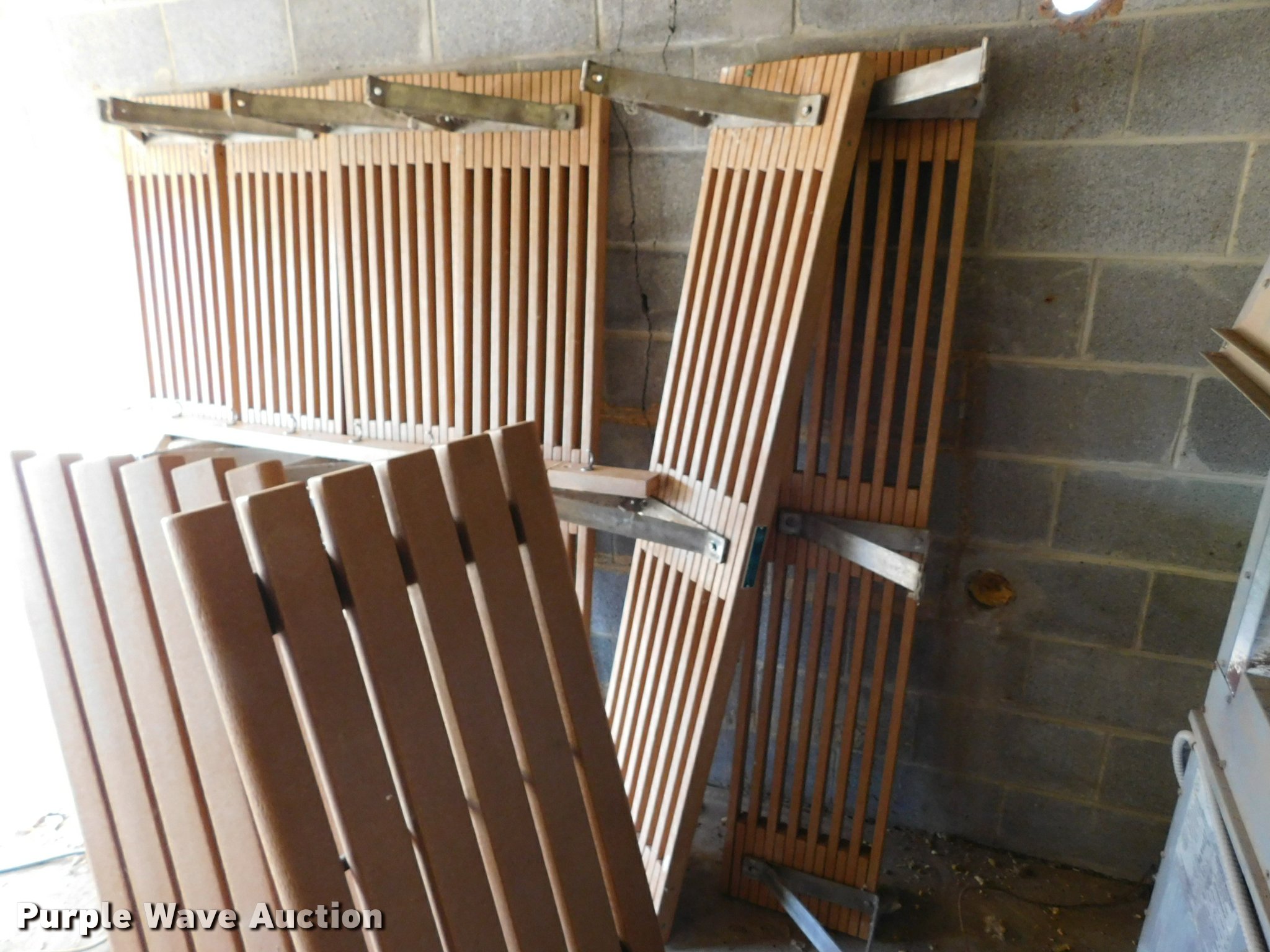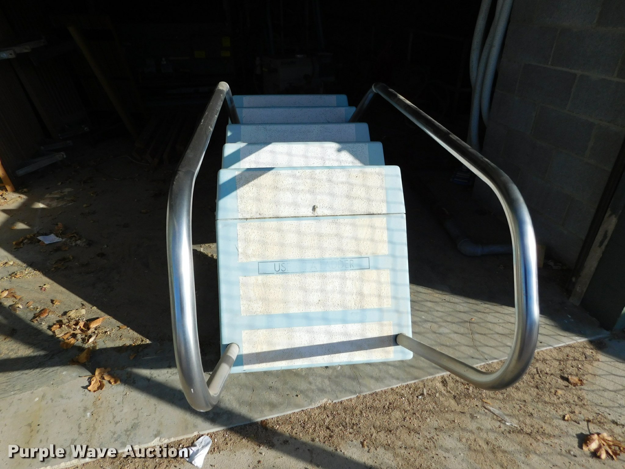 Purple Wave is selling a used Building Materials in Kansas. This item is a Pool supplies with the following: (6) 6' x 14" benches, (2) 4' x 2' benches, Tow hooks, Approximately six pool chairs, Approximately 17 lounge chairs, (2) diving boards, Pool stairs, (8) competition platforms