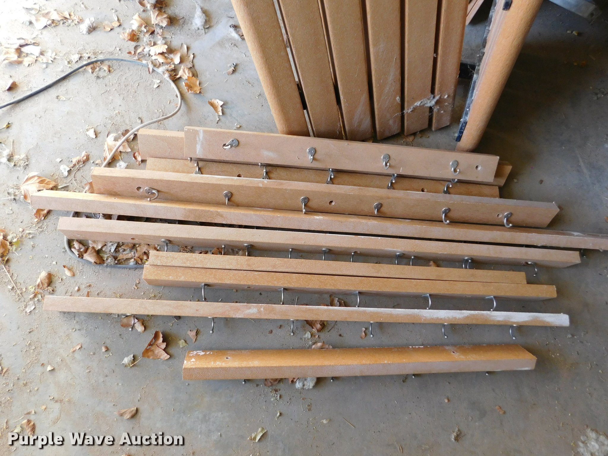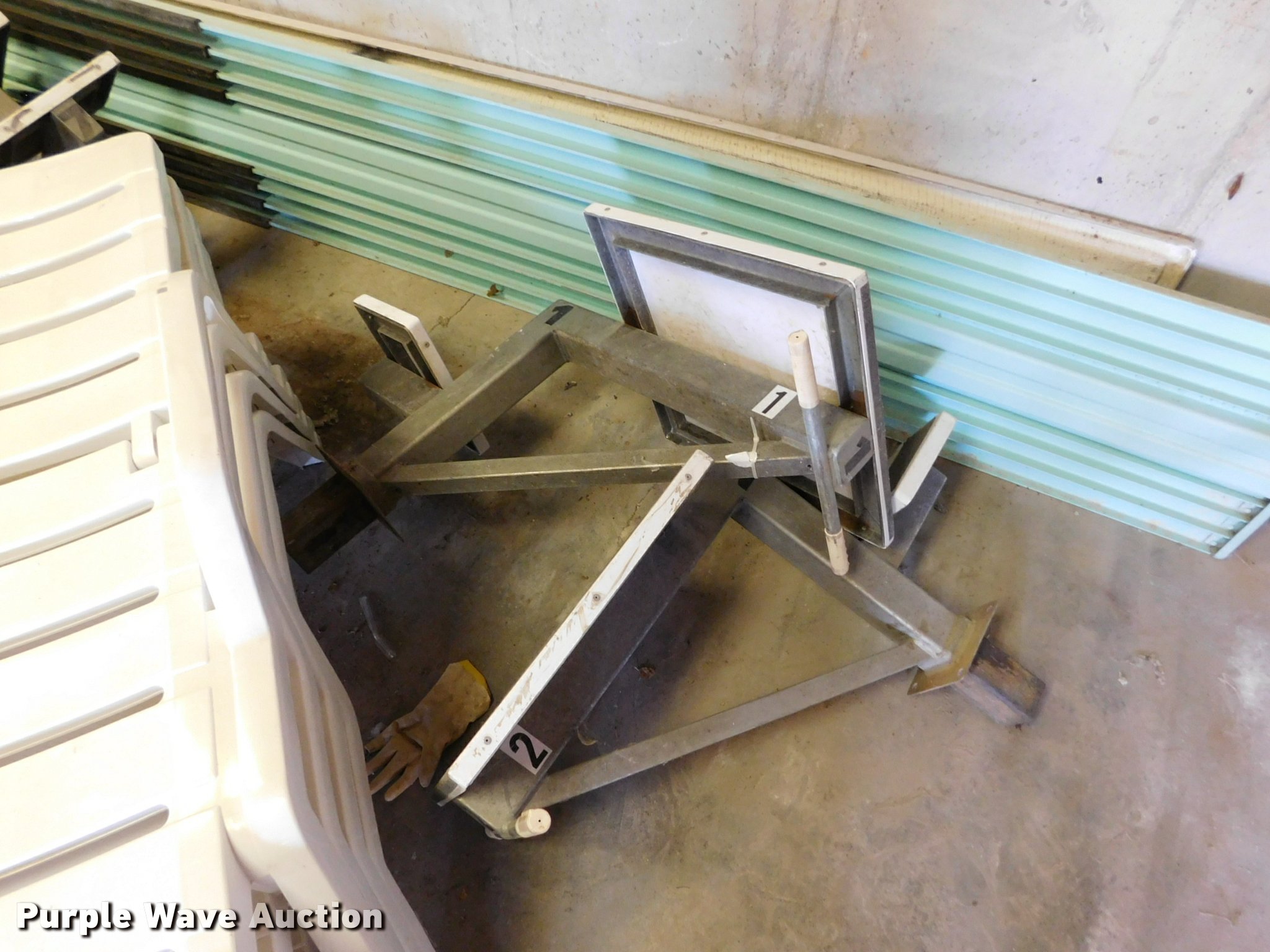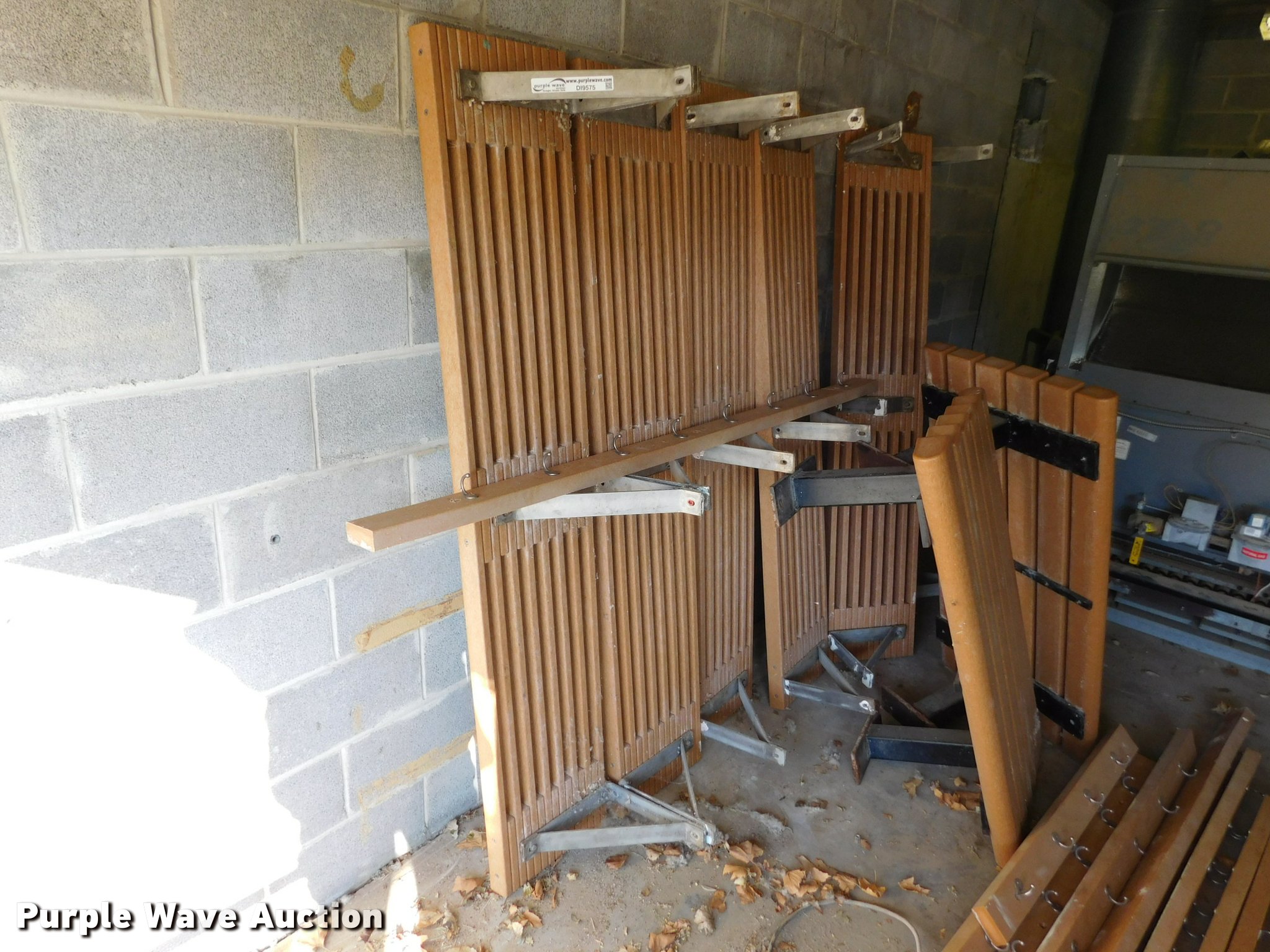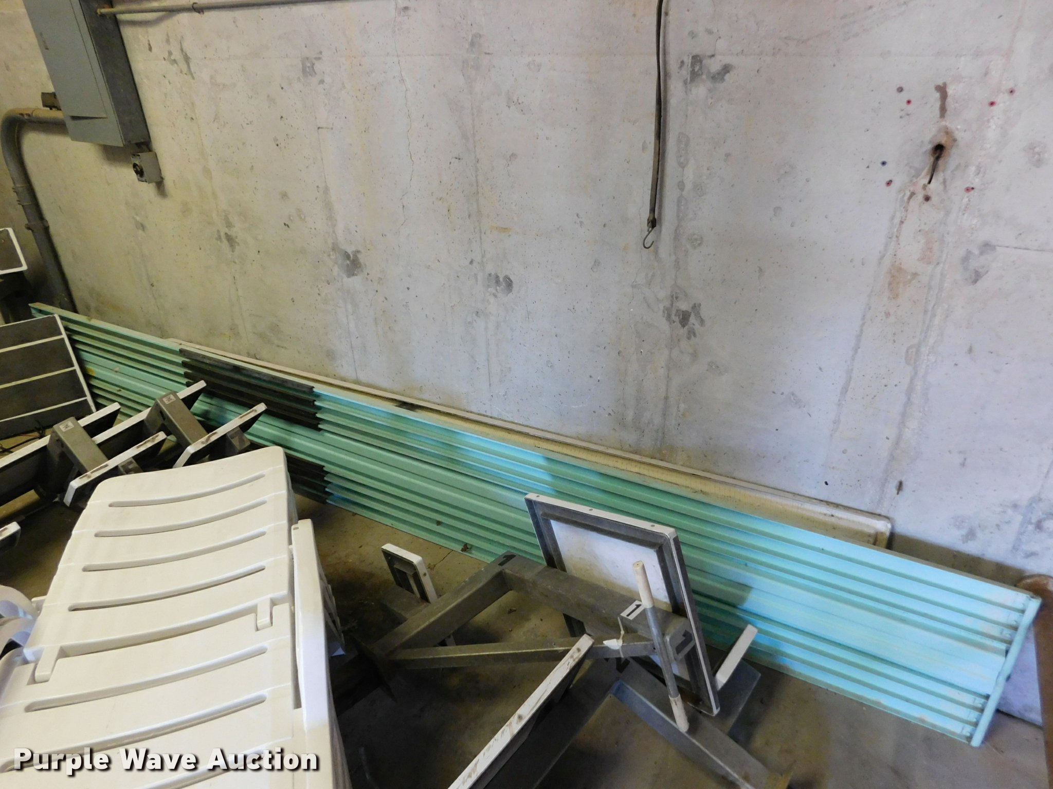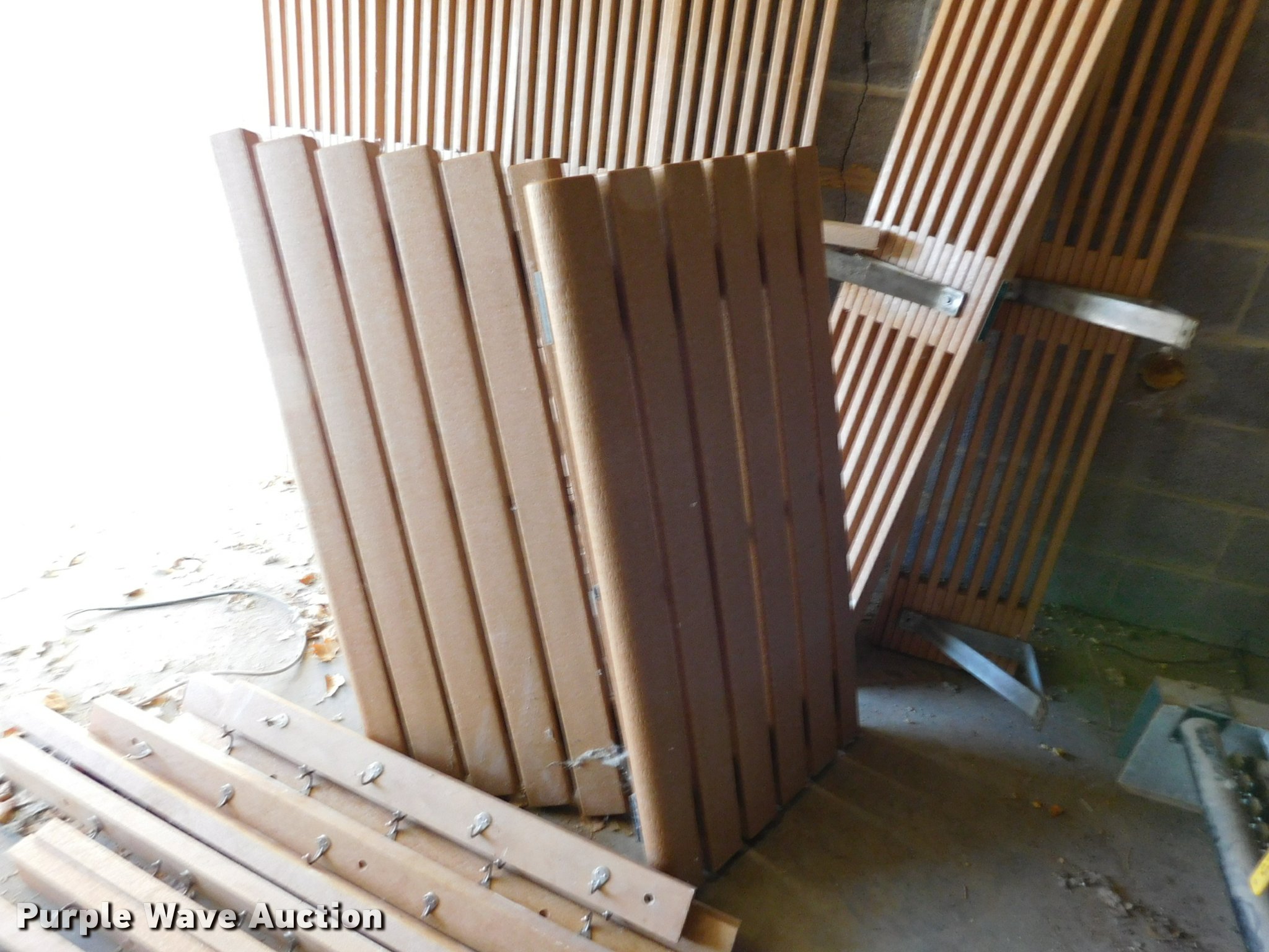 Purple Wave is selling a used Building Materials in Kansas. This item is a Pool supplies with the following: (6) 6' x 14" benches, (2) 4' x 2' benches, Tow hooks, Approximately six pool chairs, Approximately 17 lounge chairs, (2) diving boards, Pool stairs, (8) competition platforms
