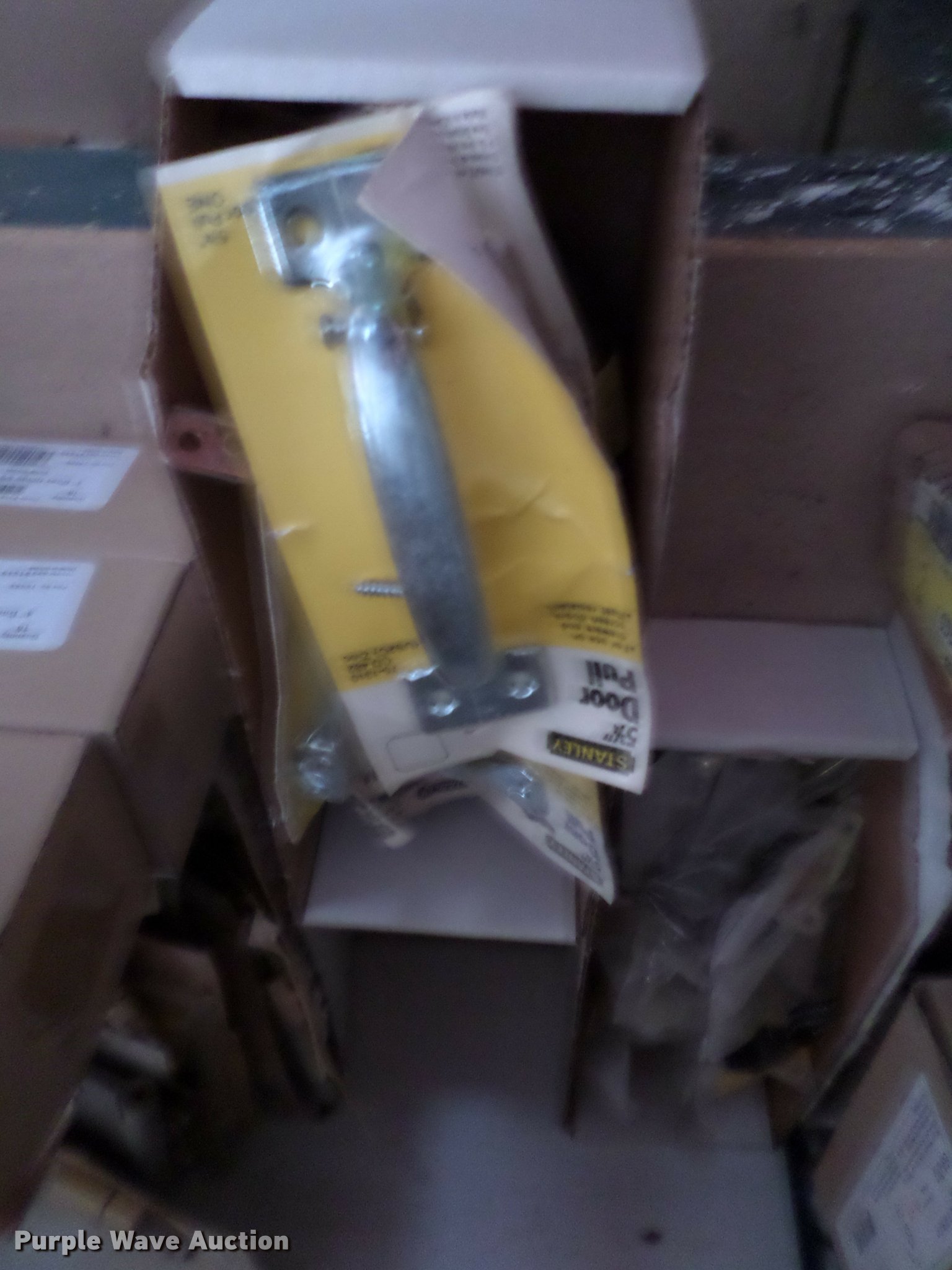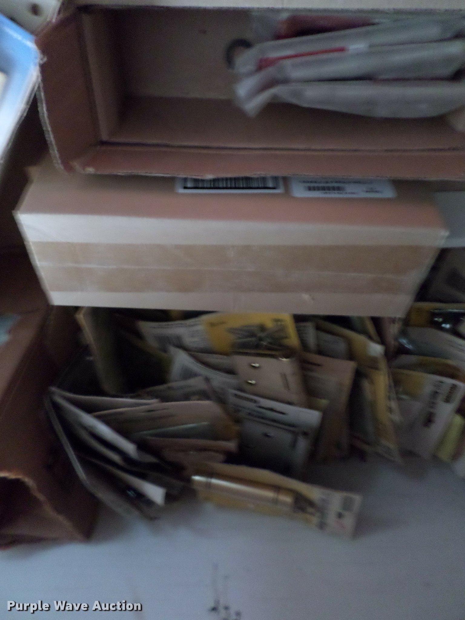 Purple Wave is selling a used Building Materials in Kansas. This item is a Building materials with the following: Various size door pulls, Approx. 50 door hinges, Various sizes, Approx. 30 door stoppers, Various sizes, Approx. 20 outlet box covers, (10) single switch wall plates, (20) double switch wall plates, (9) vent outlet plate covers, (2) doors with hardware, White door with frame, (4) boxes of PVC piping, Unused