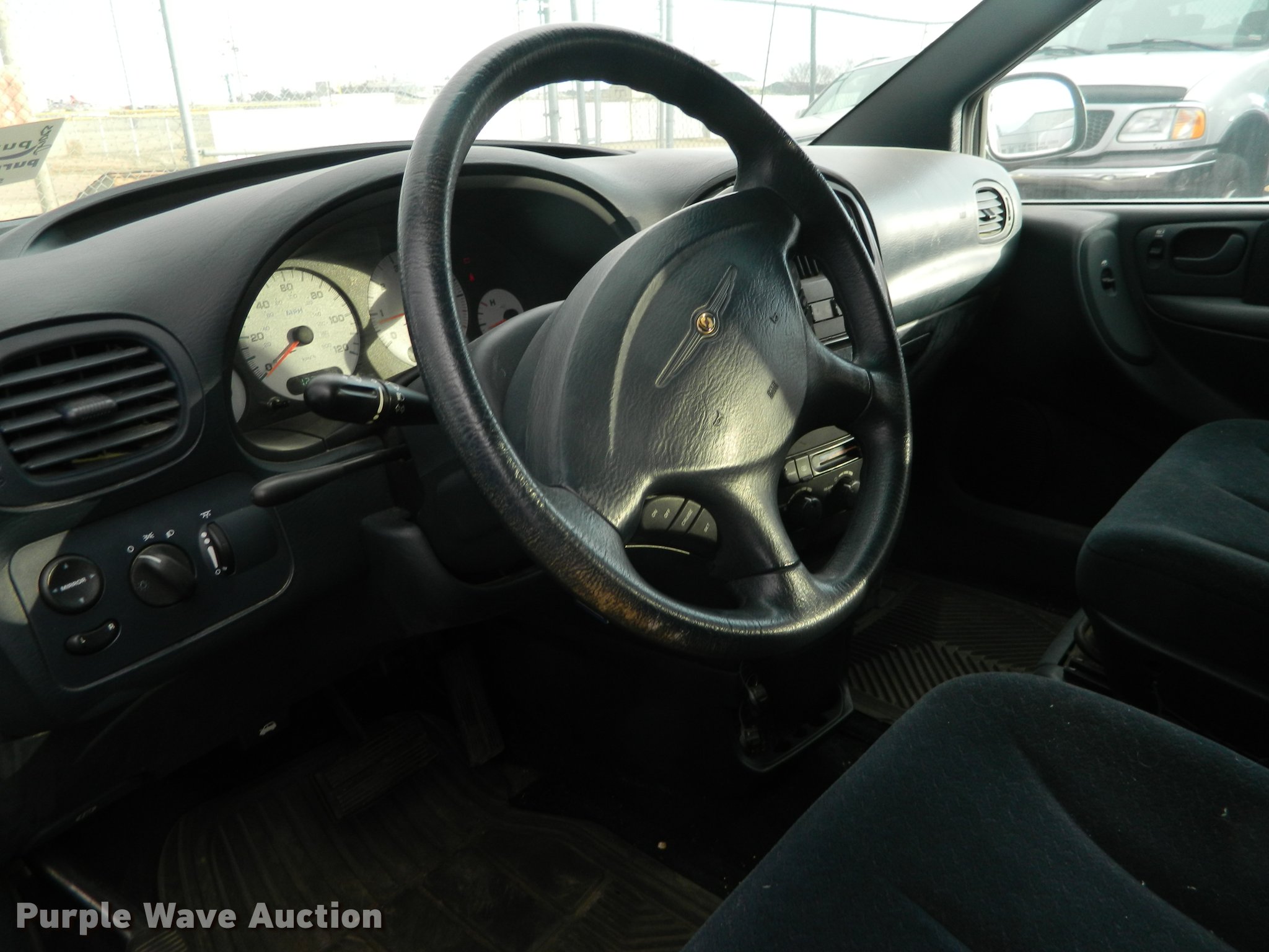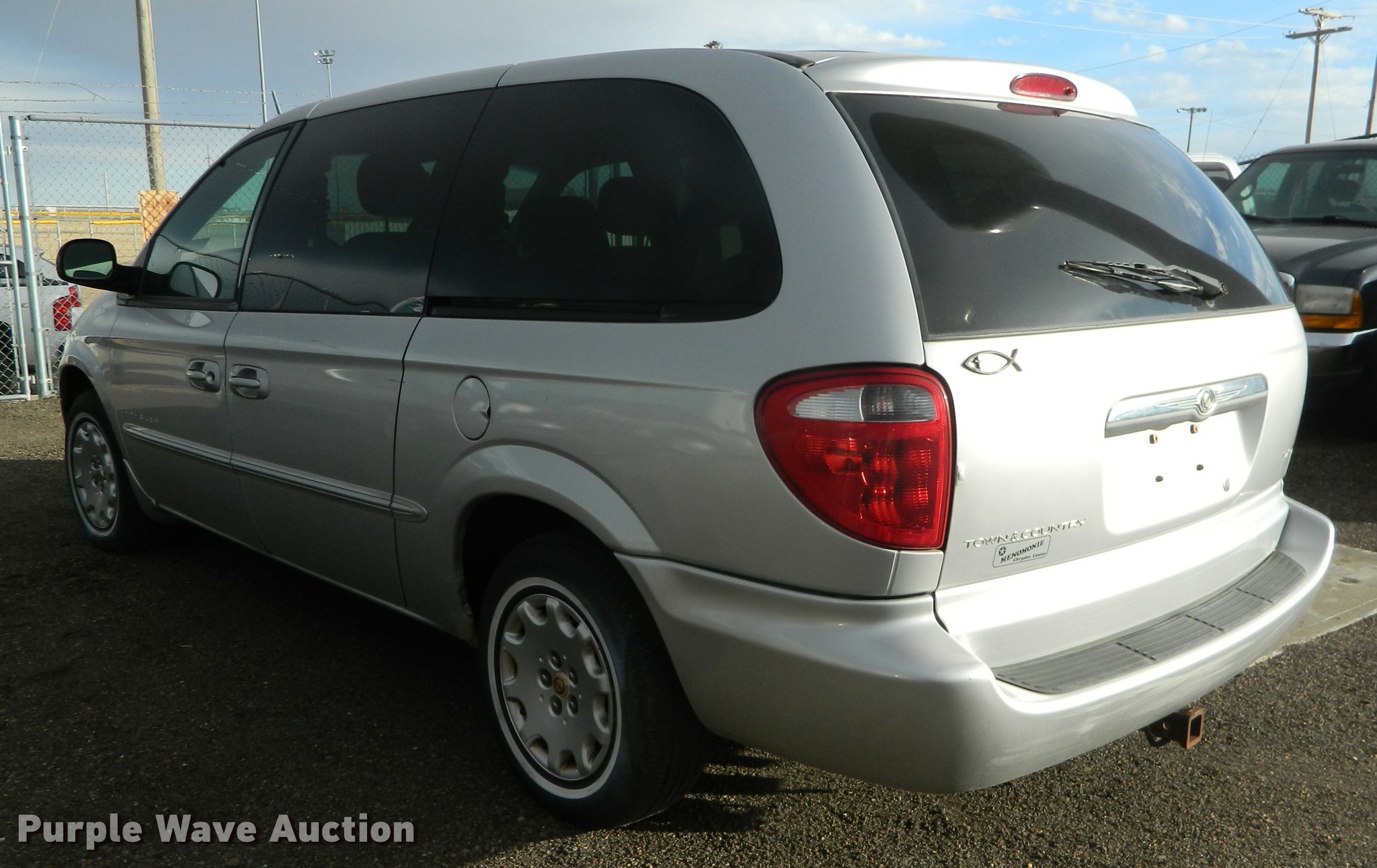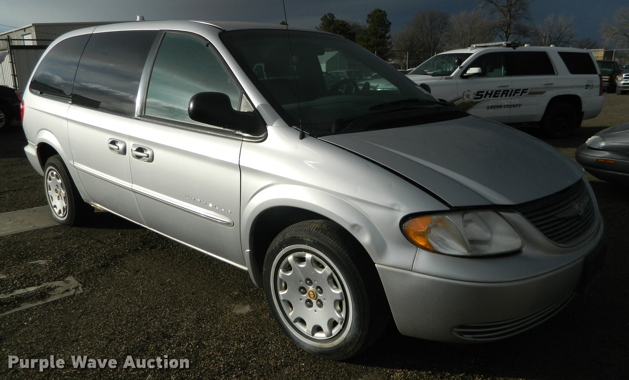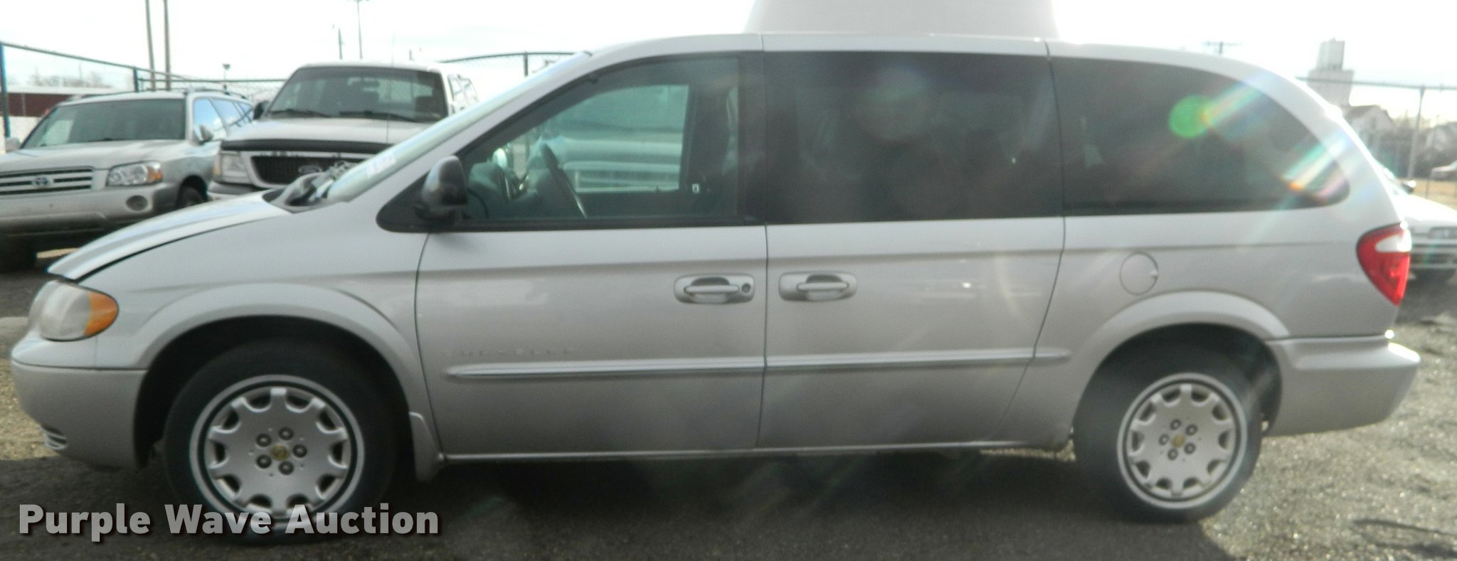 Purple Wave is selling a used Passenger Vehicle in Kansas. This item is a 2001 Chrysler Town & Country van with the following: 127,133 miles on odometer, 3.3L V6 OHV 12V FFV gas engine, Automatic transmission, AC and heat, Tilt, Cruise, AM/FM/CD/cassette, Power windows, locks, mirrors, and seat, Cloth interior, Receiver hitch, 215/70R15 tires, Hail damage, Rust, Weak battery, Unknown operating condition