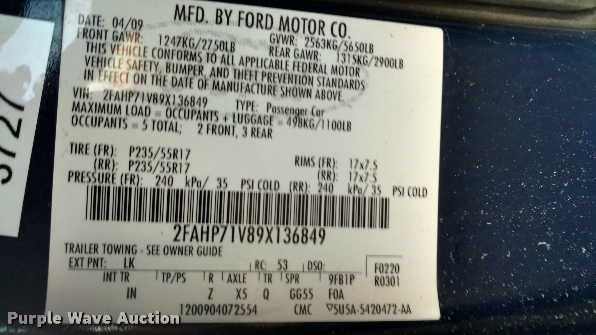 Purple Wave is selling a used Passenger Vehicle in Kansas. This item is a 2009 Ford Crown Victoria Police Interceptor with the following: 113,104 miles on odometer, 4.6L V8 SOHC 16V FFV gas engine, Automatic transmission, AC and heat, Tilt, Cruise, AM/FM/CD, Power windows, locks, mirrors, and seat, Cloth front interior, Vinyl rear interior, 235/55R17 tires, Hail damage, Dead battery, Unit# 3727