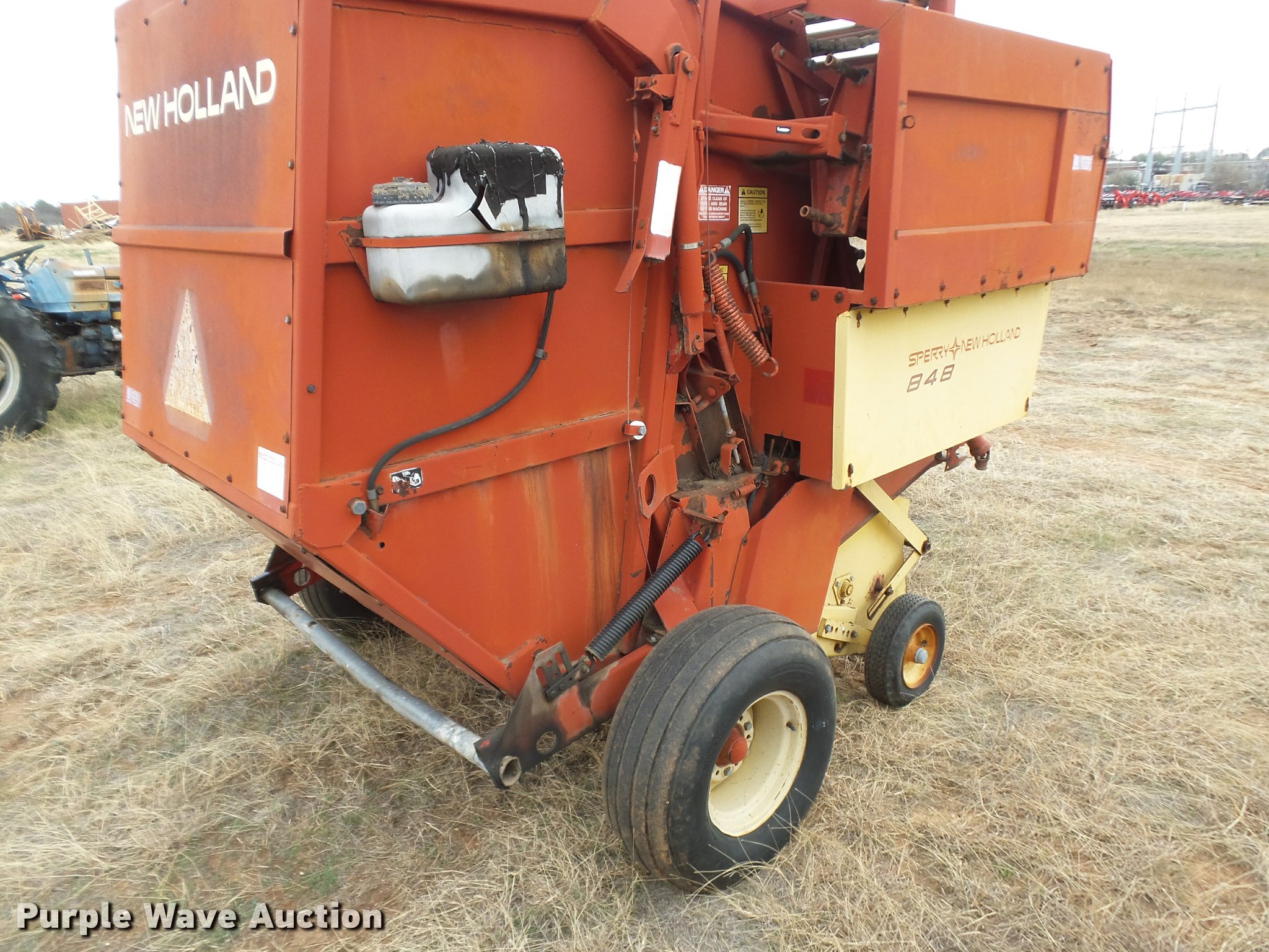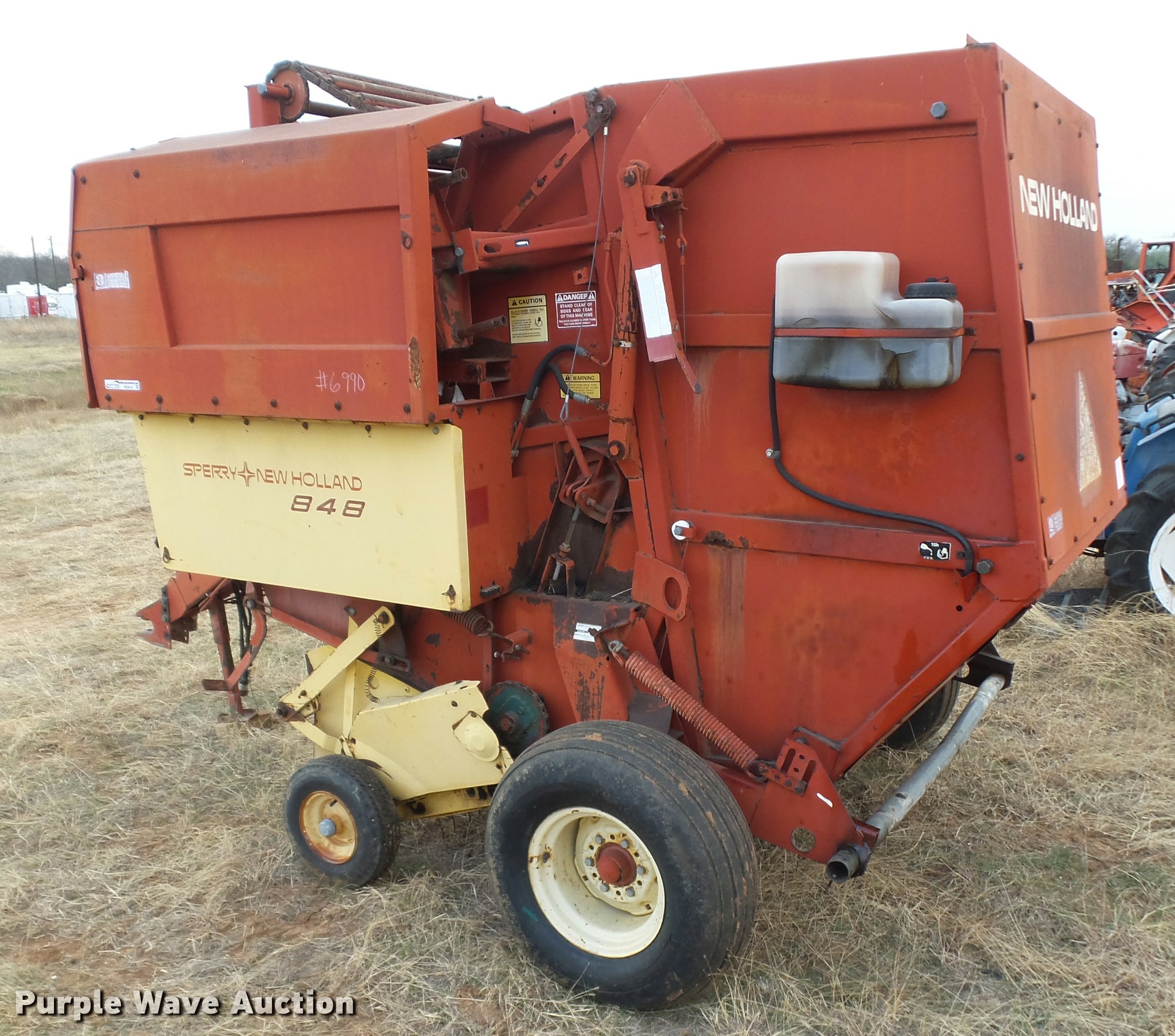 Purple Wave is selling a used Round Baler in Texas. This item is a 1985 New Holland 848 round baler with the following: 4'x5' bale capacity, Twine tie, 540 PTO, Pin hitch, 11.00-14 tires, No monitor, Serial 708291
