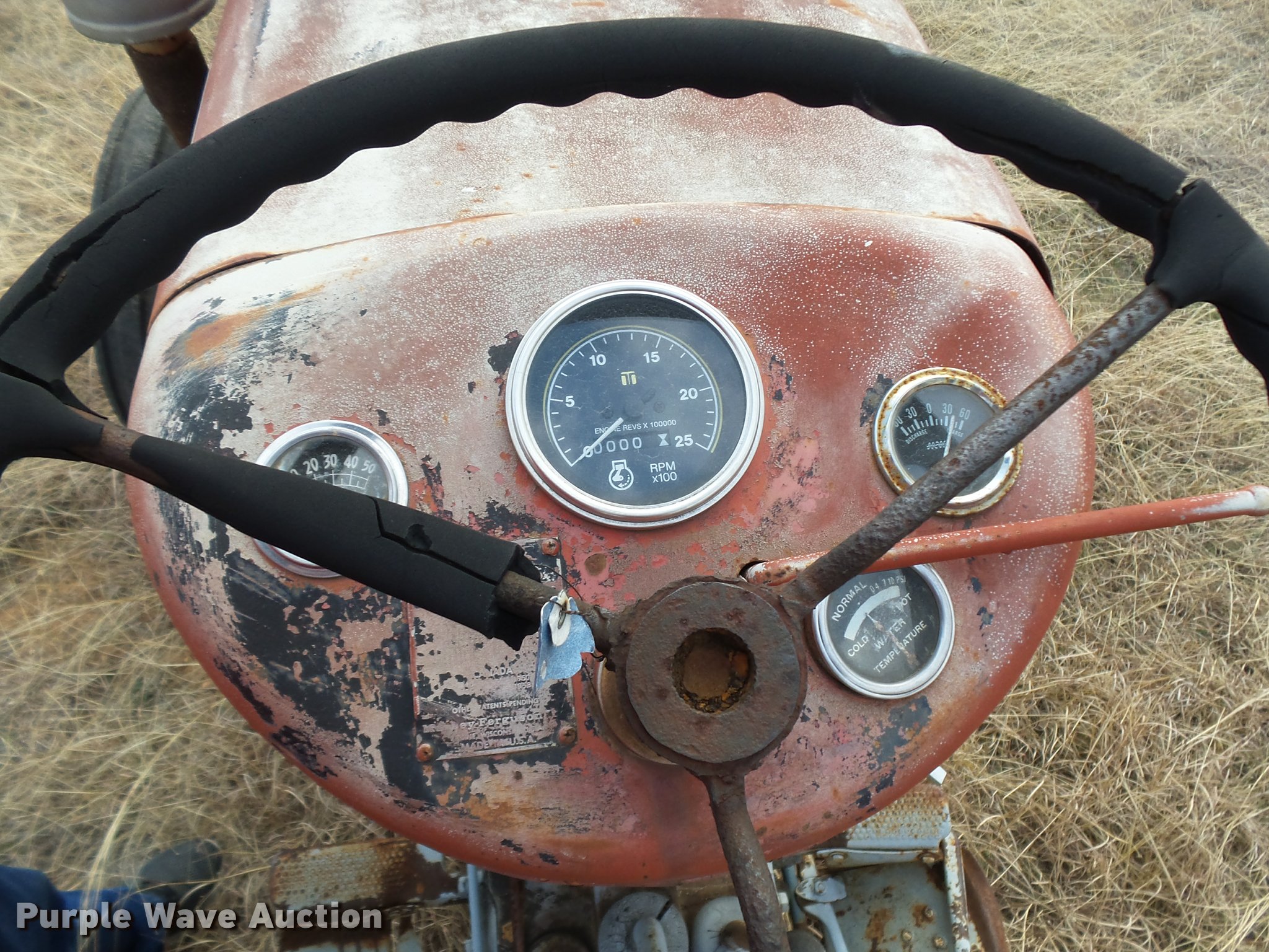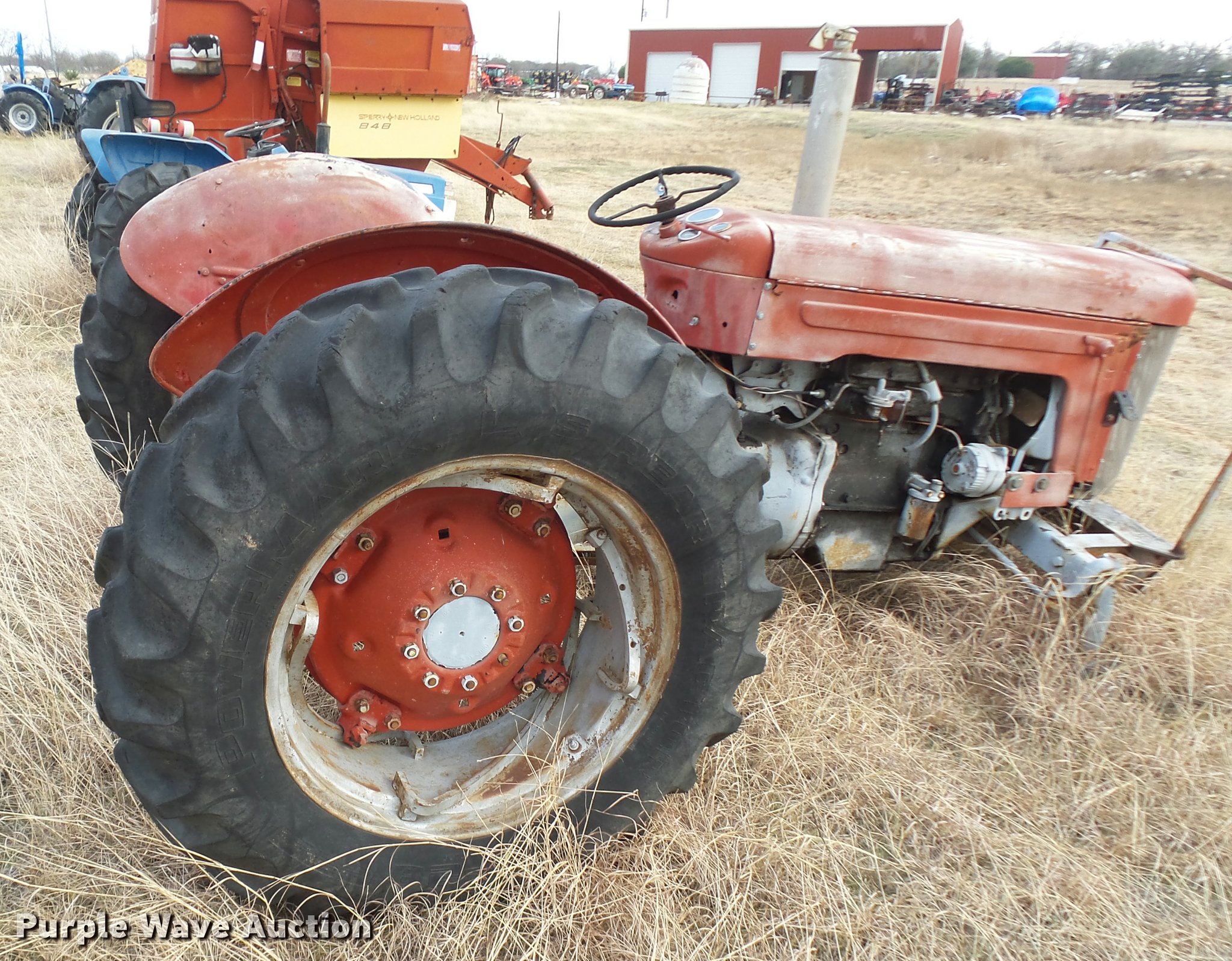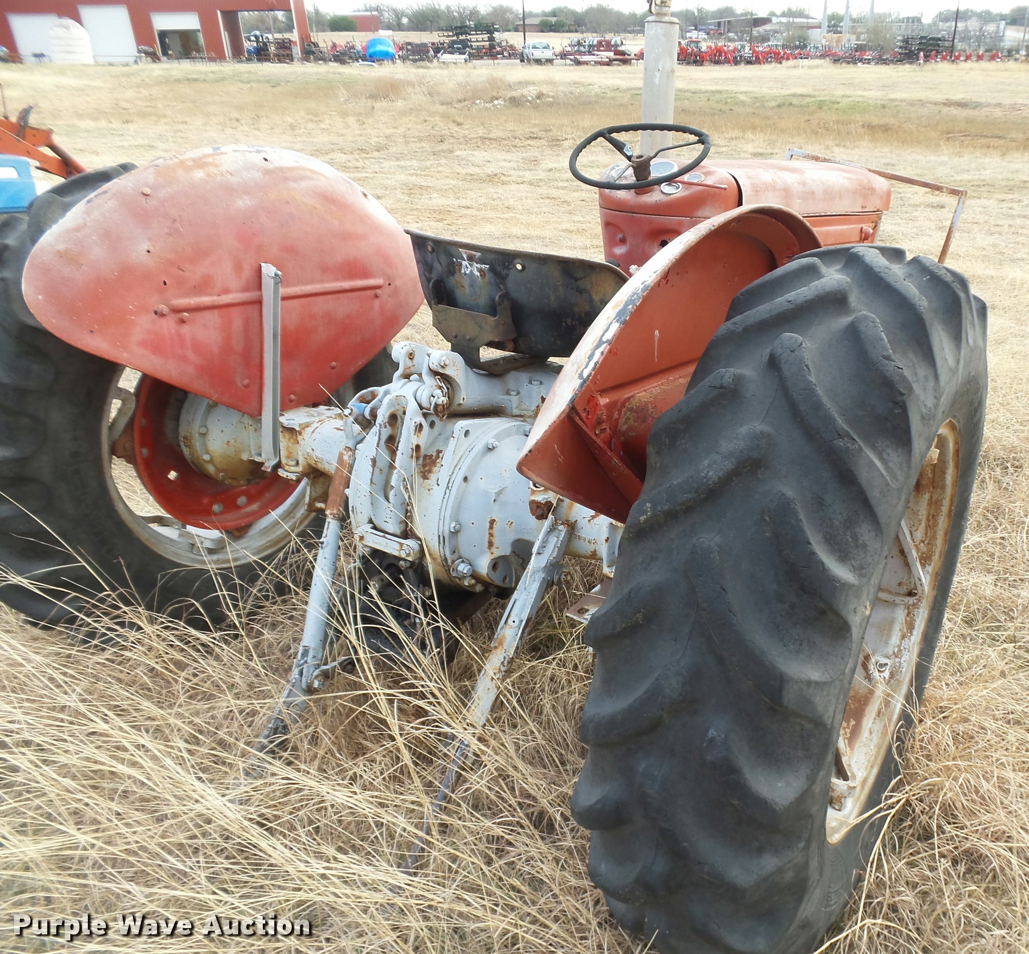 Purple Wave is selling a used Tractor in Texas. This item is a Massey-Ferguson tractor with the following: Three point, 7.50-16 front tire, 13.6-28 rear tires, One tire missing, Non-operational unit