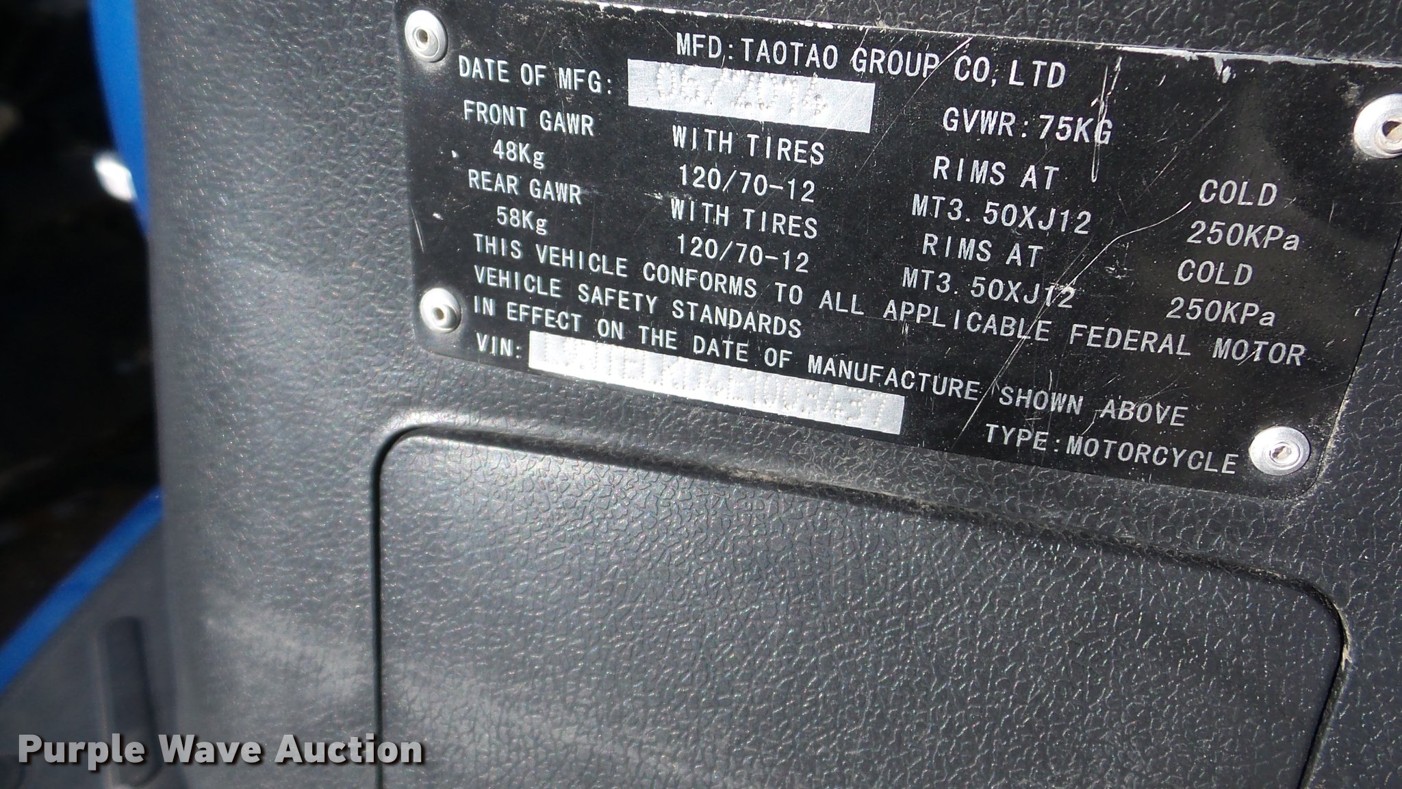 Purple Wave is selling a used Motorcycle in Kansas. This item is a 2014 Tao Tao moped with the following: 6,097 miles on odometer, Gas engine, Automatic transmission, 130/70-12 tires, Case# 16C524004