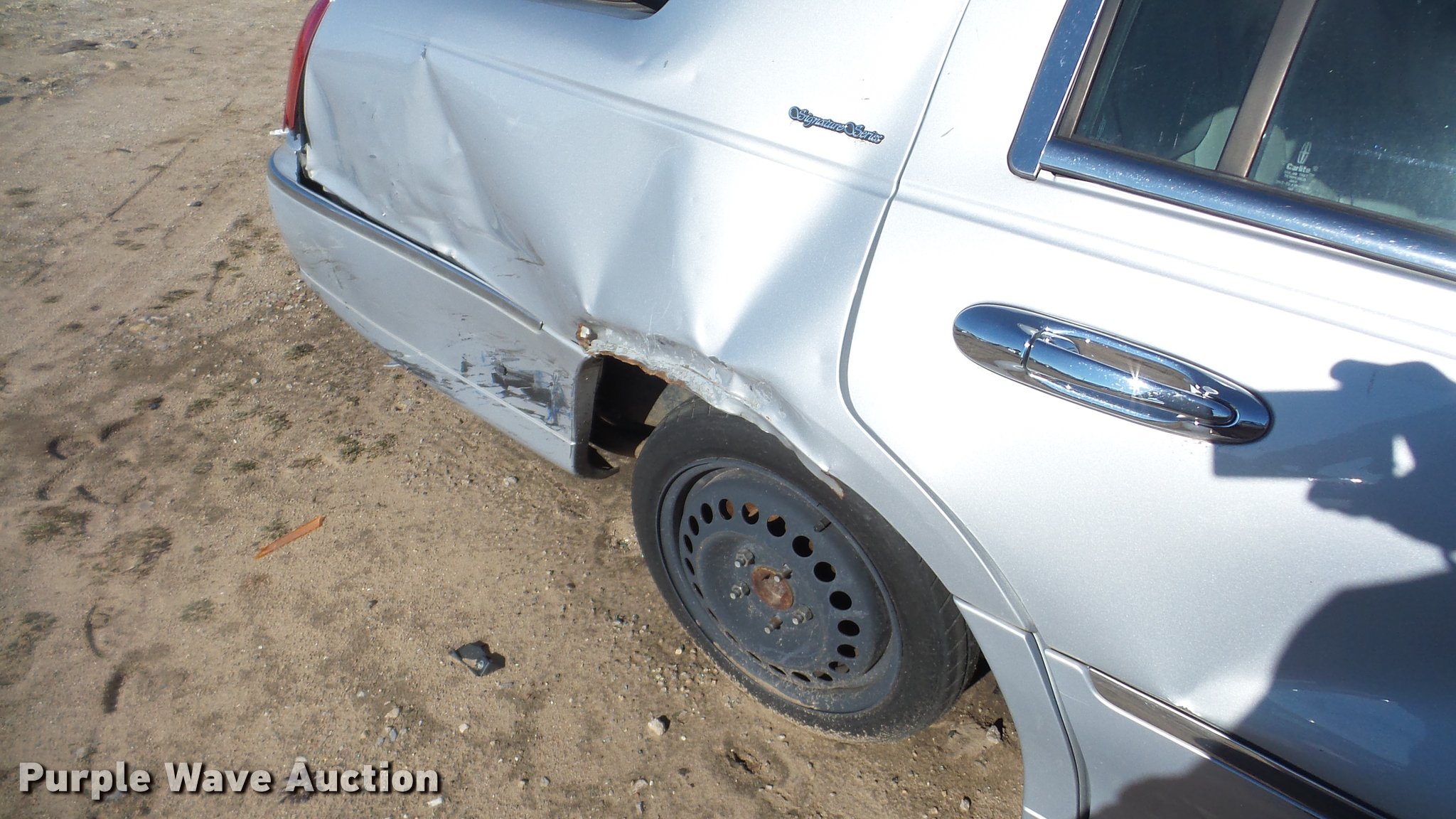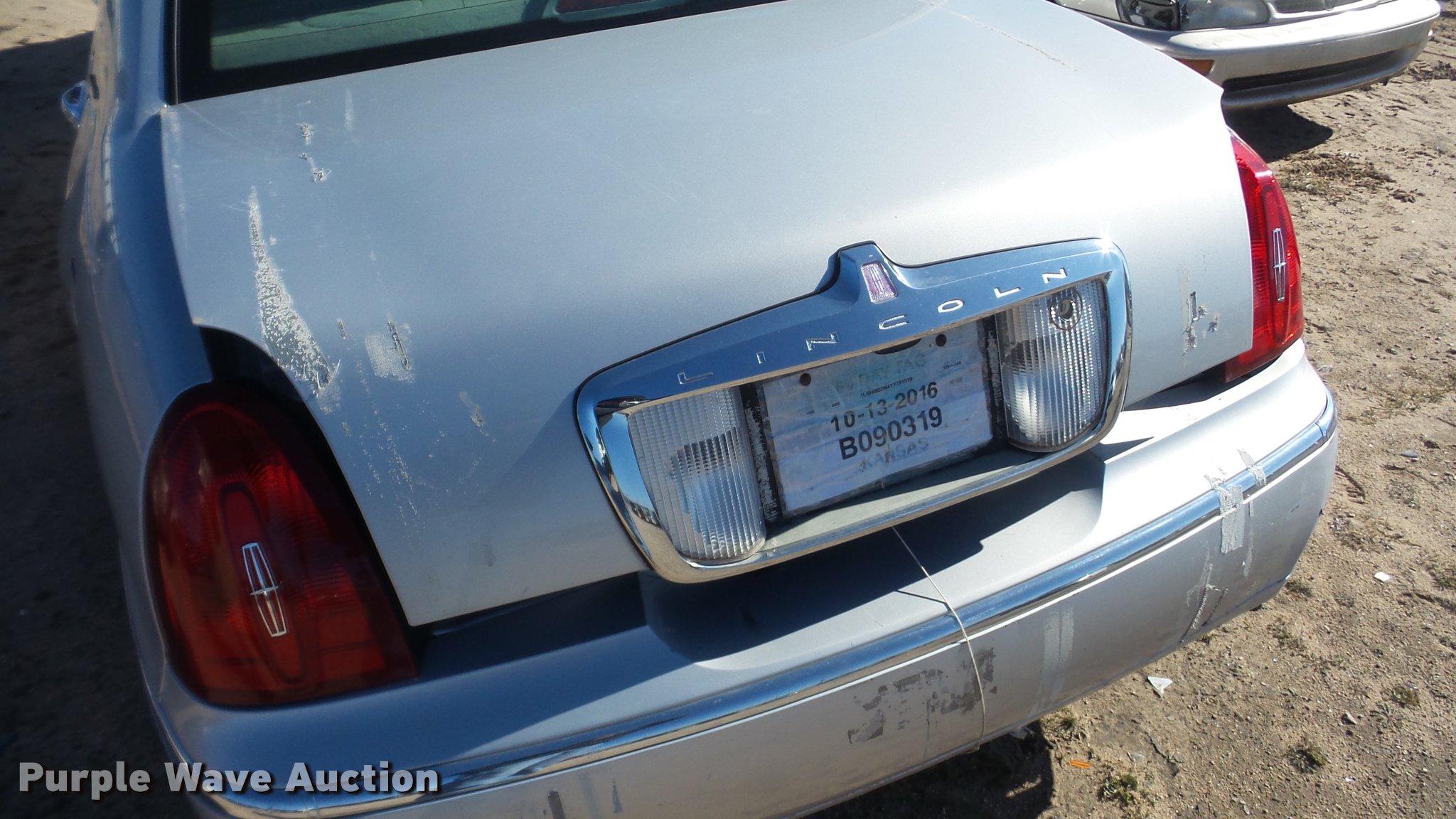 Purple Wave is selling a used Passenger Vehicle in Kansas. This item is a 2000 Lincoln Town Car Signature with the following: Unknown miles on odometer, 4.6L V8 SOHC 16V gas engine, Automatic transmission, AC and heat, Tilt, Cruise, AM/FM/cassette, Power windows, locks, and mirrors, Leather interior, 225/60R16 tires, One wheel missing, Hood will not open, Case# 16C069341