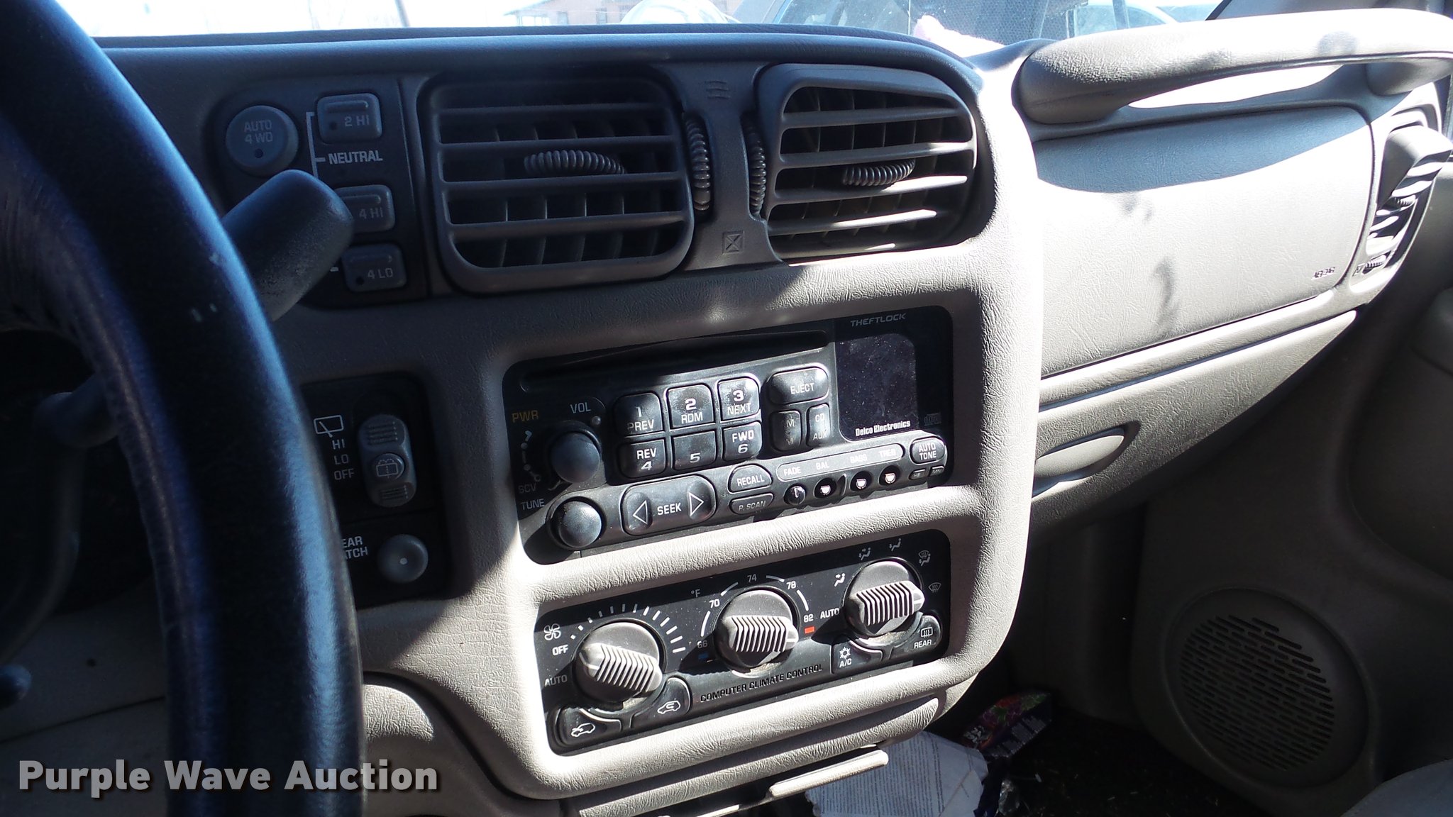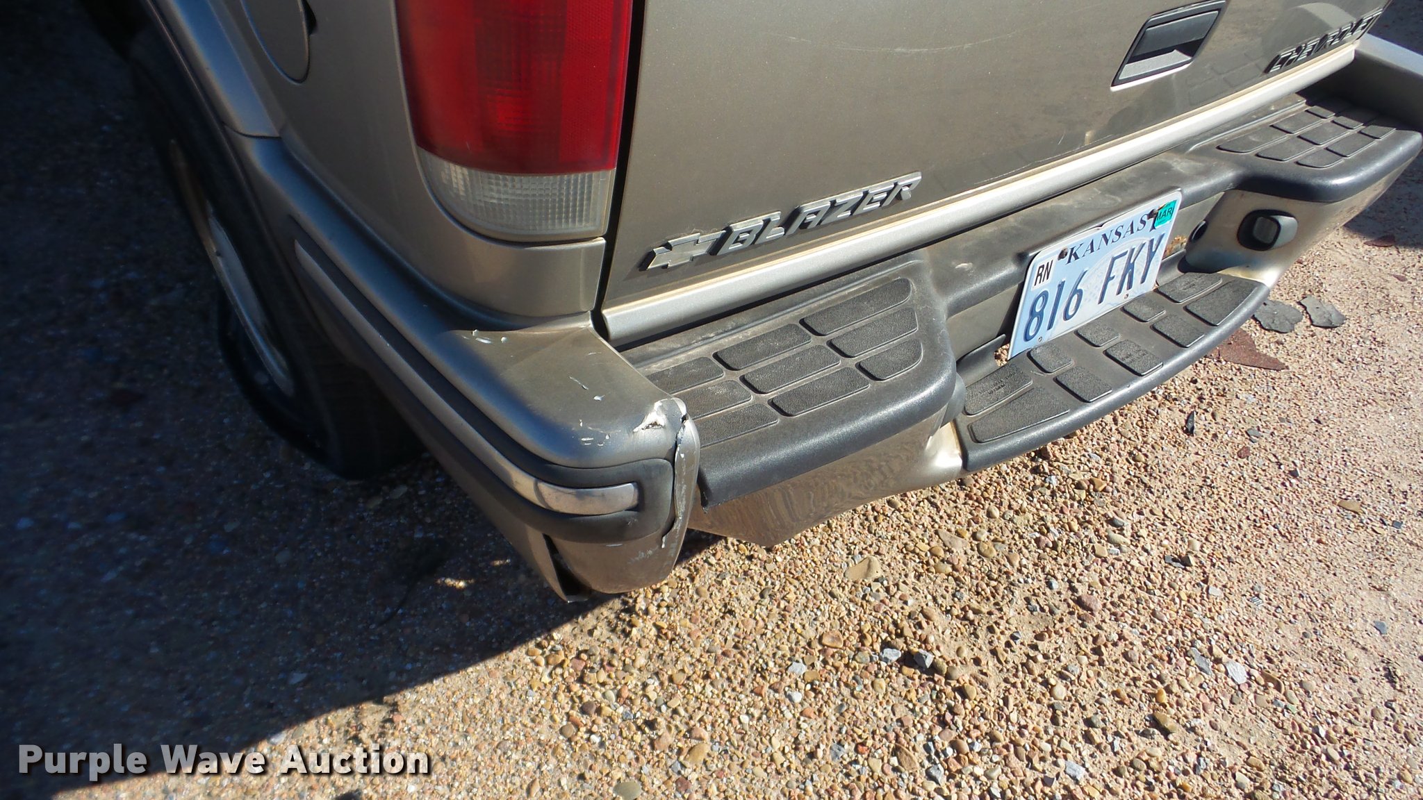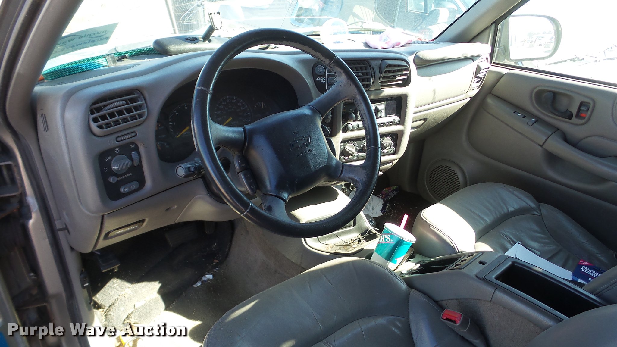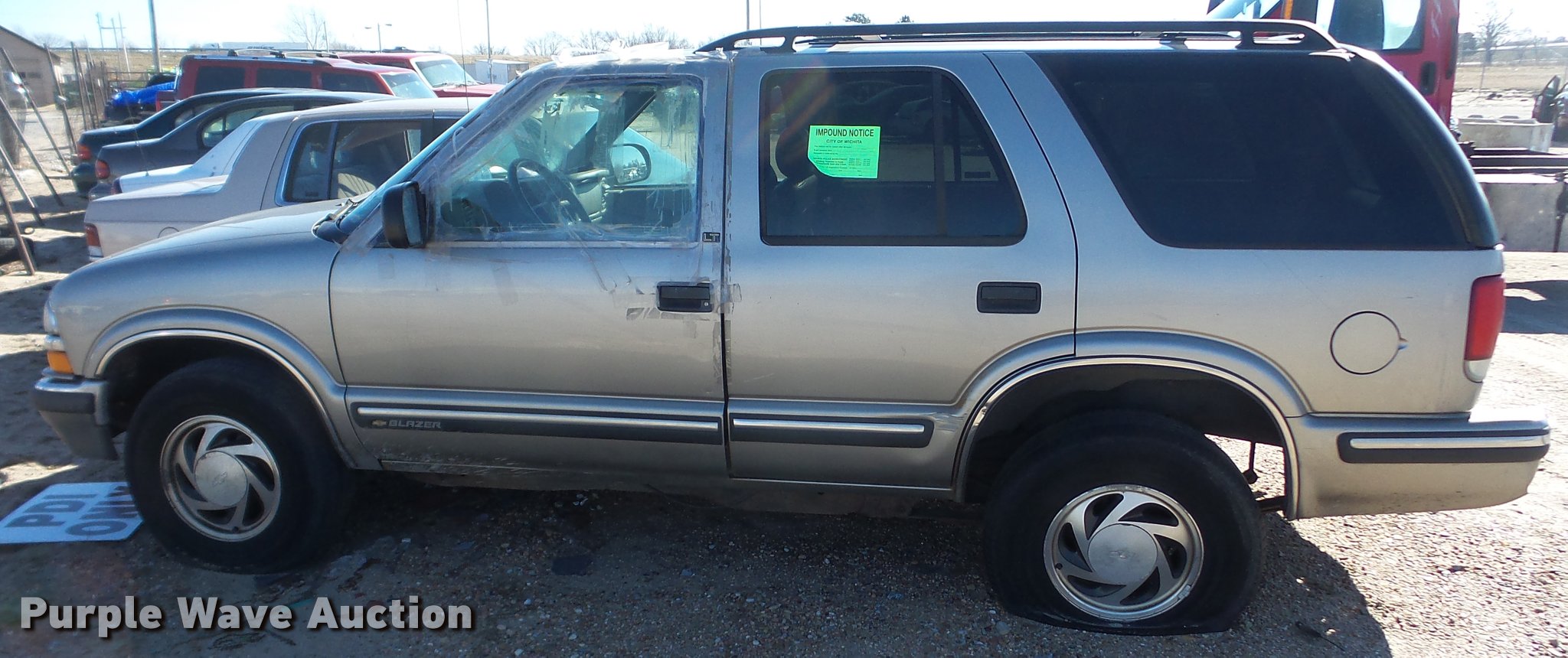 Purple Wave is selling a used Passenger Vehicle in Kansas. This item is a 1999 Chevrolet Blazer SUV with the following: Unknown miles on odometer, 4.3L V6 OHV 12V gas engine, Automatic transmission, Four wheel drive, AC and heat, Tilt, Cruise, AM/FM/CD, Power windows, locks, and mirrors, Vinyl interior, Sunroof, 235/75R15 tires, Broken window, Cracked windshield, Case# 16C72944