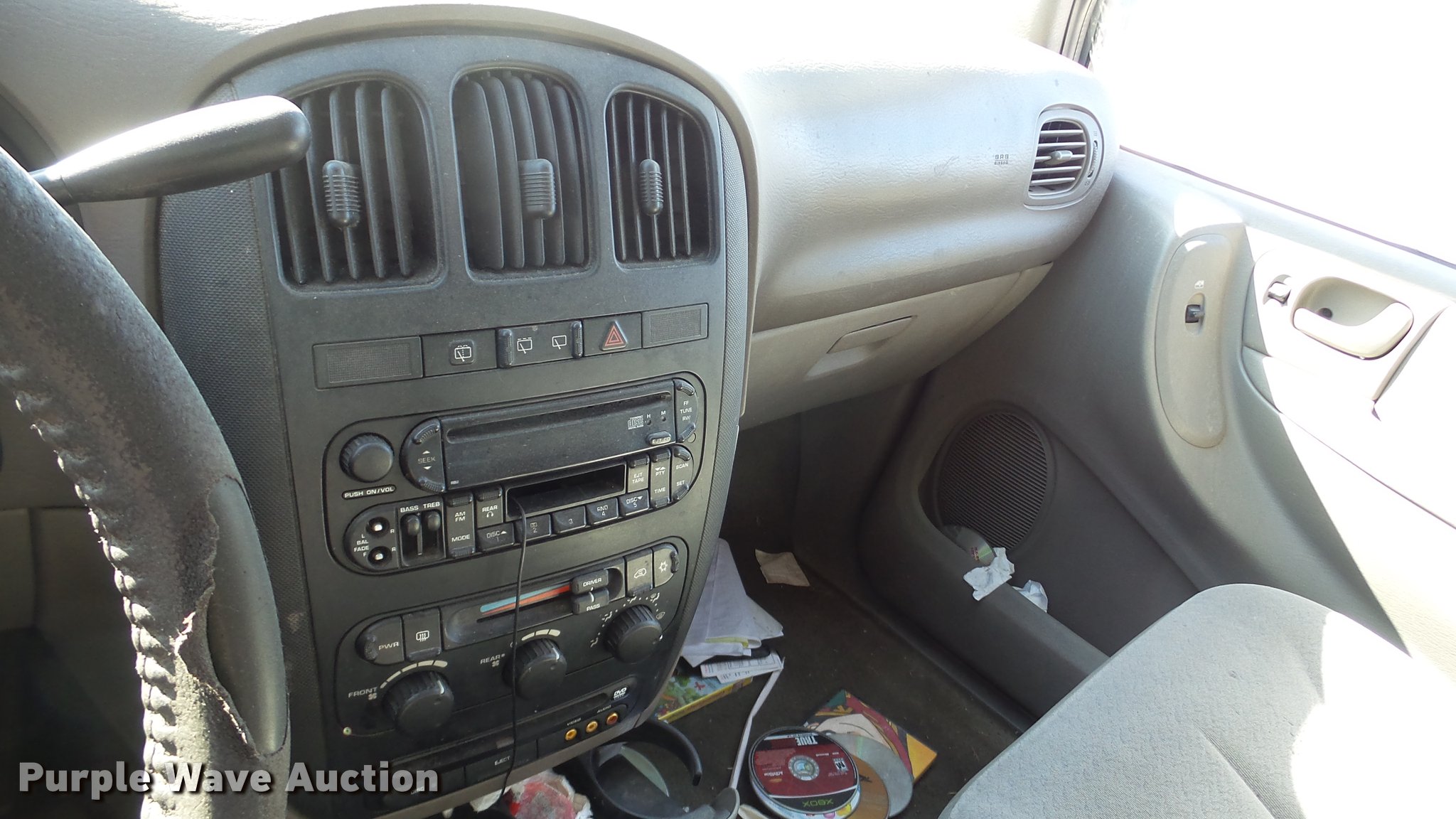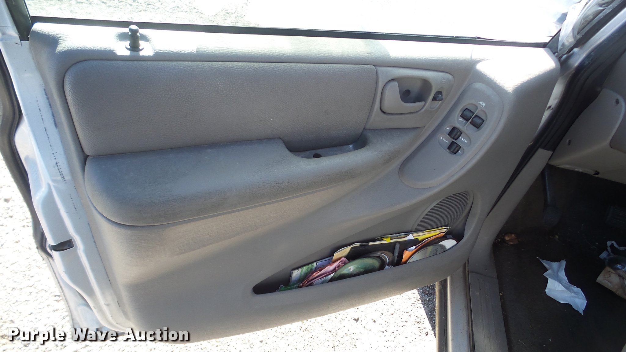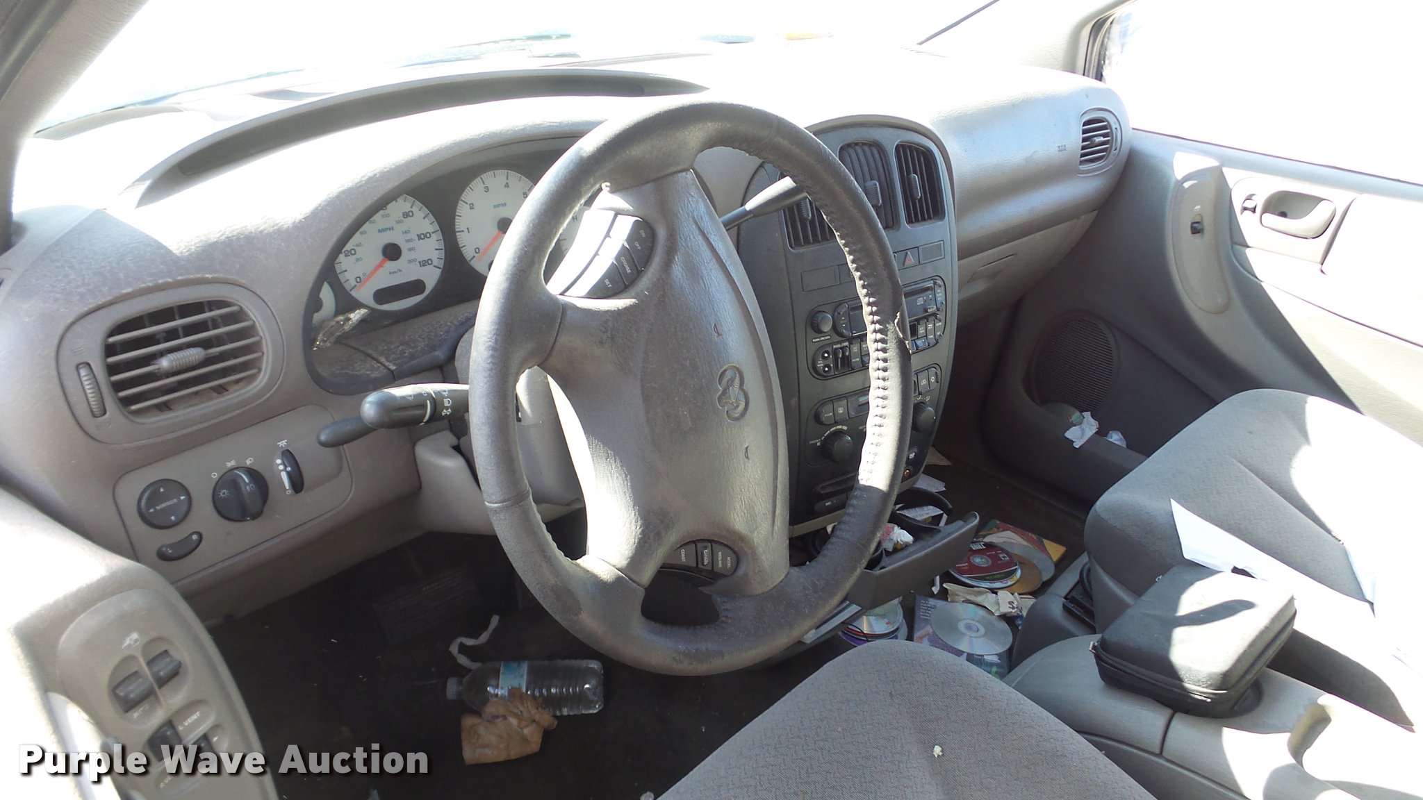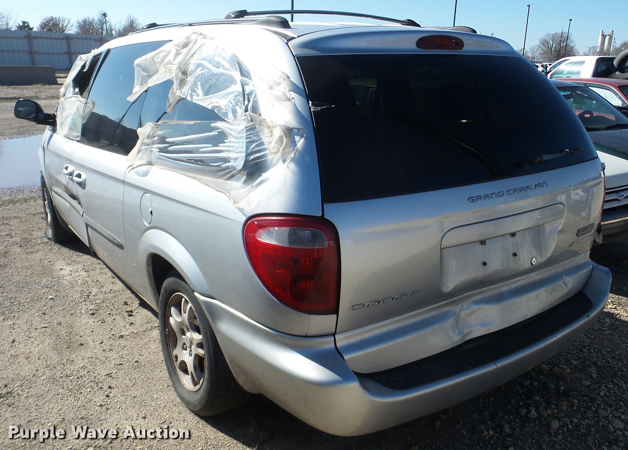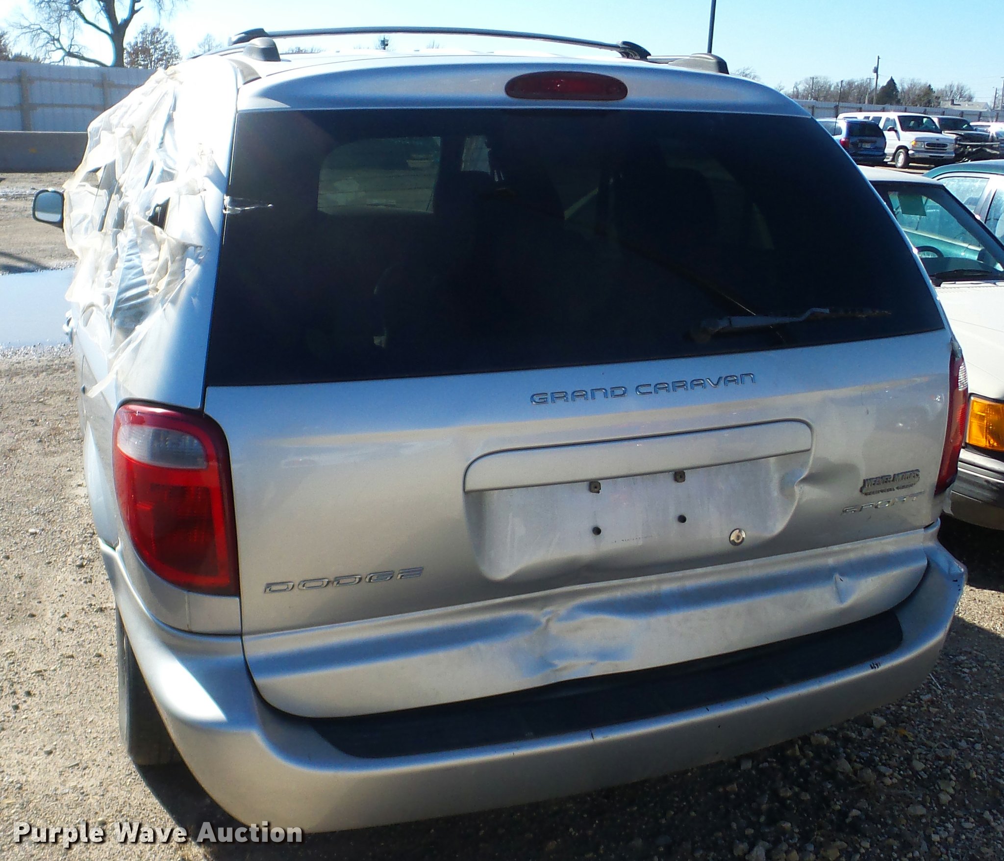 Purple Wave is selling a used Passenger Vehicle in Kansas. This item is a 2003 Dodge Grand Caravan SUV with the following: Unknown miles on odometer, 3.8L V6 OHV 12V gas engine, Automatic transmission, AC and heat, Tilt, Cruise, AM/FM/CD, Power windows, locks, and mirrors, Cloth interior, 215/65R16 tires, Front end damage, Hood will not open, Case# 16C067943