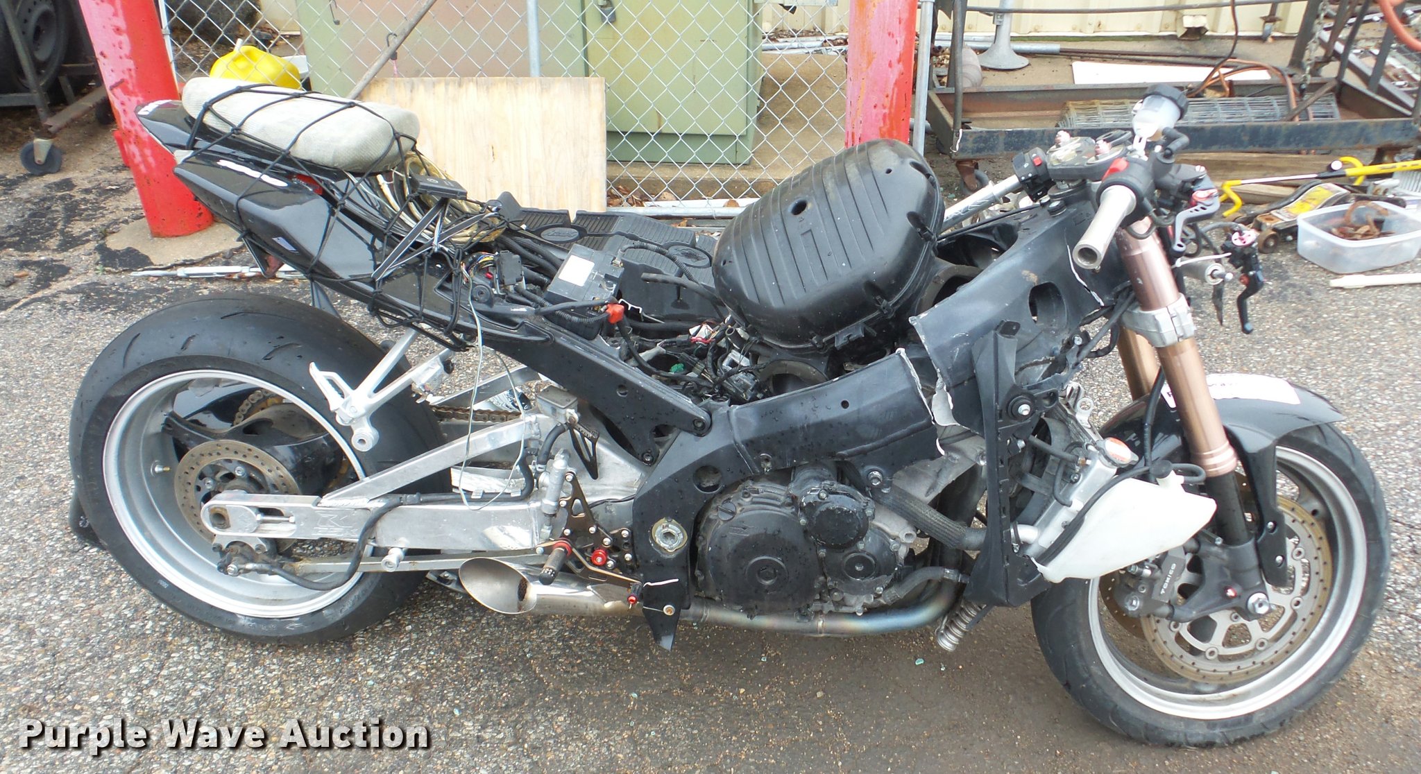Purple Wave is selling a used Motorcycle in Kansas. This item is a 2006 Suzuki GSX-R1000 motorcycle with the following: Unknown miles on odometer, 1,000cc gas engine, Manual transmission, 190/45ZR17 tires, Body damage, Parts missing, Case# 16C062683