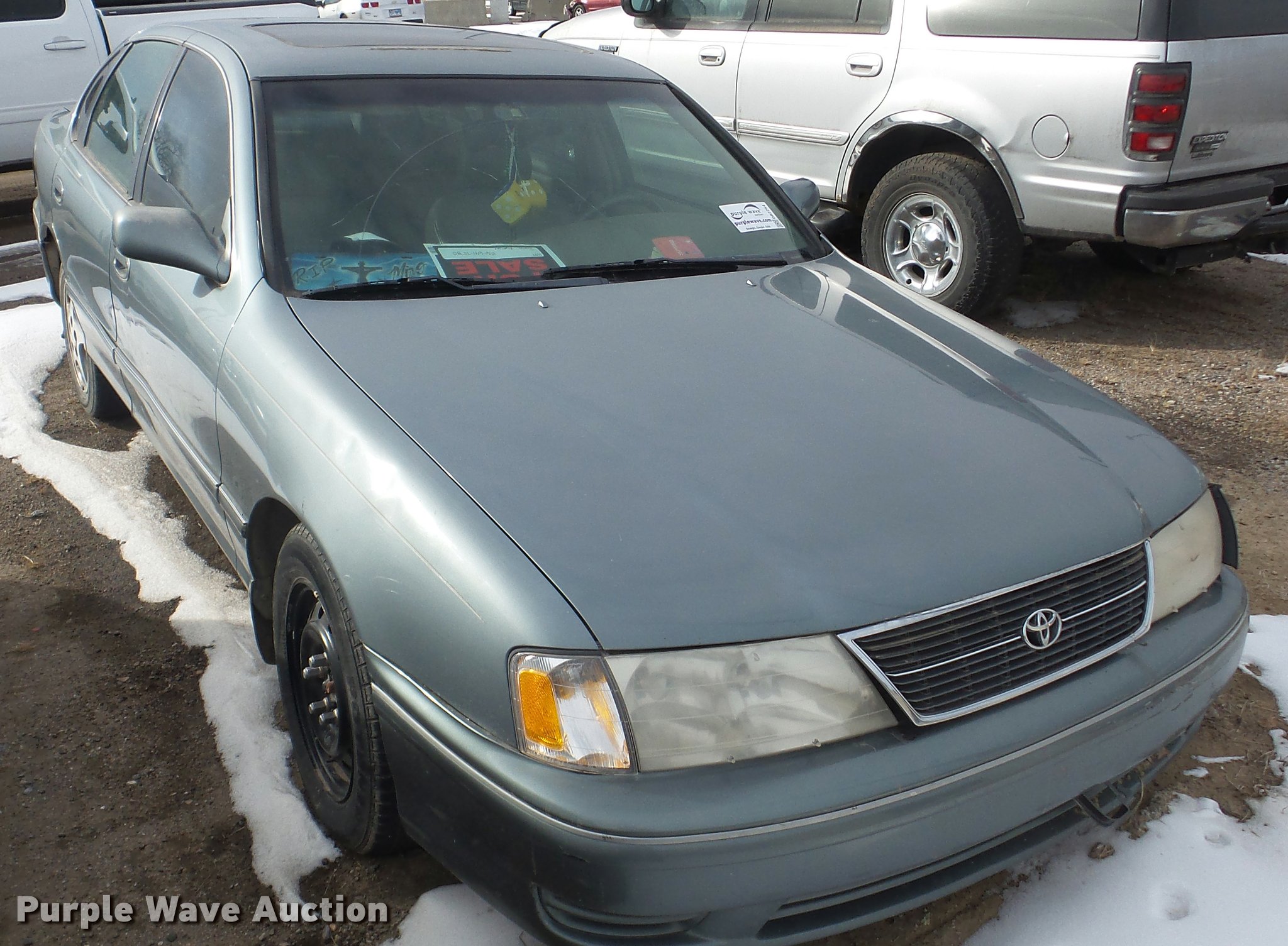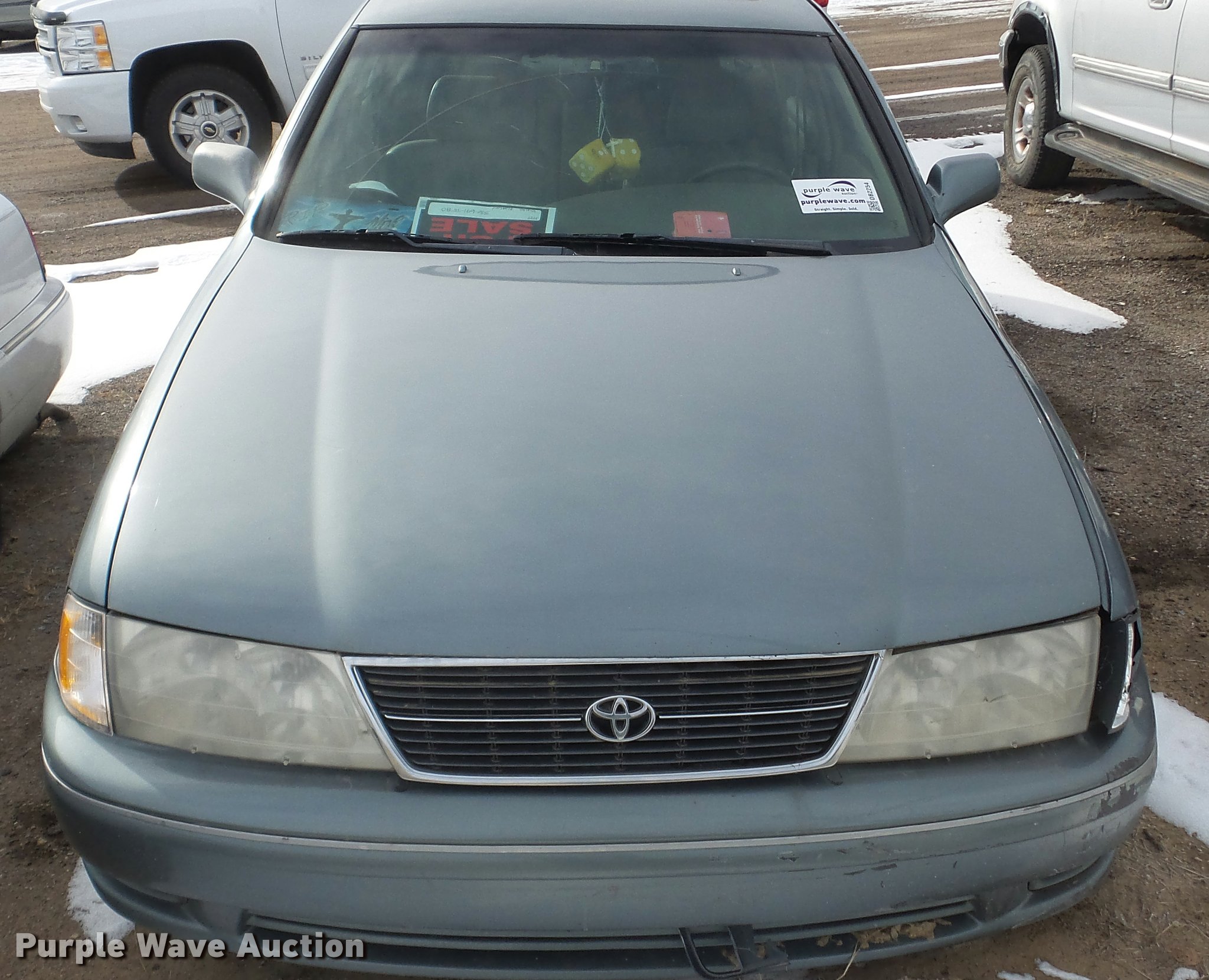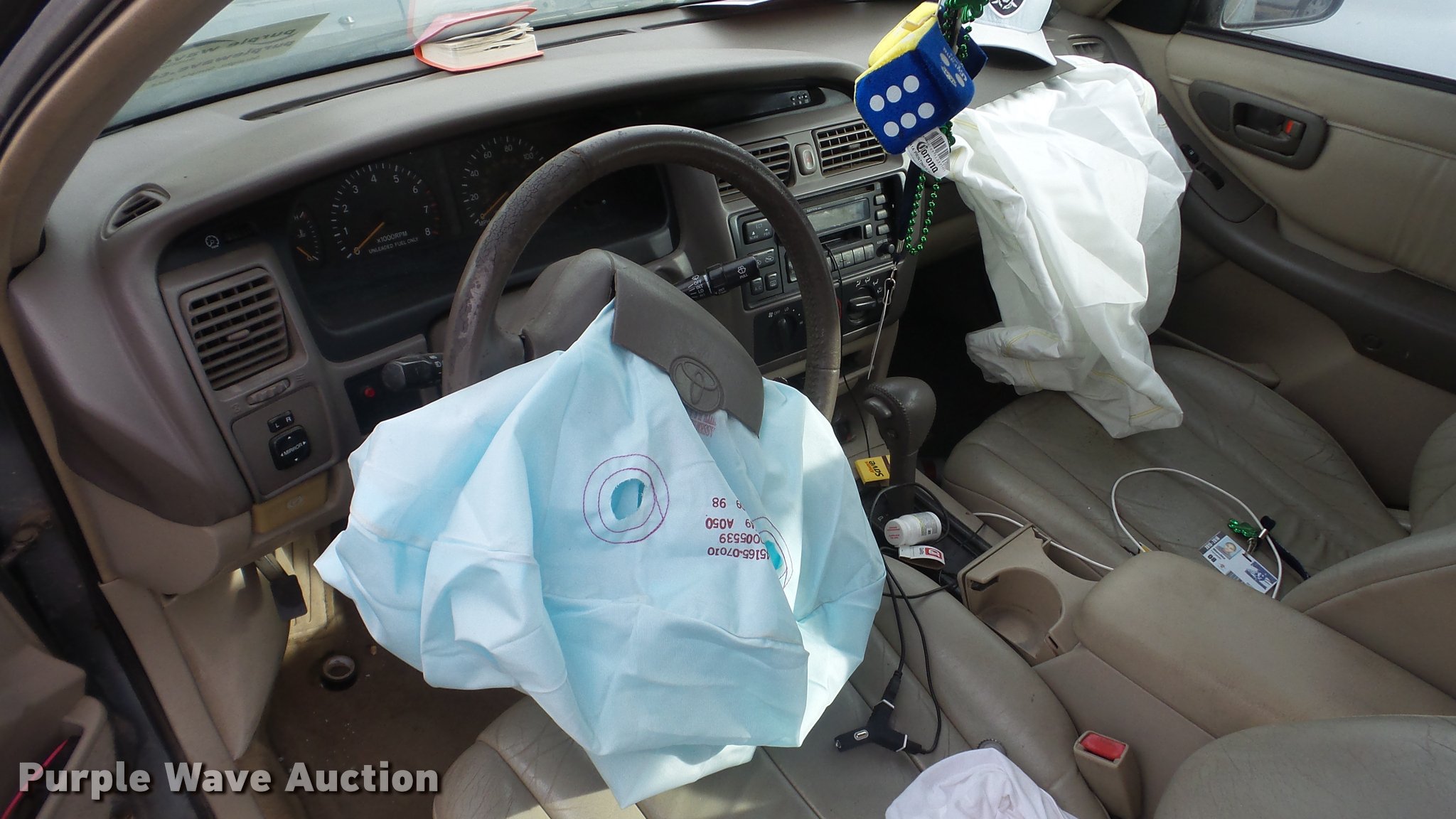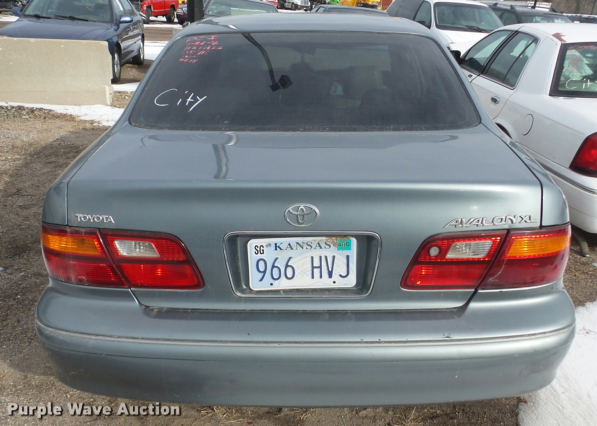 Purple Wave is selling a used Passenger Vehicle in Kansas. This item is a 1999 Toyota Avalon with the following: Unknown miles on odometer, 3.0L V6 SOHC 24V gas engine, Automatic transmission, AC and heat, Tilt, Cruise, AM/FM/cassette, Power windows, locks, and mirrors, Vinyl interior, Sunroof, 205/65R15 tires, Rust, Front end damage, Front driver's side wheel damaged, Air bag deployed, Cracked windshield, Case# 16C067587