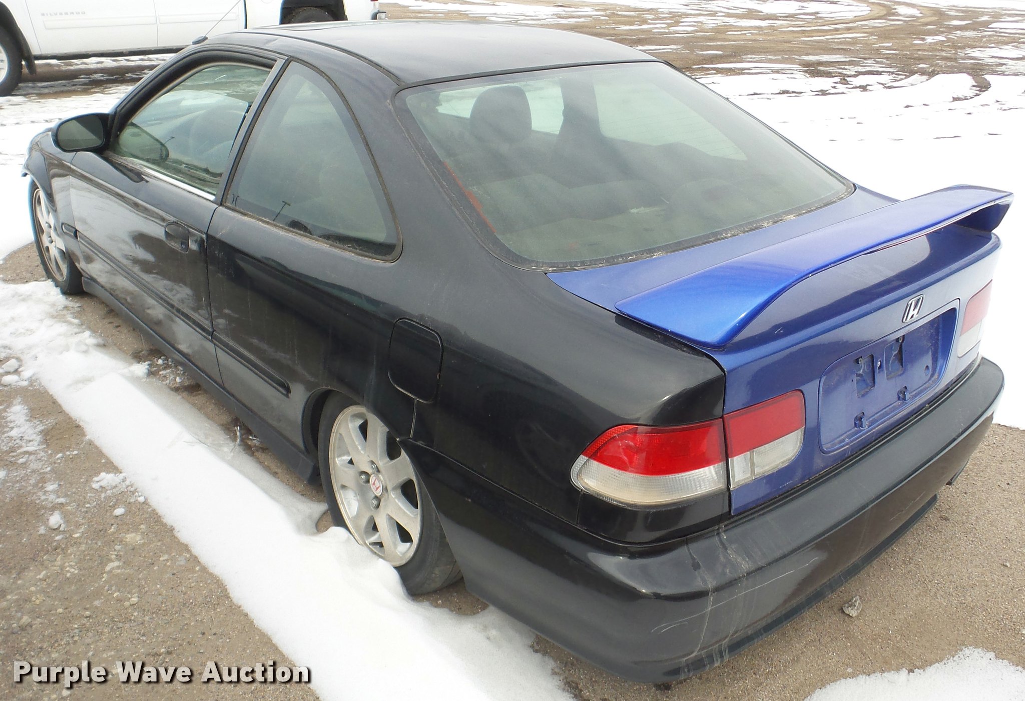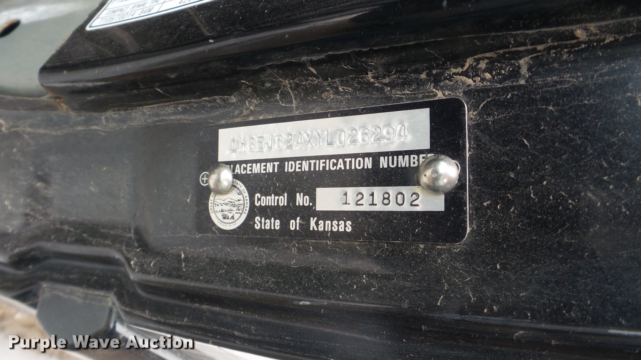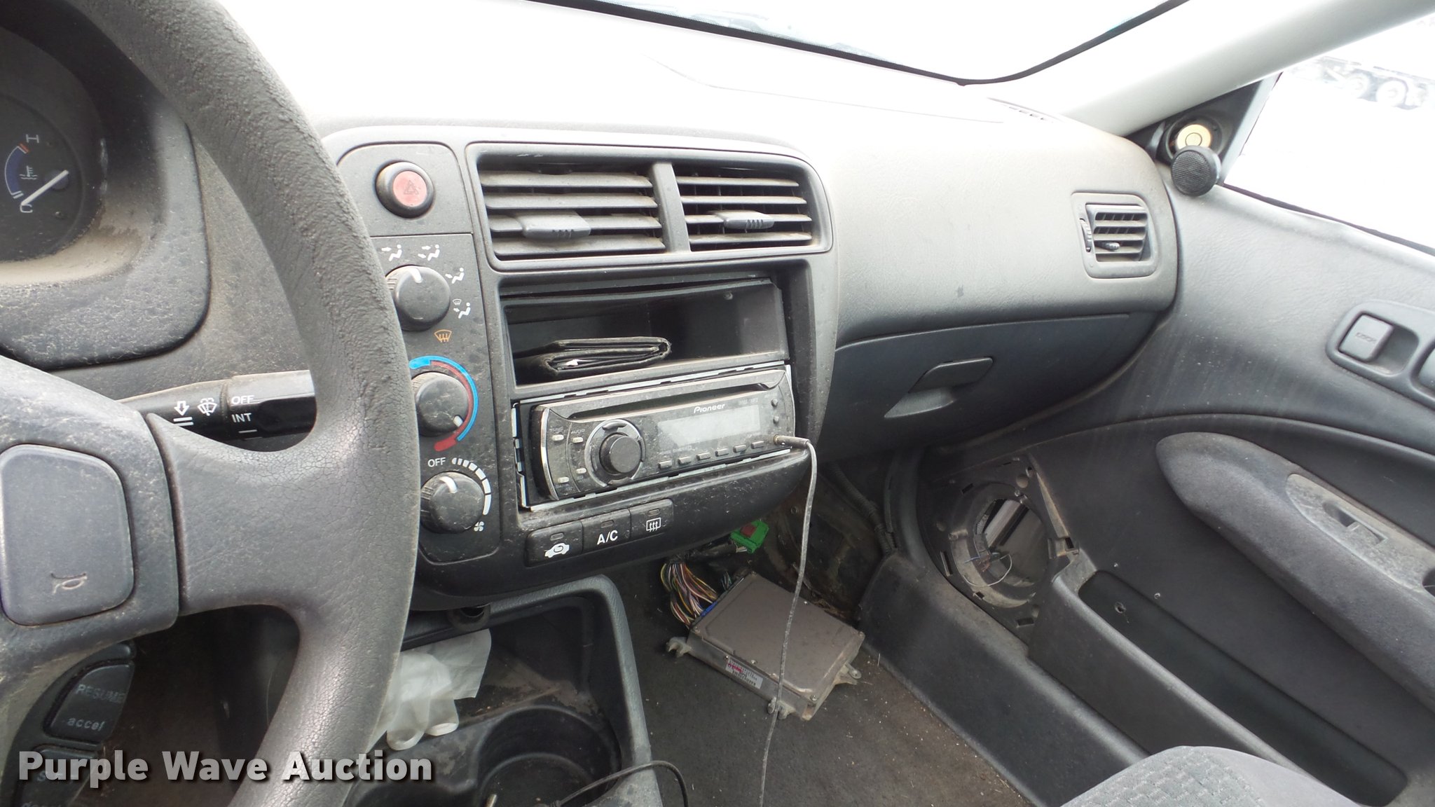 Purple Wave is selling a used Passenger Vehicle in Kansas. This item is a 2000 Honda Civic with the following: 188,668 miles on odometer, 1.6L L4 SOHC 16V gas engine, Five speed manual transmission, AC and heat, AM/FM/CD, Power windows, locks, and mirrors, Cloth interior, Sunroof, 185/55R15 tires, Cracked windshield, Rust, Front bumper missing, Mismatched paint, Hood will not open, Passenger side mirror missing, Case# 16C064535