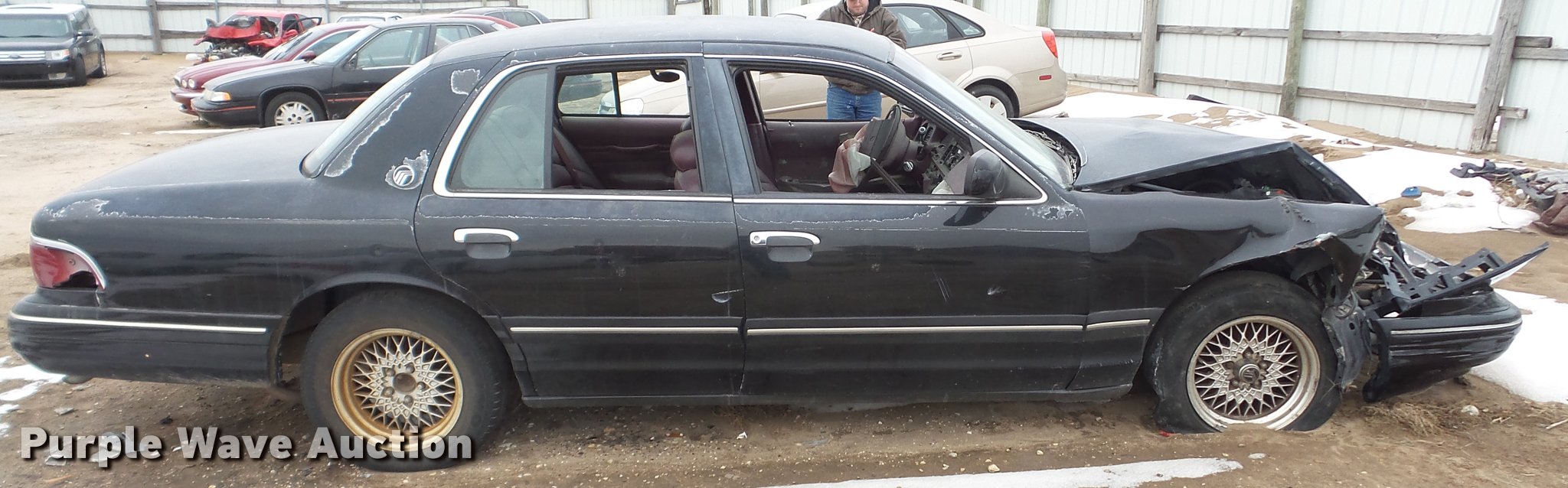Purple Wave is selling a used Passenger Vehicle in Kansas. This item is a 1995 Mercury Grand Marquis with the following: Unknown miles on odometer, 4.6L V8 SOHC 16V gas engine, Automatic transmission, AC and heat, Tilt, Cruise, Power windows, locks, and mirrors, Vinyl interior, 215/65R15 tires, Rust, Front end damage, Air bags deployed, Case# 16C063499