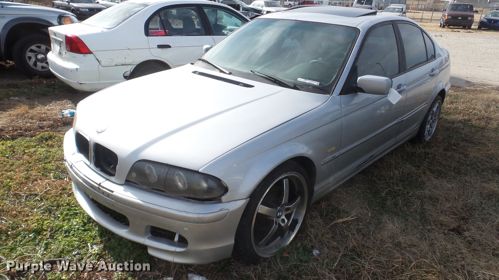 Purple Wave is selling a used Passenger Vehicle in Kansas. This item is a 2000 BMW 3-Series 323I with the following: Unknown miles on odometer, 2.5L L6 DOHC 24V gas engine, Automatic transmission, AC and heat, Tilt, Cruise, AM/FM, Power windows, locks, mirrors, and seat, Leather interior, Sunroof, 235/85ZR19 tires, Door panel missing, Hood will not open, Case# 16C70131