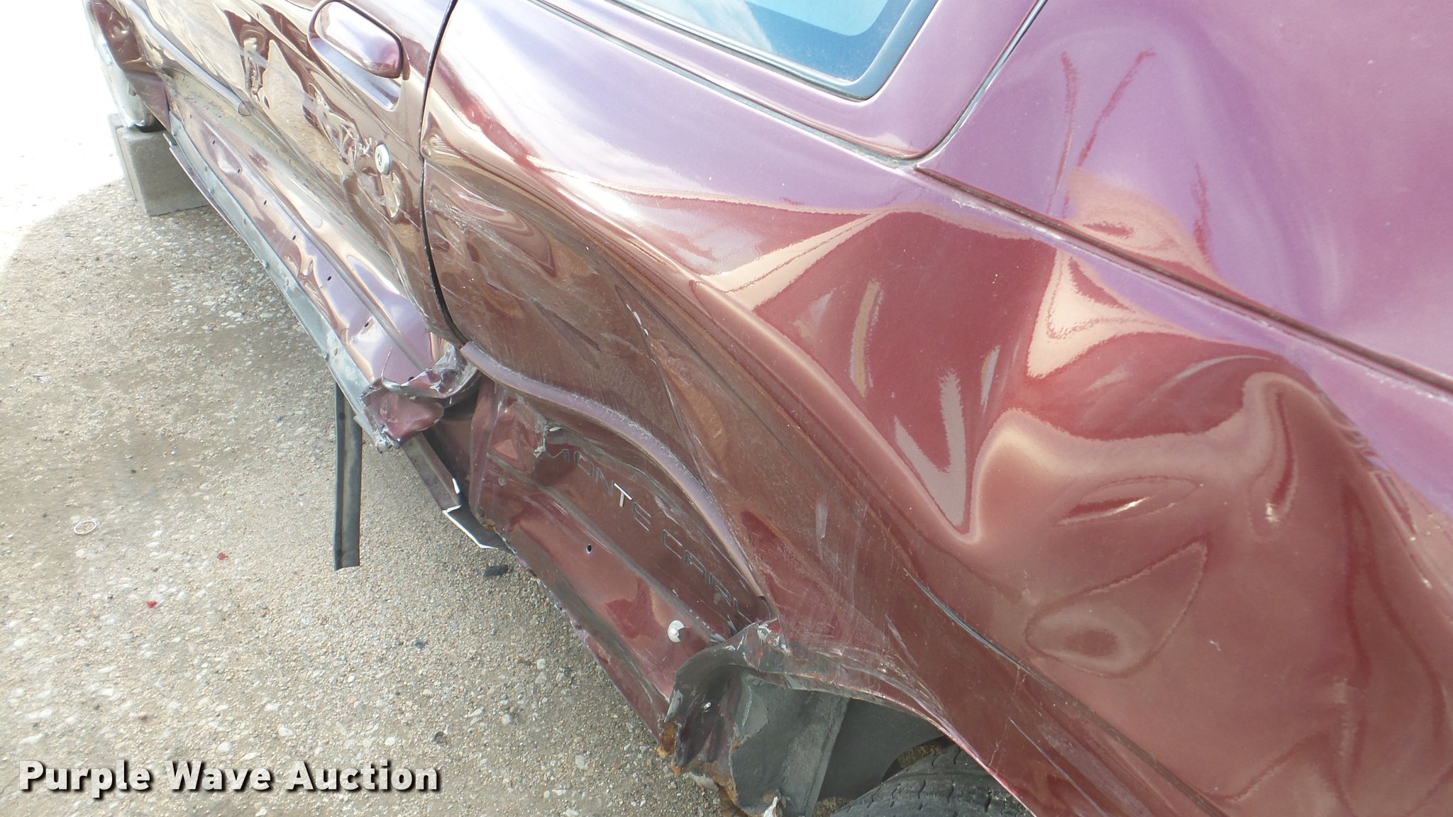 Purple Wave is selling a used Passenger Vehicle in Kansas. This item is a 1998 Chevrolet Monte Carlo with the following: Unknown miles on odometer, 3.1L V6 OHV 12V gas engine, Automatic transmission, AC and heat, Tilt, Cruise, Power windows and locks, Sunroof, 205/65R16 tires, Major body damage, Doors locked, Stereo removed, Case# 16C070938