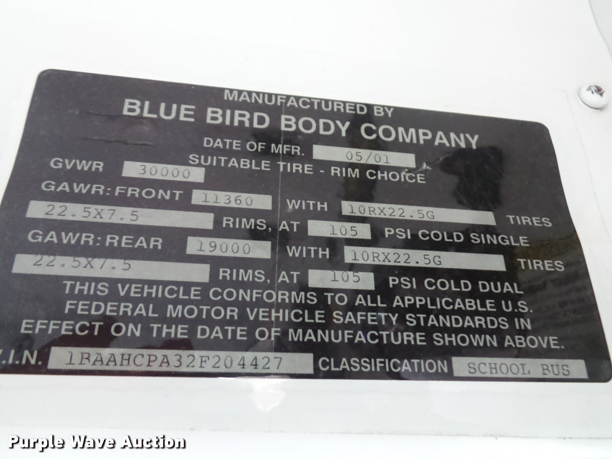 Take a look at this used 2002 Blue Bird TC2000 school bus being sold on February 15th, 2017 in the SOLD! February 15 Vehicles and Equipment Auction made by Blue Bird. Take a look at all of the item information below or take a look at similar auctions for Transit Vehicles.