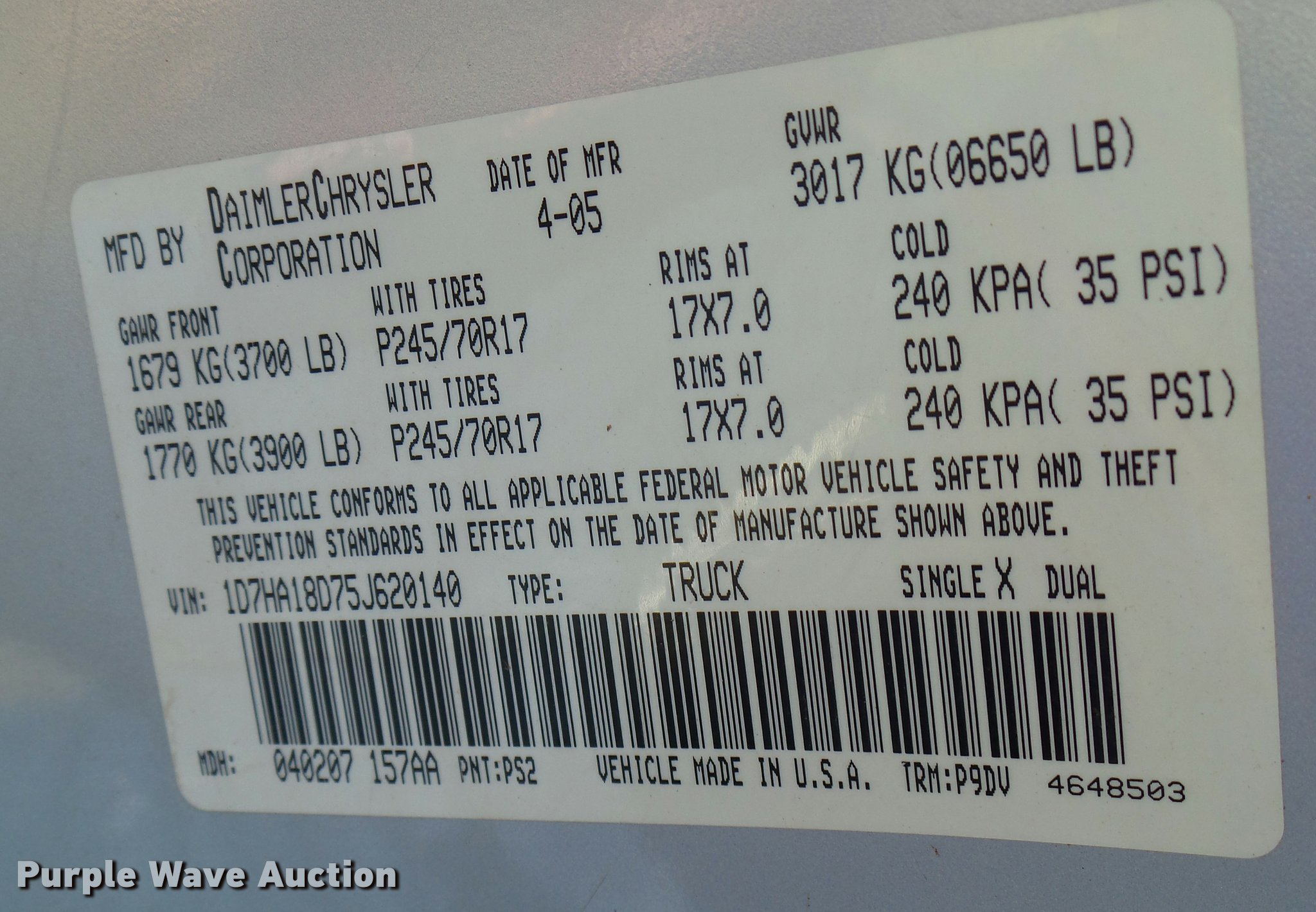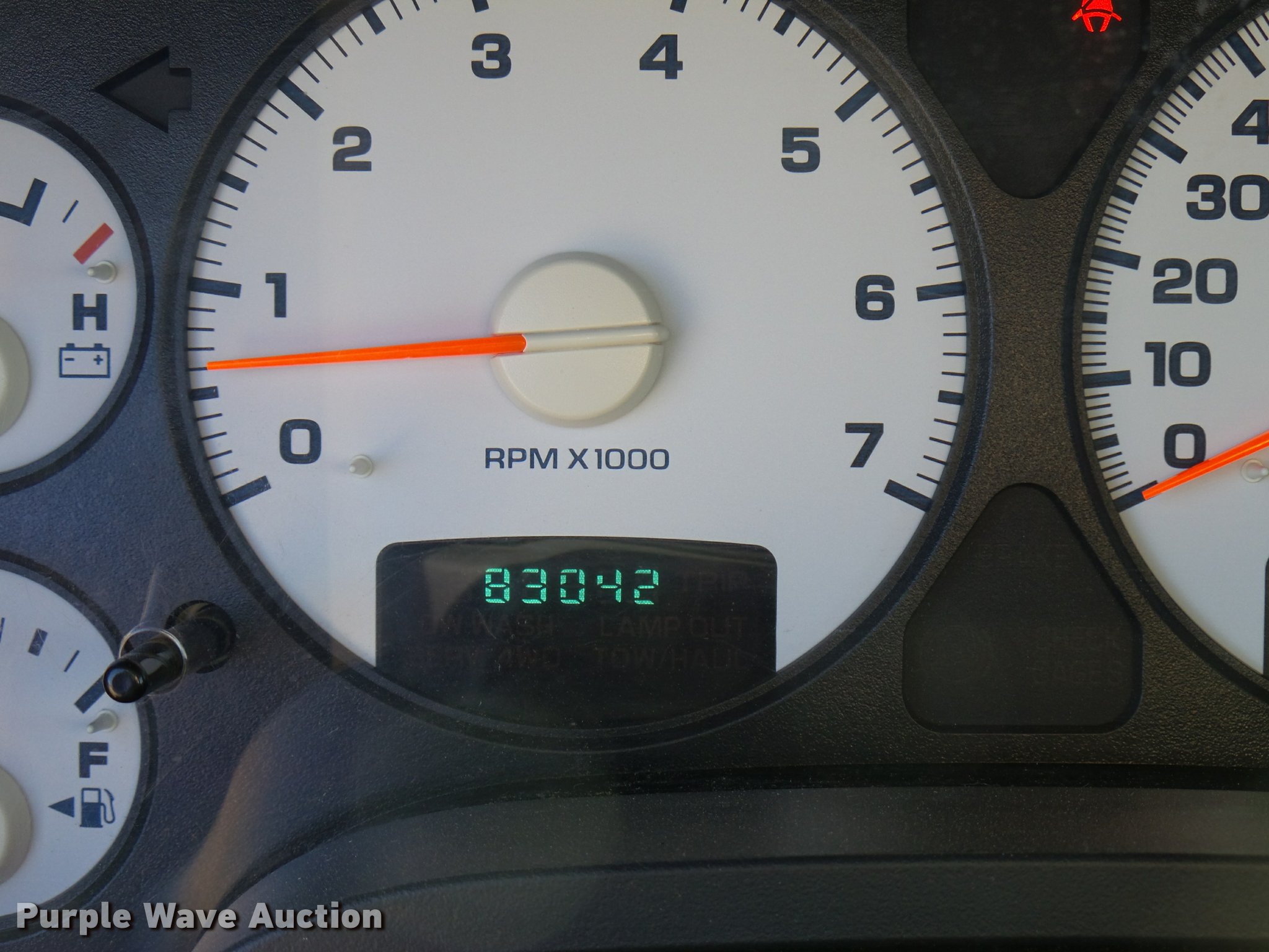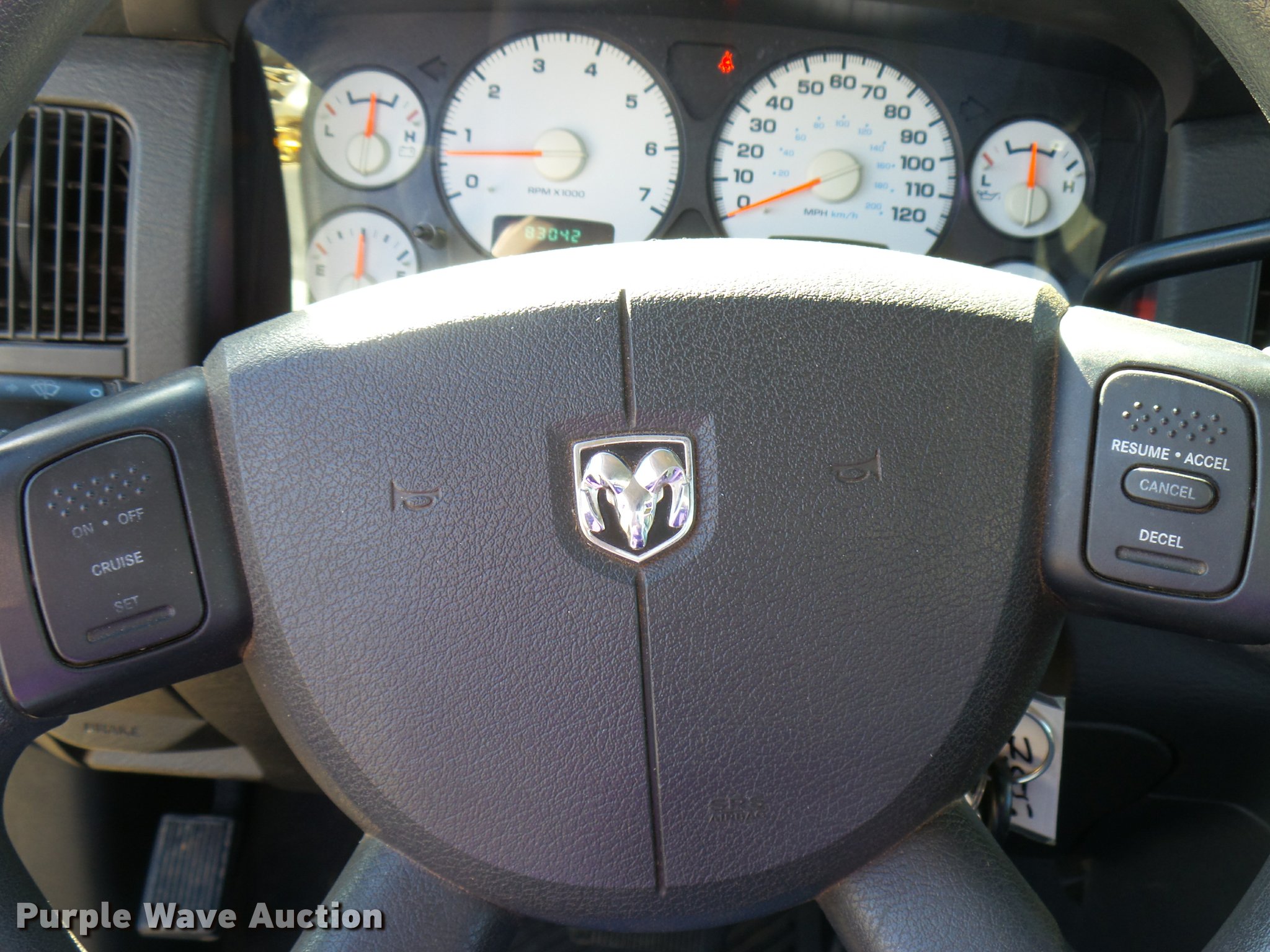 Purple Wave is selling a used 1/2 Ton Pickup or Van in Oklahoma. This item is a 2005 Dodge Ram 1500 Quad Cab pickup truck with the following: 83,042 miles on odometer, 5.7L V8 OHV 16V gas engine, Automatic transmission, AC and heat, Tilt, Cruise, AM/FM/cassette, Manual windows and locks, Cloth interior, Vinyl floor, Headache rack, Receiver hitch, Trailer wiring, P245/70R17 tires, Tailgate will not open, Sale# 1723KP, Unit# 755