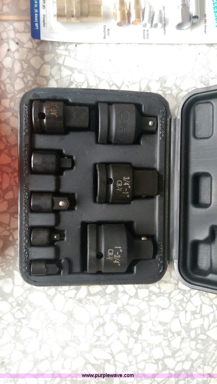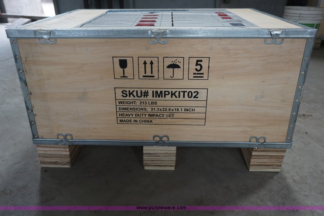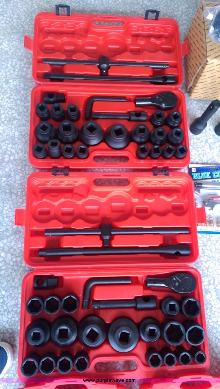 Purple Wave is selling a used Tools in Kansas. This item is a 117 piece 3/4" to 1" impact set with the following: Air impact wrench, 4,000 RPM, 1,843 lbs torque, 17 pieces air accessories set, Eight piece 3/4" deep well impact socket set, 21mm, 24mm, 26mm, 27mm, 29mm, 30mm, 32mm, and 38mm, Eight piece 3/4" deep well impact socket set, 13/16", 15/16", 1 1/16", 1 1/8", 1 3/16", 1 1/4", and 1 1/2", 10 piece 1" metric socket set, 24mm, 27mm, 30mm, 32mm, 33mm, 34mm, 36mm, 38mm, 41mm, and 46mm, 10 piece SAE 2" impact socket set, 5/16", 1 1/16", 1 3/16", 1 1/4", 1 1/2", 1 9/16", 1 5/8", 1 3/4", and 1 13/16", Three piece 1" extension bars, 7", 10", and 13", 26 piece metric 3/4" and 1" socket set, 3/4", 21mm, 22mm, 23mm, 24mm, 26mm, 27mm, 28mm, 29mm, 30mm, 31mm, 32mm, 34mm, 36mm, 38mm, 41mm, 46mm, and 50mm, 1", 50mm, 55mm, and 65mm, Ratchet head, Bent bar, Sliding bar, 3/4 to 1 F sliding head, Force bar, Extension bar, 26 piece SAE 3/4" and 1" socket set, 3/4", 3/4", 13/16", 7/8", 15/16", 1 1/16", 1 1/8", 1 3/16", 2", and 2 1/4", 1", 2 1/4", 2 3/8", 2 5/8", Ratchet head, Bent bar, Sliding bar, 3/4 to 1 F sliding head, Force bar, Extension bar, Eight piece adapter set, 1/4" male to 3/8" female, 3/8" male to 1/4" female, 3/8" male to 1/2" female, 1/2" male to 3/8" female, 1/2" male to 3/4" female, 3/4" male to 1/2" female, 1" male to 3/4" female, Unused