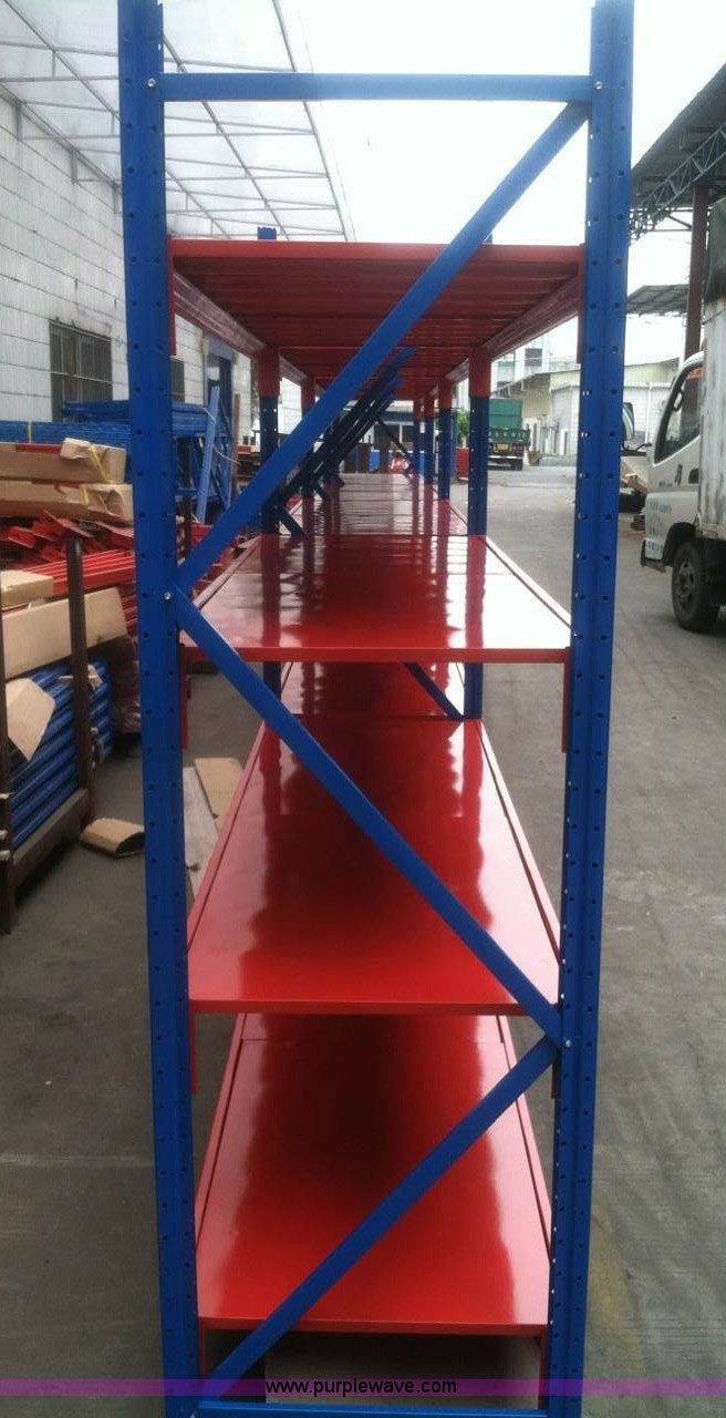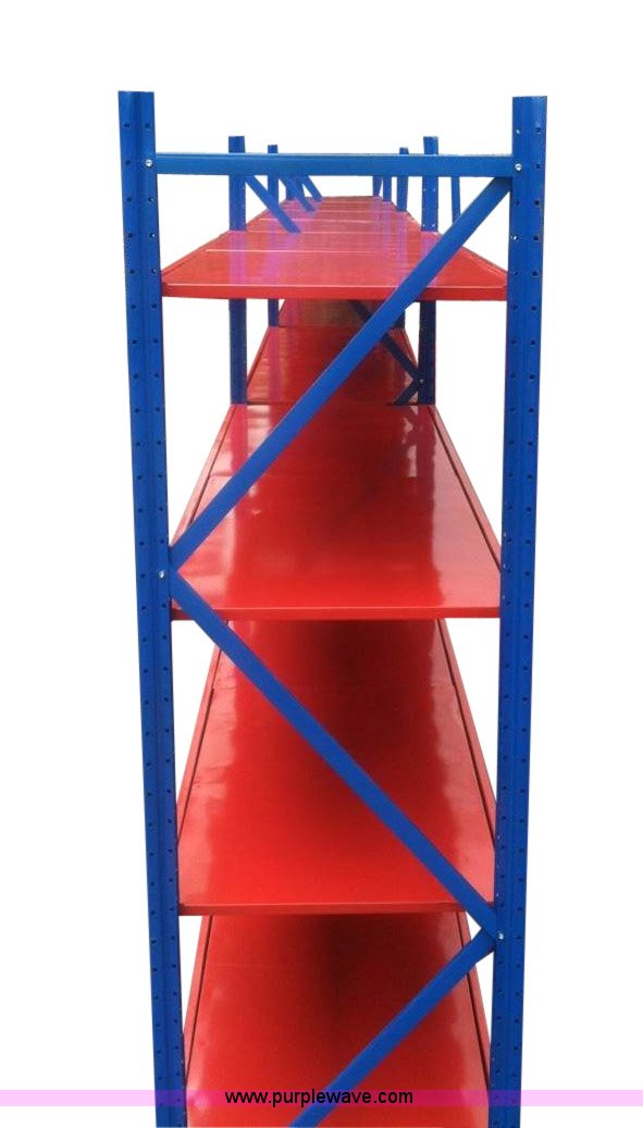 Purple Wave is selling a used Shelving and Storage in Kansas. This item is a Industrial shelving with the following: 78"L x 23.5"W x 78"H per bay, 26.5 long span of shelving/racking, 2,650 lbs per bay capacity, Easy bolt together design, Epoxy coated, 82x24x33 crate, 580 lbs