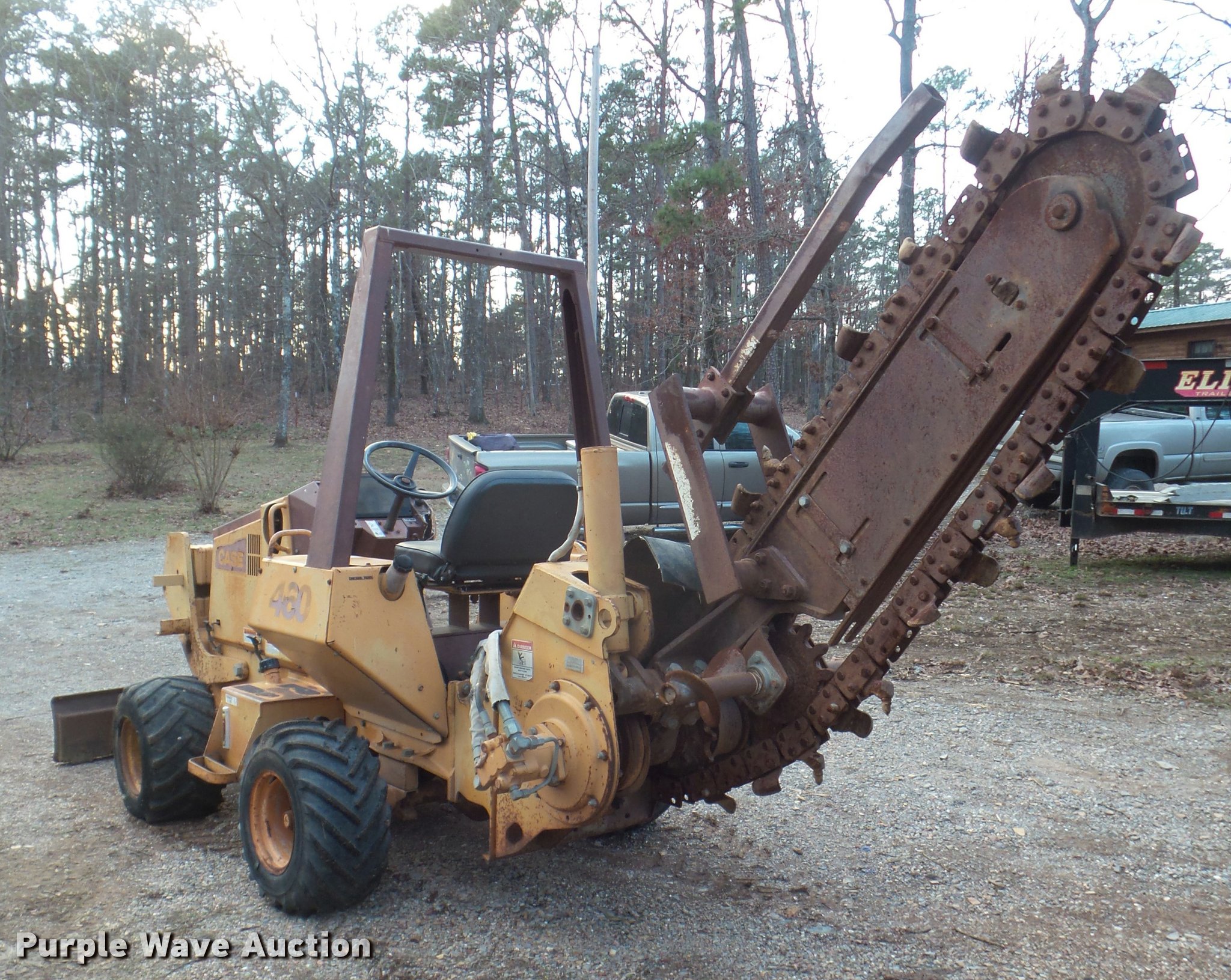 Purple Wave is selling a used Trencher or Rock Saw in Arkansas. This item is a 1994 Case 460 trencher with the following: 3,147 hours on meter, Kubota V1505E four cylinder diesel engine, Hydrostatic transmission, Four wheel drive, Suspension seat, 5'W six-way backfill blade, H939307-560 trencher, 4' maximum digging depth, 6" cutting width, Manual side shift, Serial JAE0142072, (13) suitcase weights, 26 x 12-12 tires, Serial JAF0136348