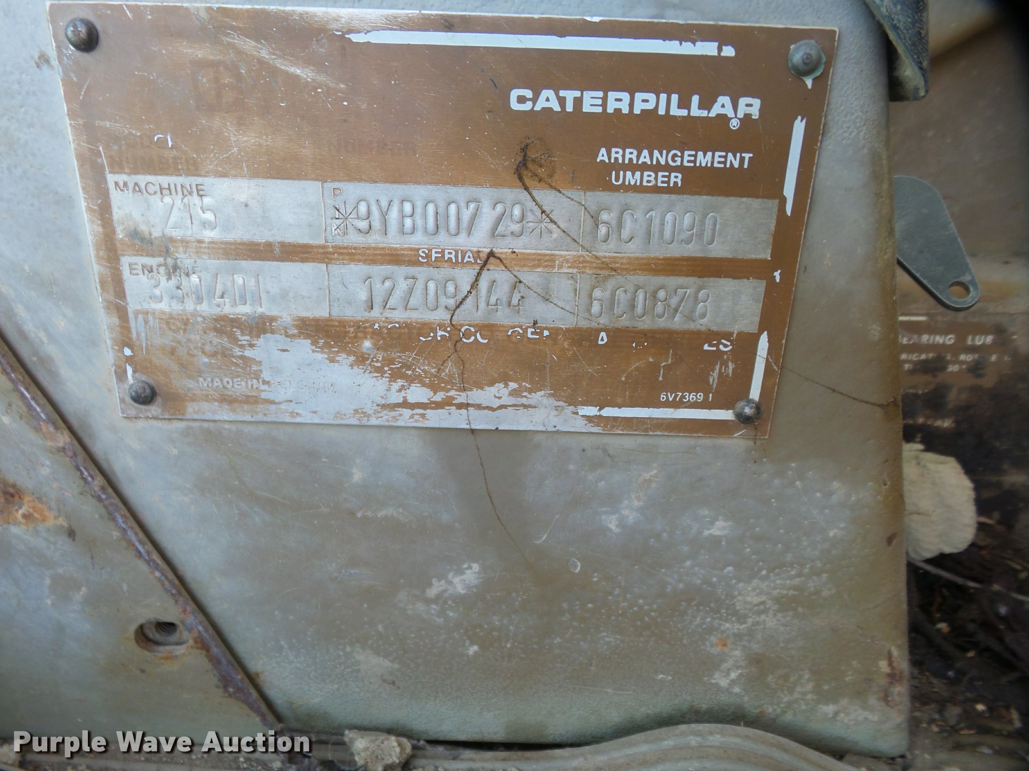 Purple Wave is selling a used Hydraulic Excavator in Kansas. This item is a 1985 Caterpillar 215B LC excavator with the following: 12,897 hours on meter, Caterpillar 3304 turbo diesel engine, 36"W bucket, Dymax manual thumb, 24"W tracks, Serial 9YB00729