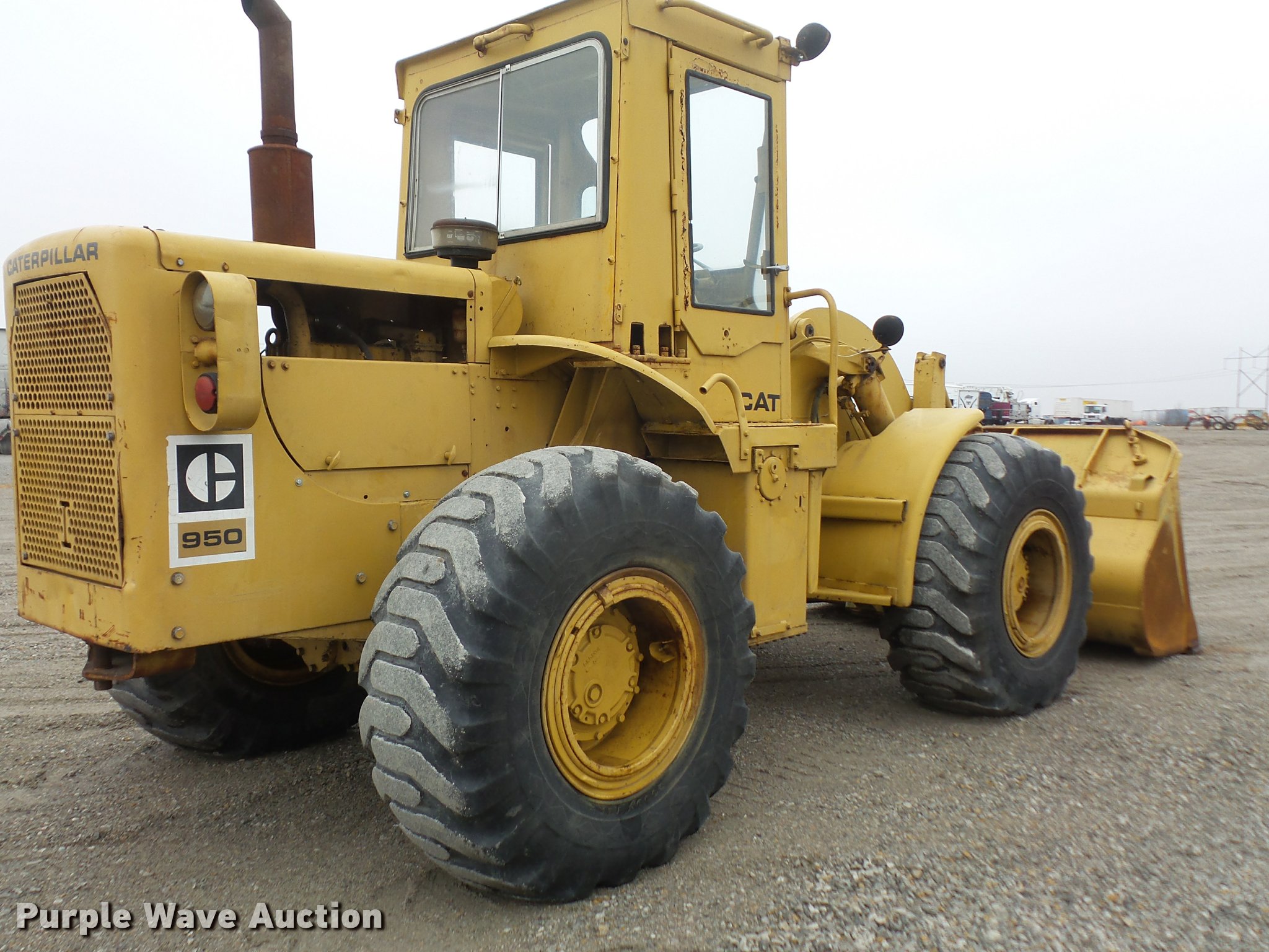 Purple Wave is selling a used Wheel Loader in Kansas. This item is a 1977 Caterpillar 950 wheel loader with the following: Caterpillar four cylinder turbo diesel engine, Powershift transmission, 4F-4R gears, EROPS, Heat, Suspension seat, Two-lever bucket controls, Front work lights, 105"W general purpose bucket, Bolt-on cutting edge, 20.5-25 tires, Serial B1J5226