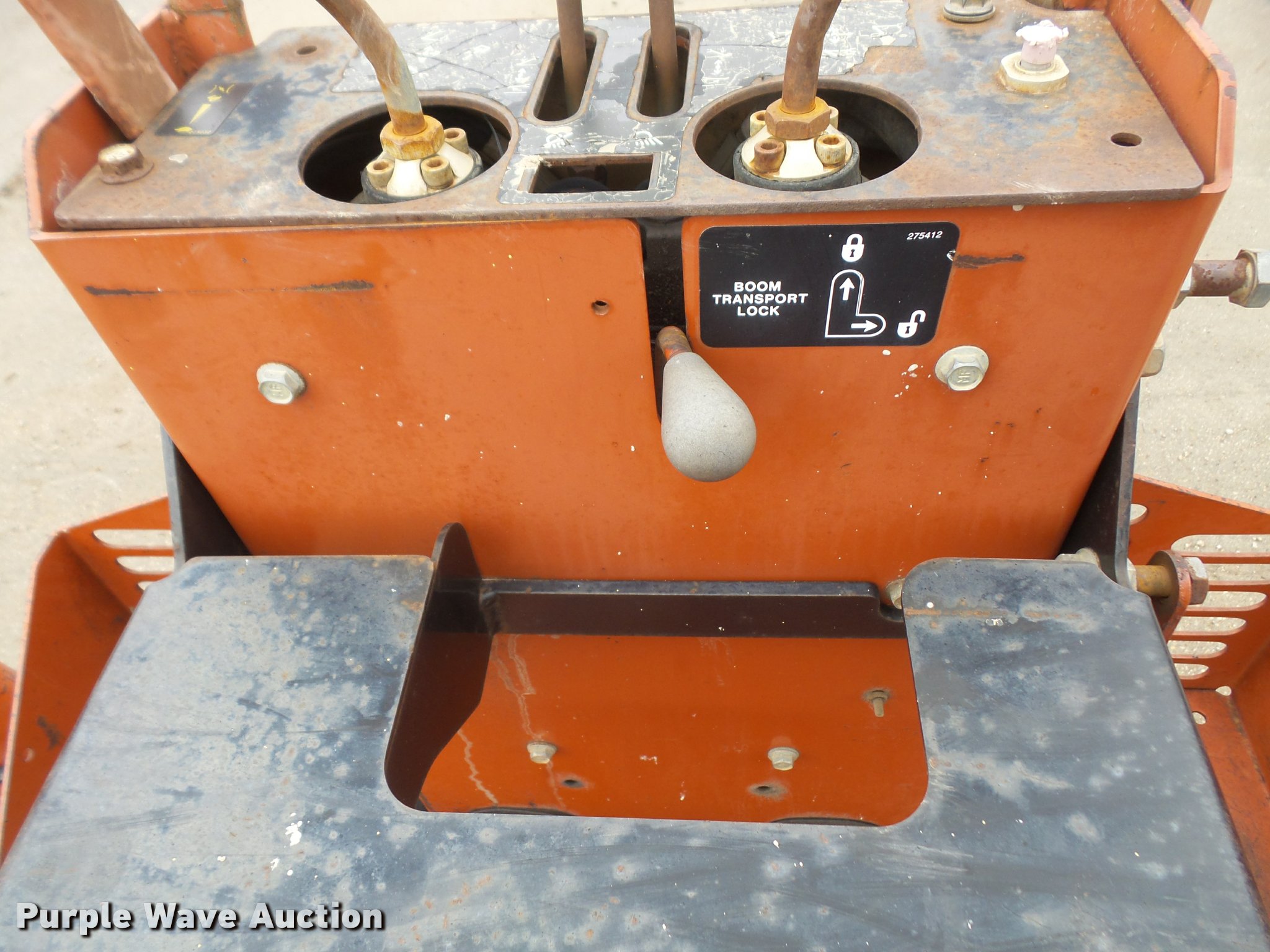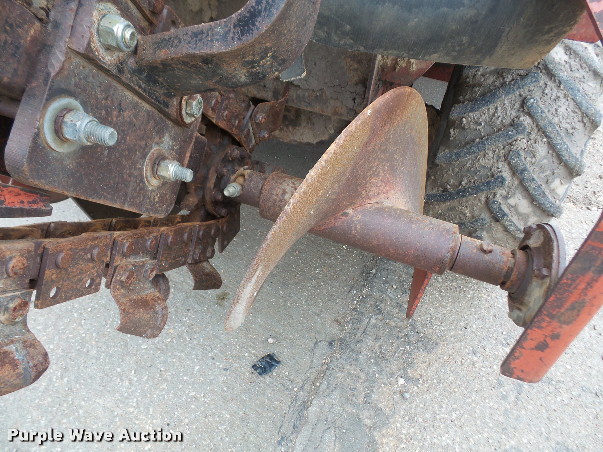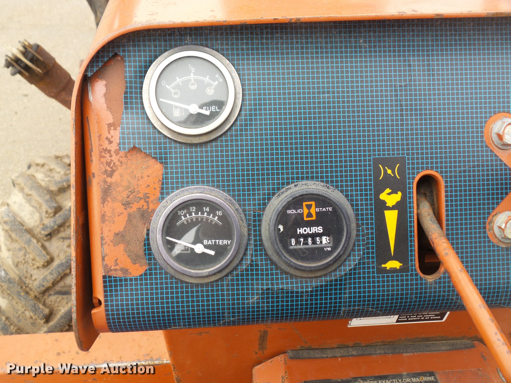Purple Wave is selling a used Trencher or Rock Saw in Kansas. This item is a 2000 Ditch Witch 3700 trencher with the following: 765 hours on meter, Deutz threee cylinder diesel engine, 20.5 kW, Hydrostatic transmission, Four wheel drive, OROPS, 64" two-way backfill blade, H313 trencher, Serial 8T0585, 5' maximum digging depth, 6" cutting width, Backhoe model A322, Serial 1T0414, 34" stick length, Stick controls, 13"W bucket, (4) teeth, Hydraulic outriggers, 26 x 12.00-12 tires, Serial 3T0325