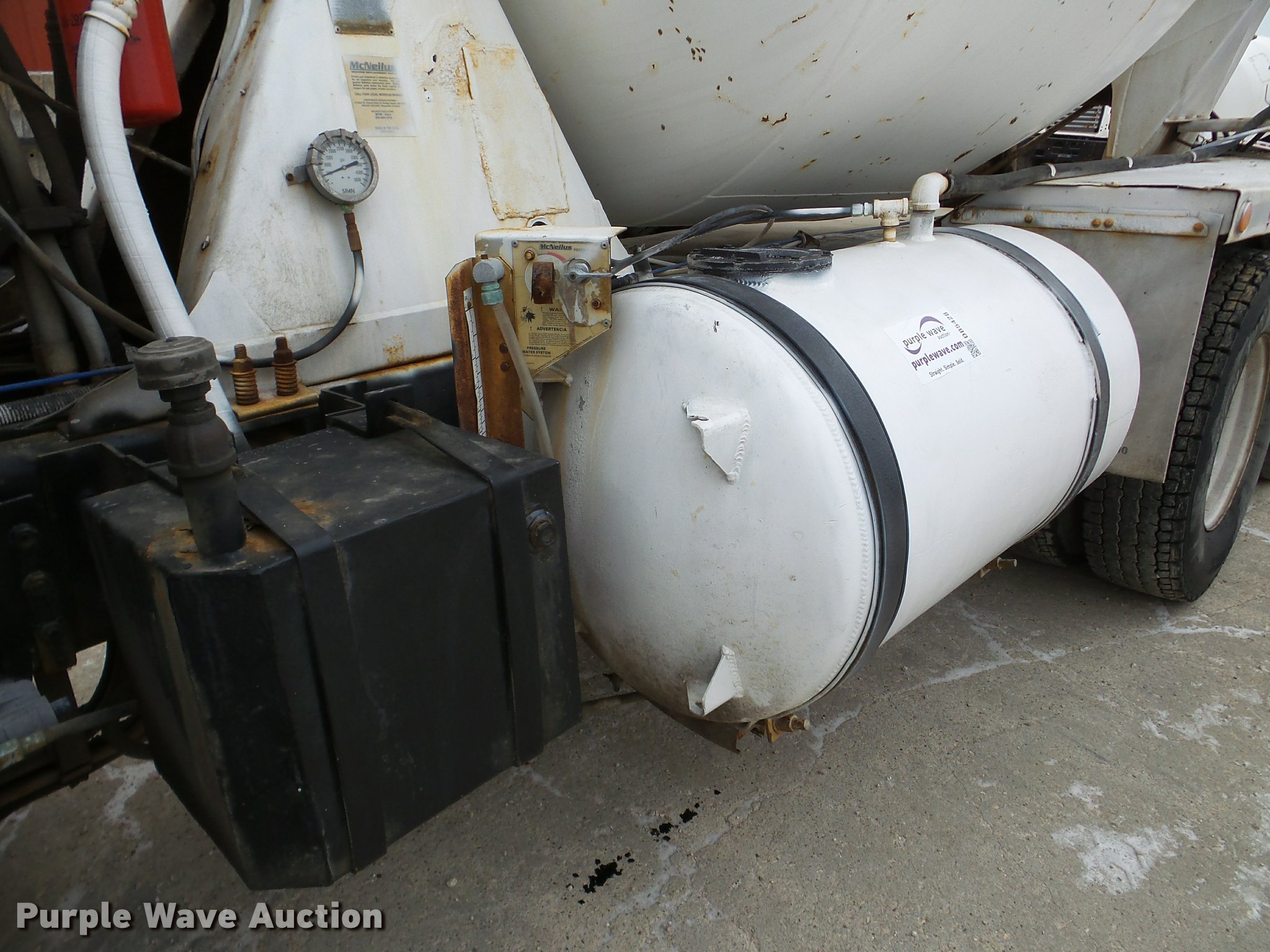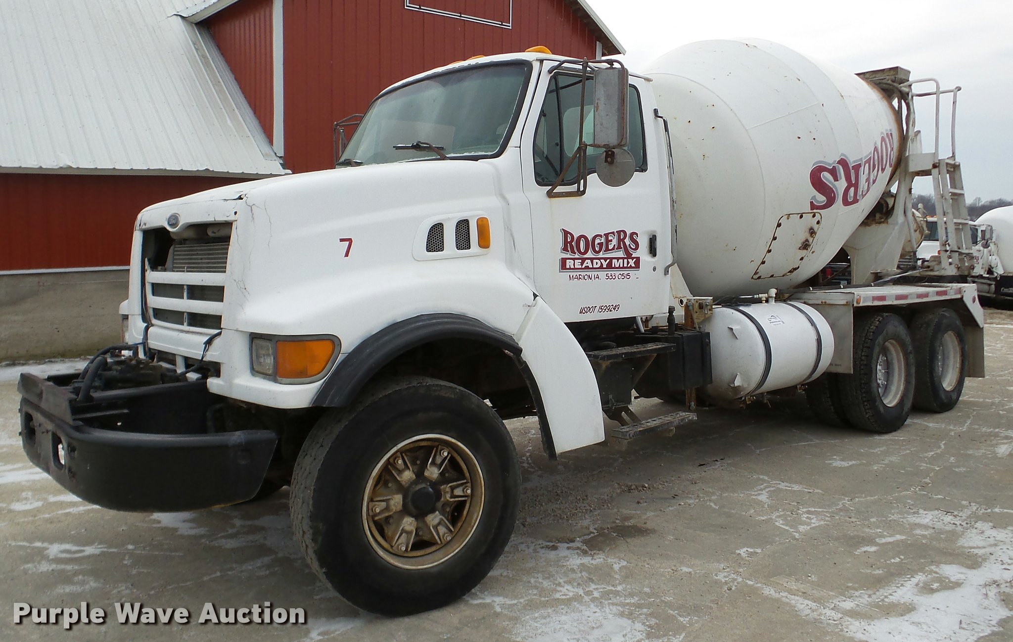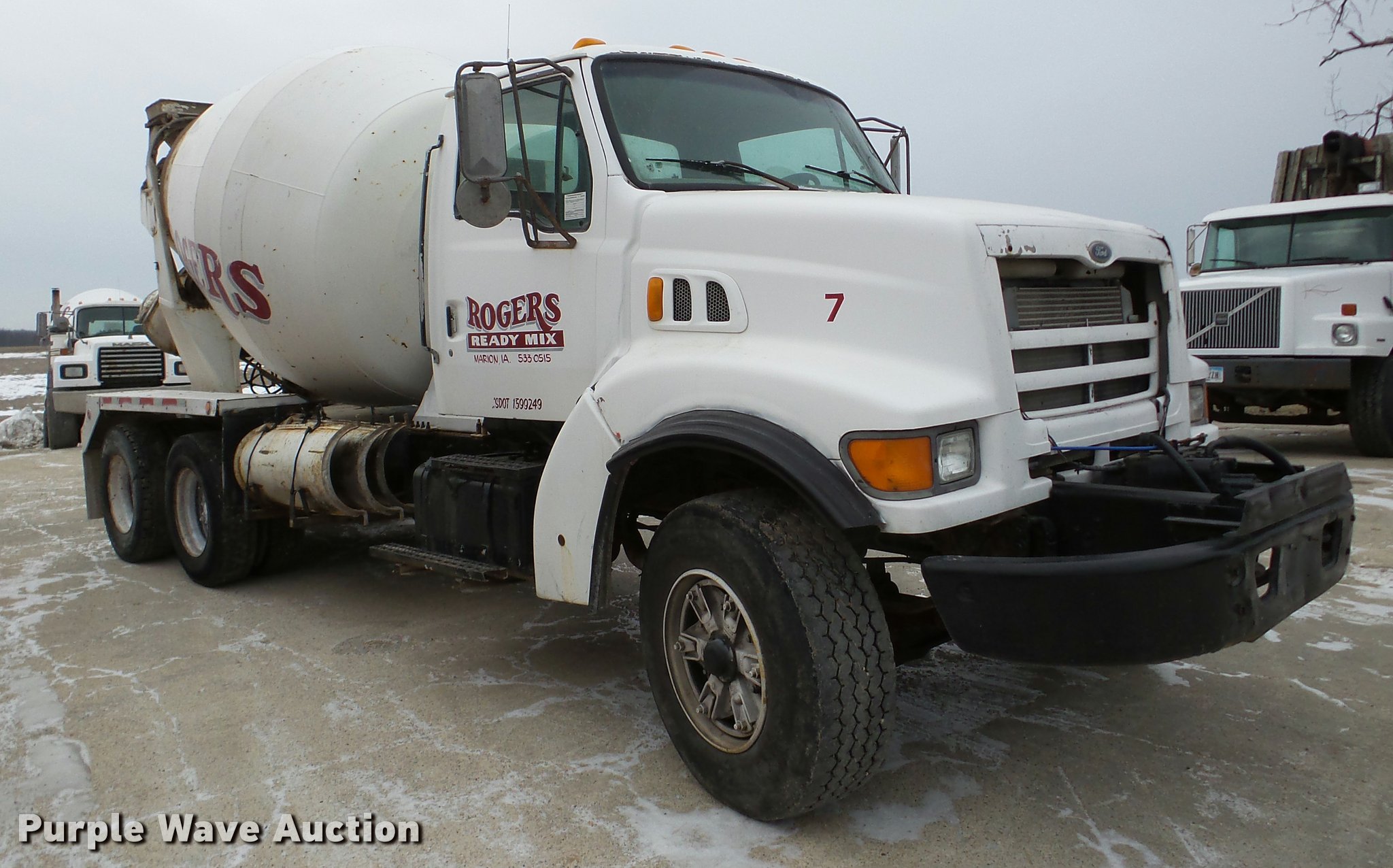 Purple Wave is selling a used Ready Mix or Pump Truck in Iowa. This item is a 1998 Ford LT8511 Louisville 111 ready mix truck with the following: 178,375 miles on odometer, 4,556 hours on meter, Cummins ISC 8.3L L6 turbo diesel engine, Eaton Fuller RT/RT0-8LL 10 speed manual transmission, Tandem axle, Heat, Air suspension seat, Front mounted PTO, McNeilus mixer body, Nine cu.yd. capacity, Rear drum controls, (3) steel chute extensions, Water tank, Ladder, Front discharge, Single fuel tank, 220" wheelbase, Walking beam suspension, Air brakes, 11R22.5 tires, GVWR 58,000 lbs, FAWR 18,000 lbs, IAWR 20,000 lbs, RAWR 20,000 lbs, Unit# 7