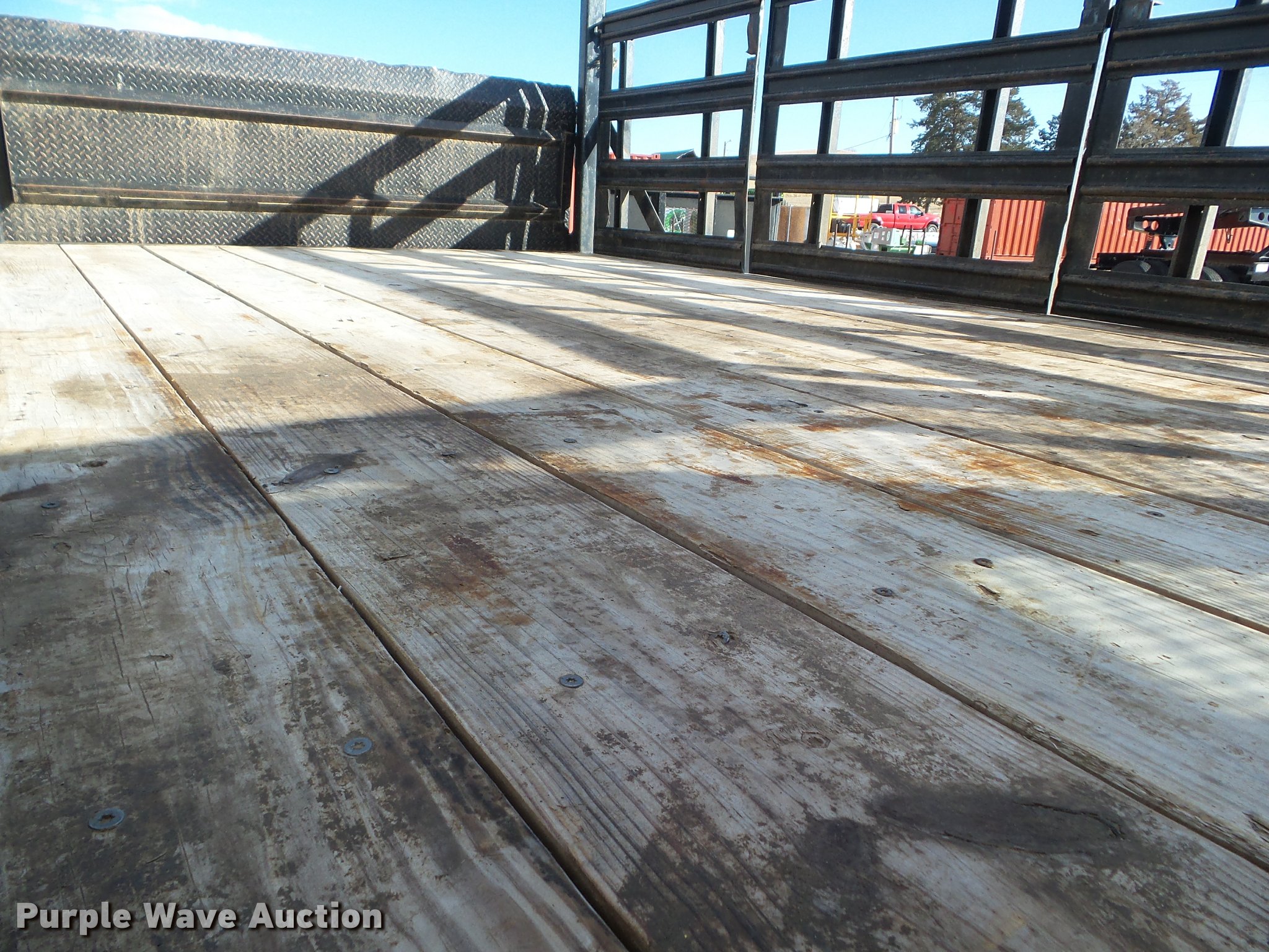 Purple Wave is selling a used Flat Bed Truck in Nebraska. This item is a 1998 Ford F800 flatbed truck with the following: 274,493 miles on odometer, Cummins ISB 5.9L L6 turbo diesel engine, Five speed manual transmission, Two speed rear end, Single axle, AC and heat, AM/FM/CD, Spring suspension seat, Front tow hooks, 14'L x 8'W wood flatbed, Stake side pockets, 40"H removable side boards, Liftgate, Single fuel tank, Receiver hitch, 177" wheelbase, Spring suspension, Hydraulic brakes, 11R22.5 tires, GVWR 26,000 lbs, Lift switch needs replaced