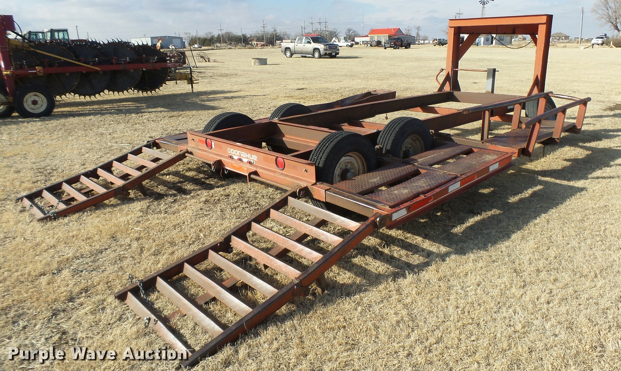 Purple Wave is selling a used Ag Equip. or Header Trailer in Kansas. This item is a 1993 Donahue EXG-160 windrower trailer with the following: 24'L x 142"W overall, 17'L, 5'L ramps, Steel construction, Gooseneck hitch, Single leg landing gear, Spring suspension, Tandem axle, Steel wheels, 9.50R16.5LT tires, Spare tire