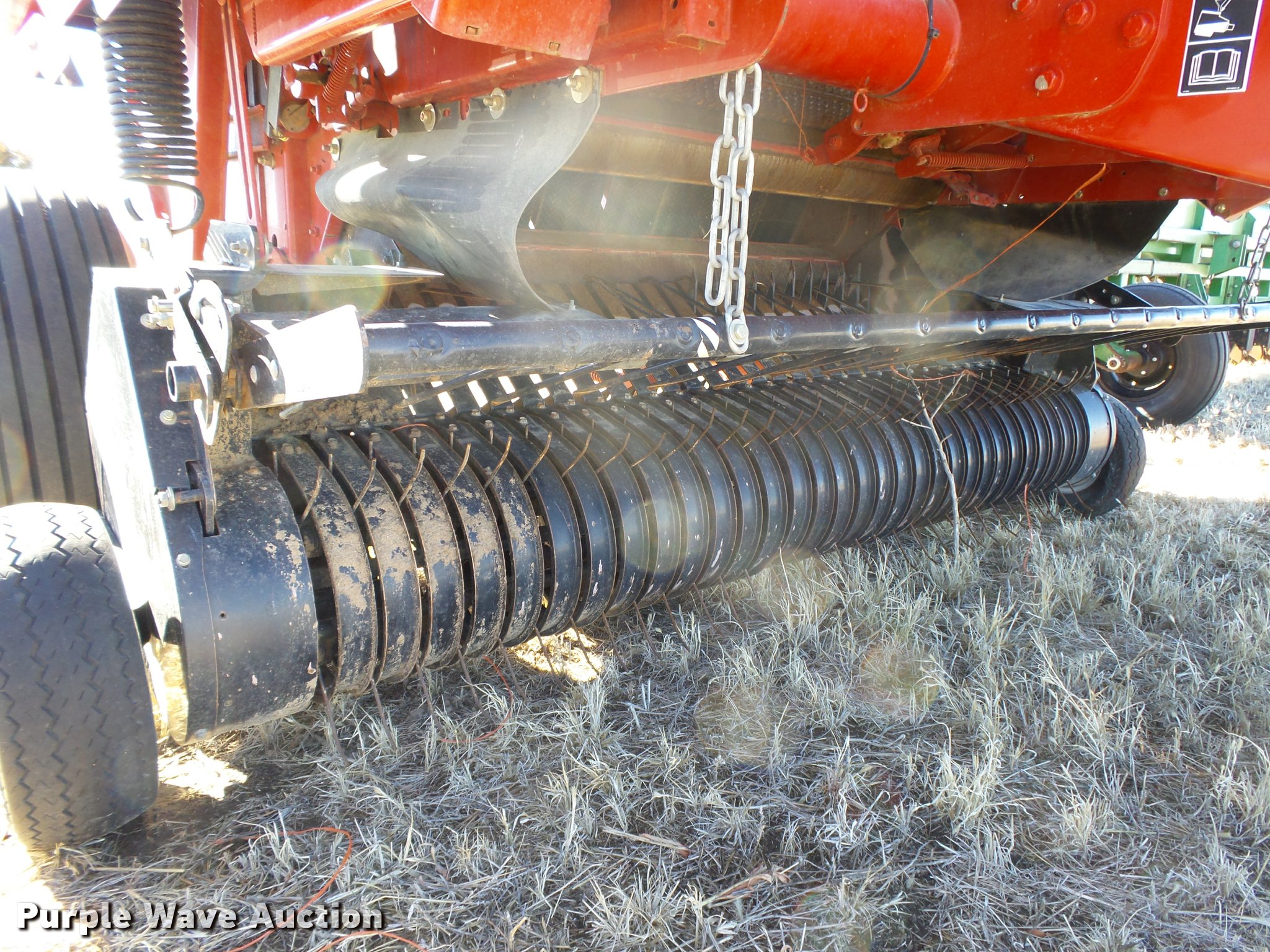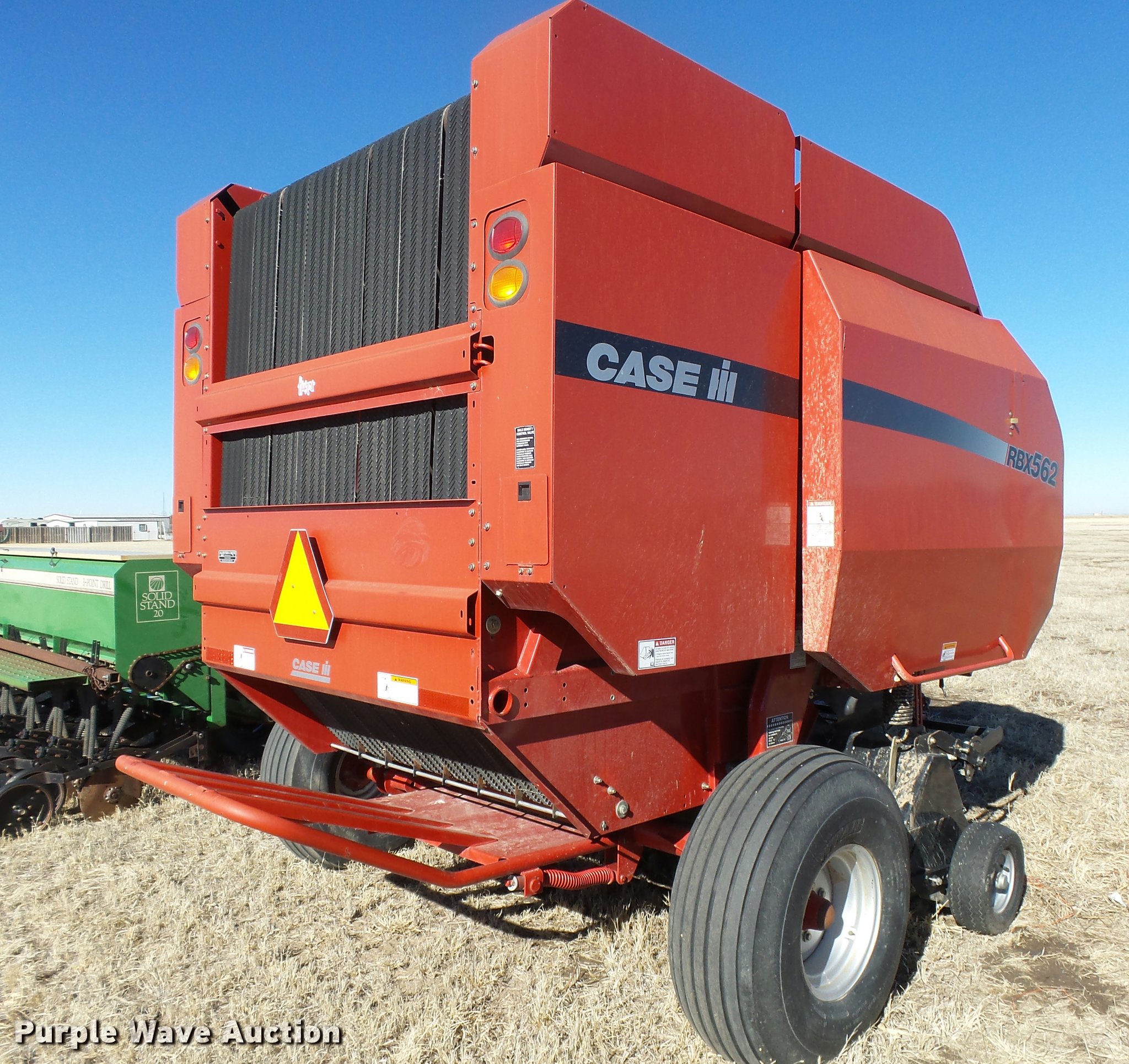Purple Wave is selling a used Round Baler in Kansas. This item is a 2005 Case IH RBX562 round baler with the following: 5' x 6' bale capacity, 84"W pickup, Hydraulic pickup lift, Case IH 87036479 monitor, Twin twine tie, Bale ramp, 16.5x6.5-8 gauge wheels, Transport lights, 1000 PTO, Pin hitch, 14L-16.1SL tires, Serial HBJ039720